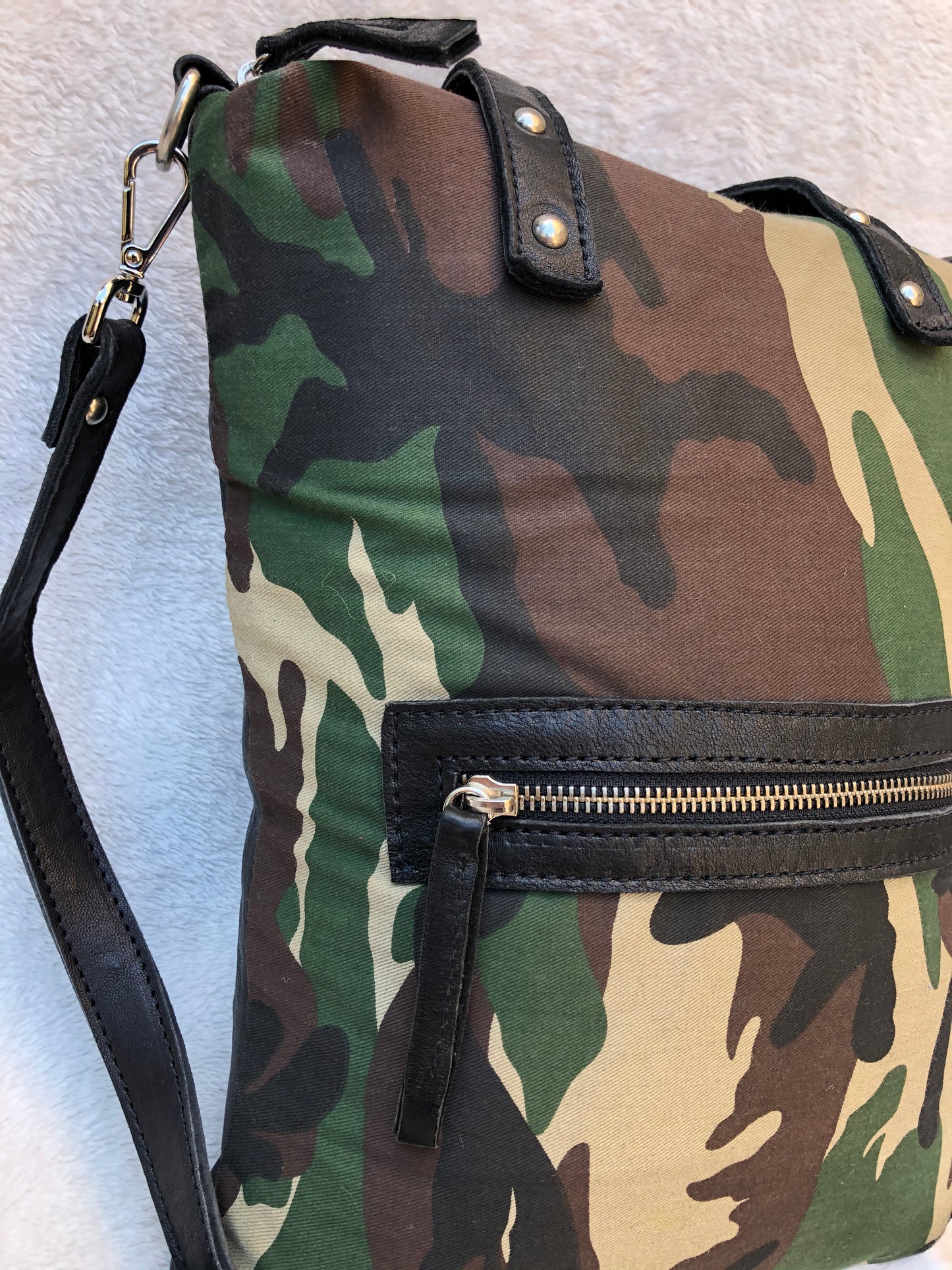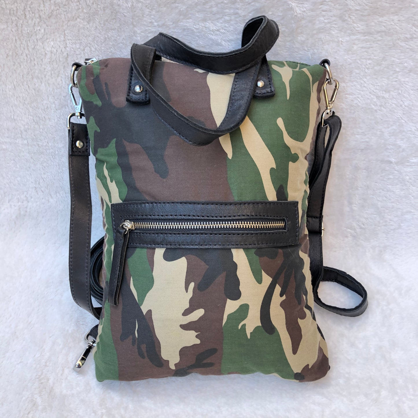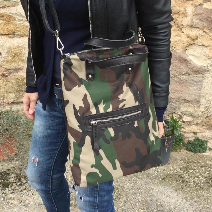 Mochila-Bandolera · Lau&ang Bags · "Camouflage” Piel natural BioCuir® Pieza Exclusiva