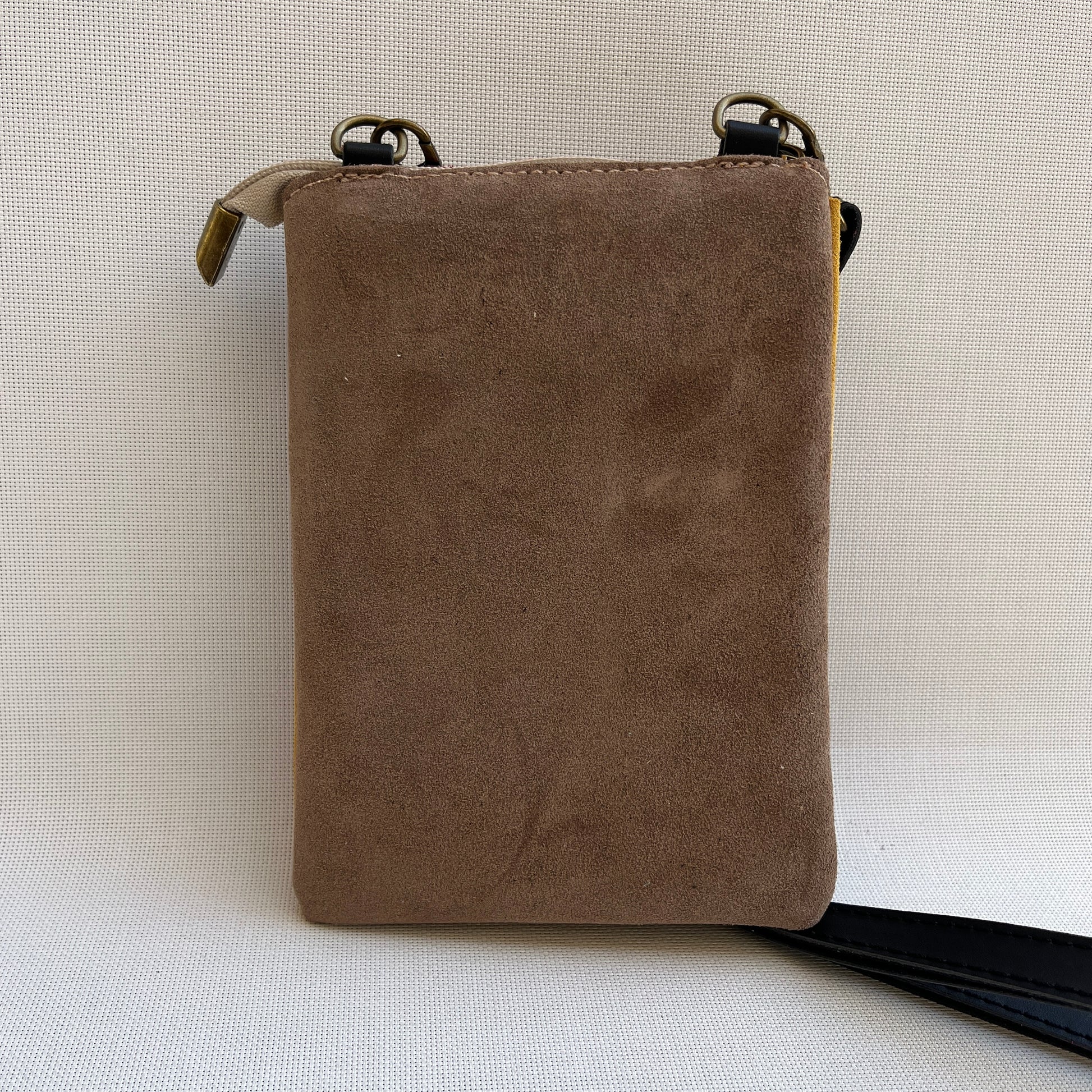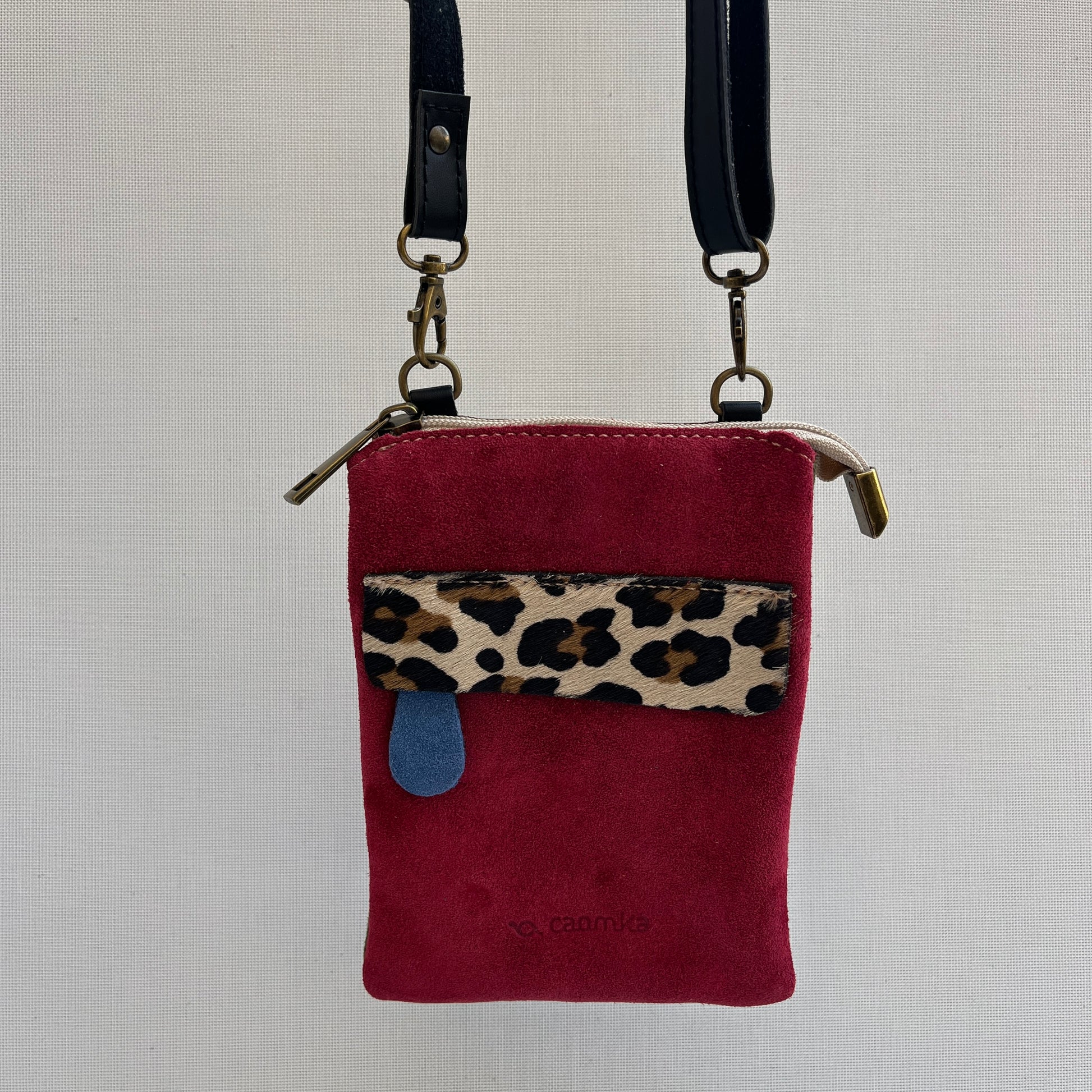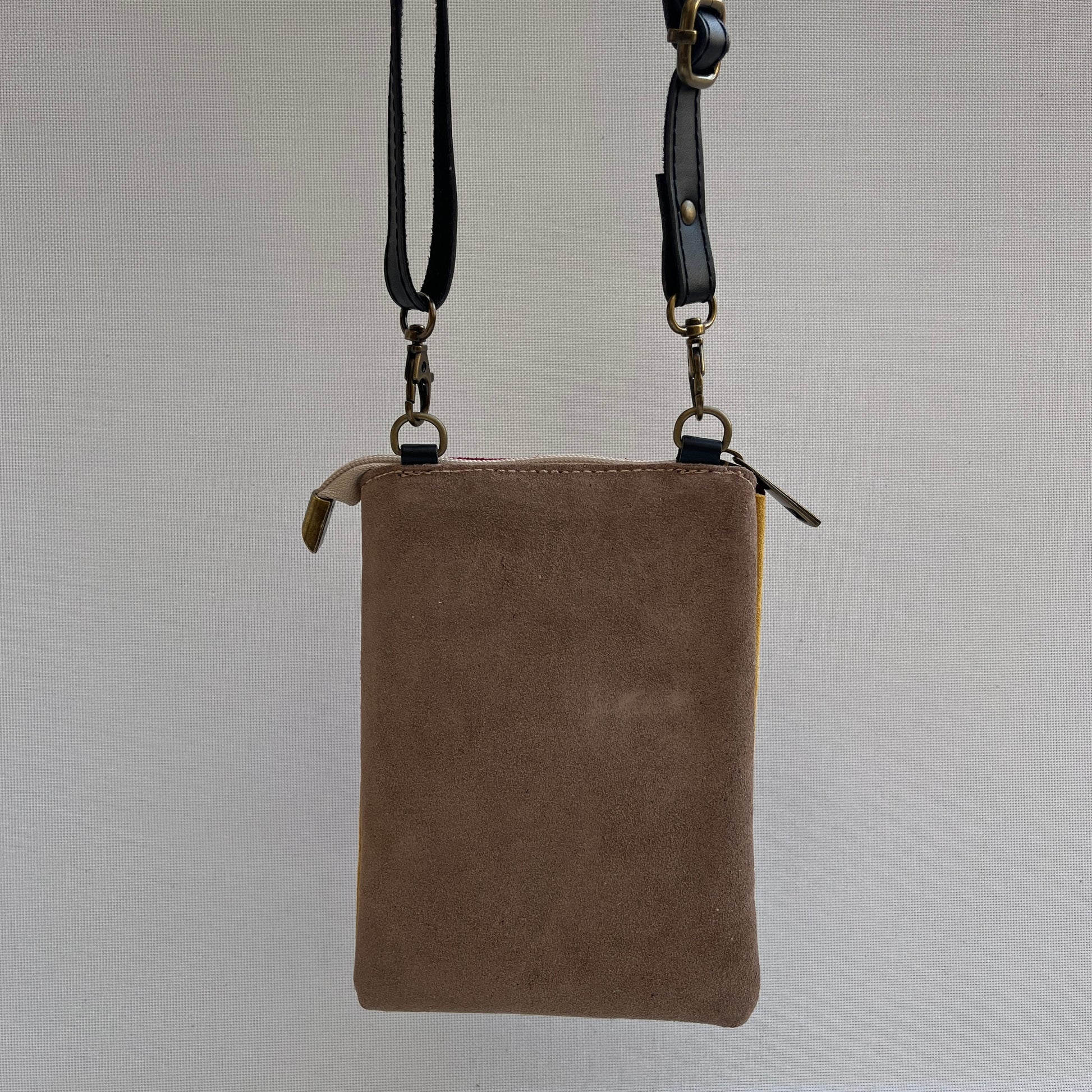 Elegante bolsito ideal para llevar el móvil confeccionado en piel natural serraje.
