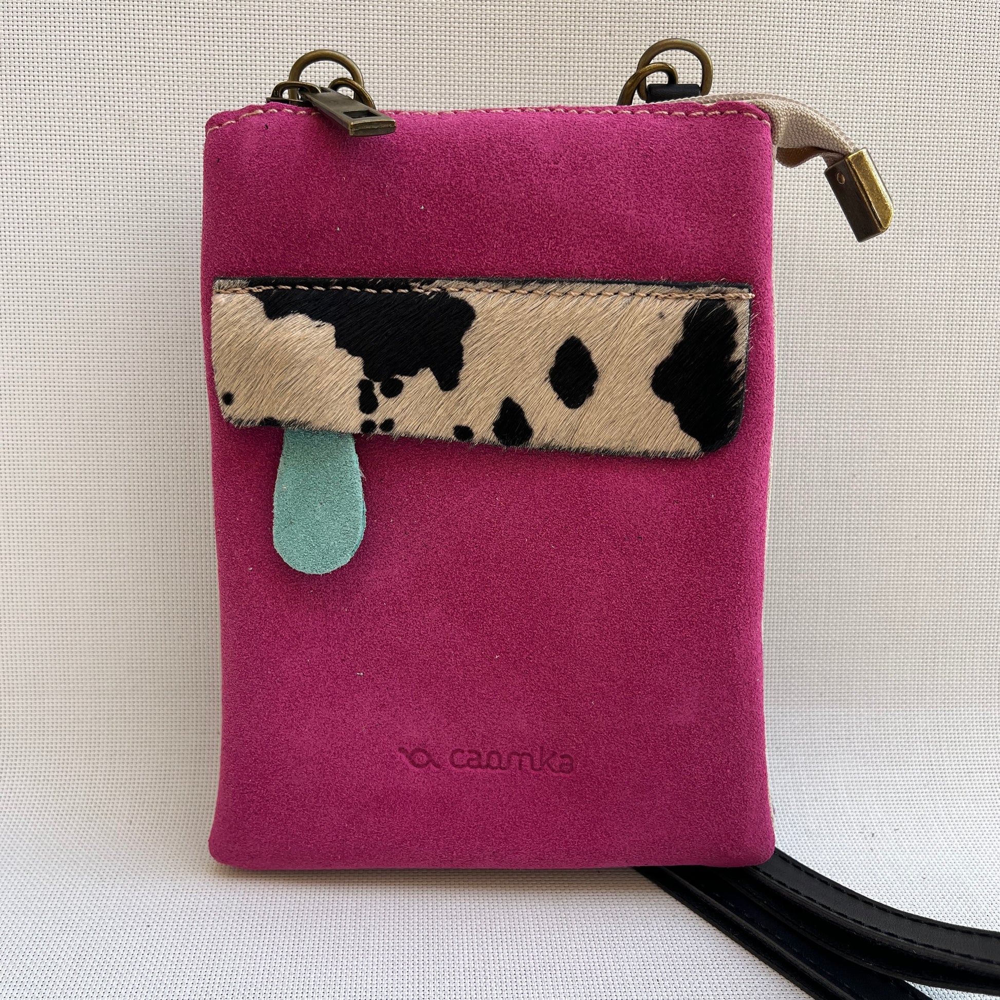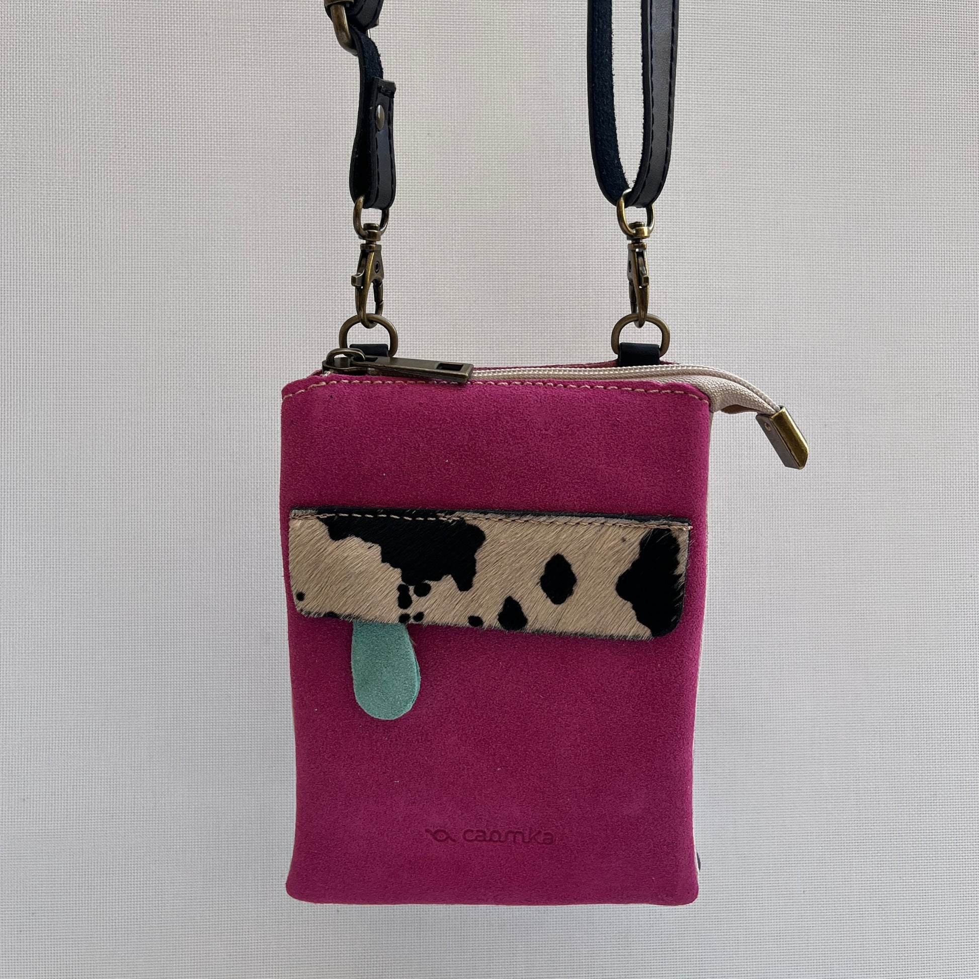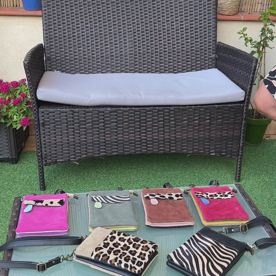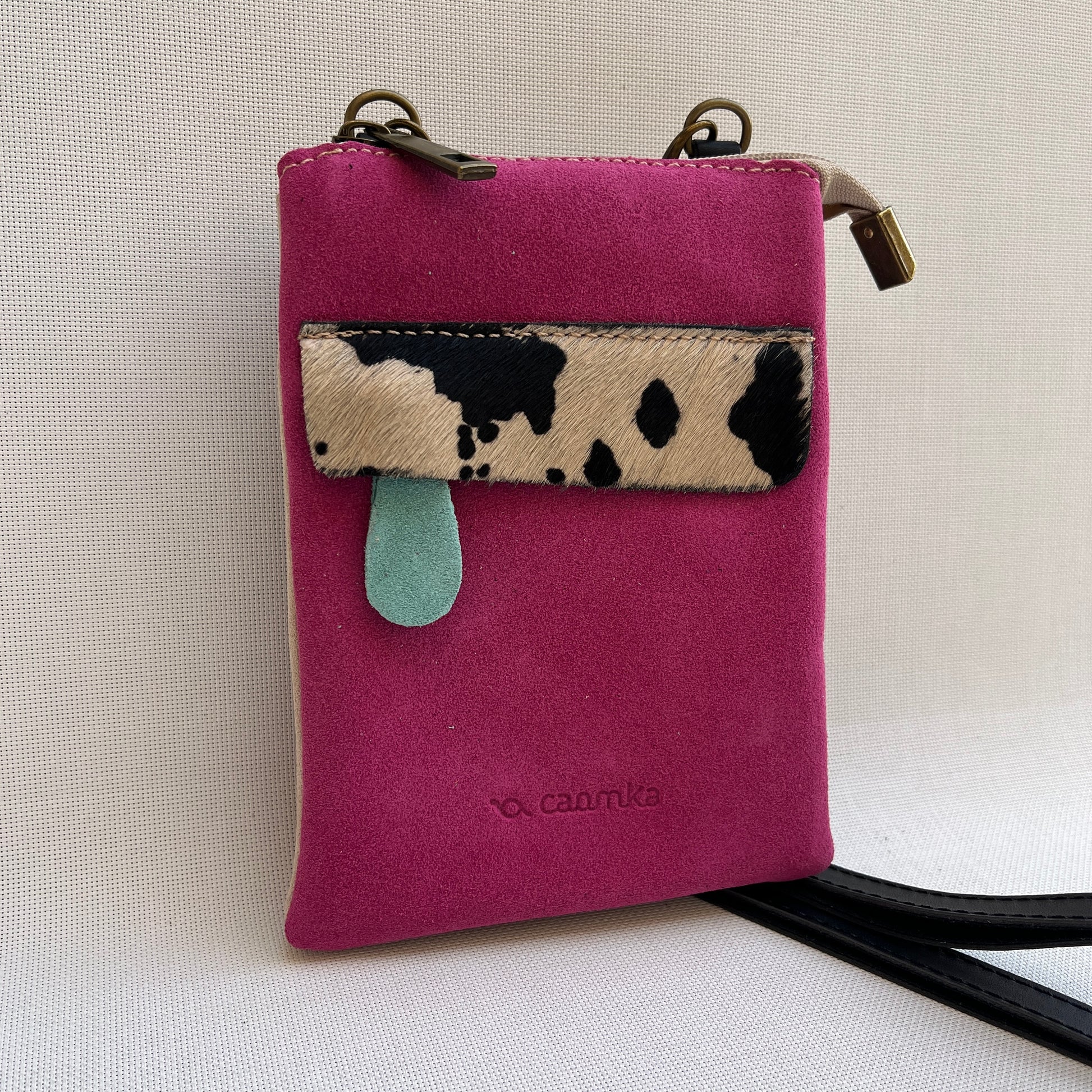 Elegante bolsito ideal para llevar el móvil confeccionado en piel natural serraje.