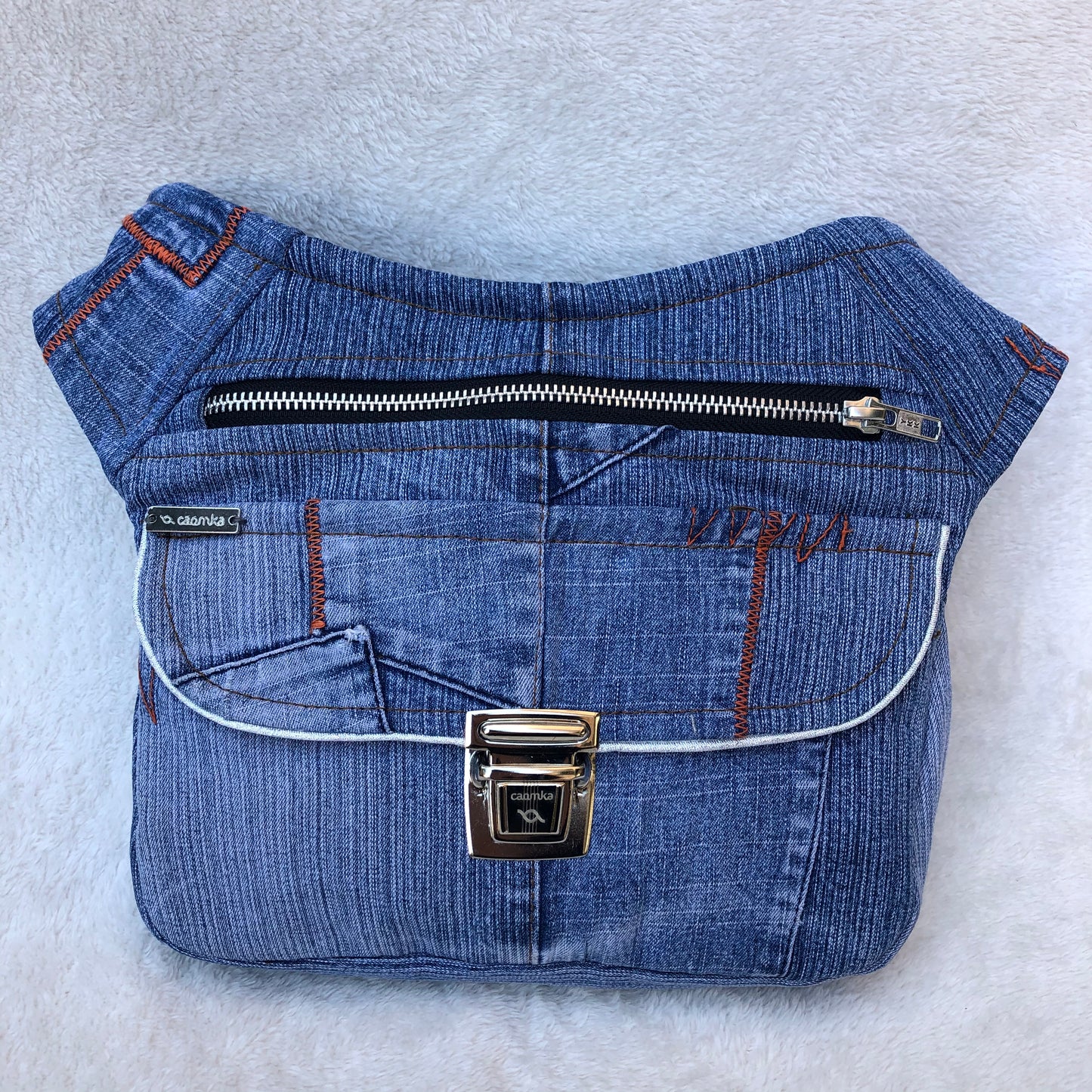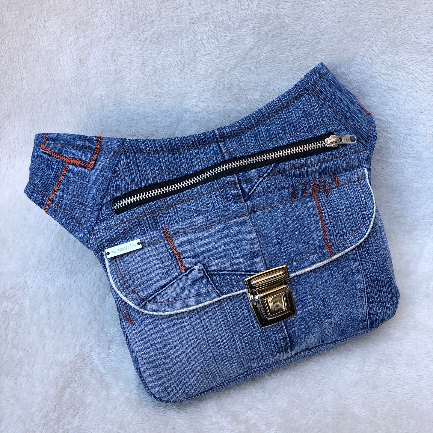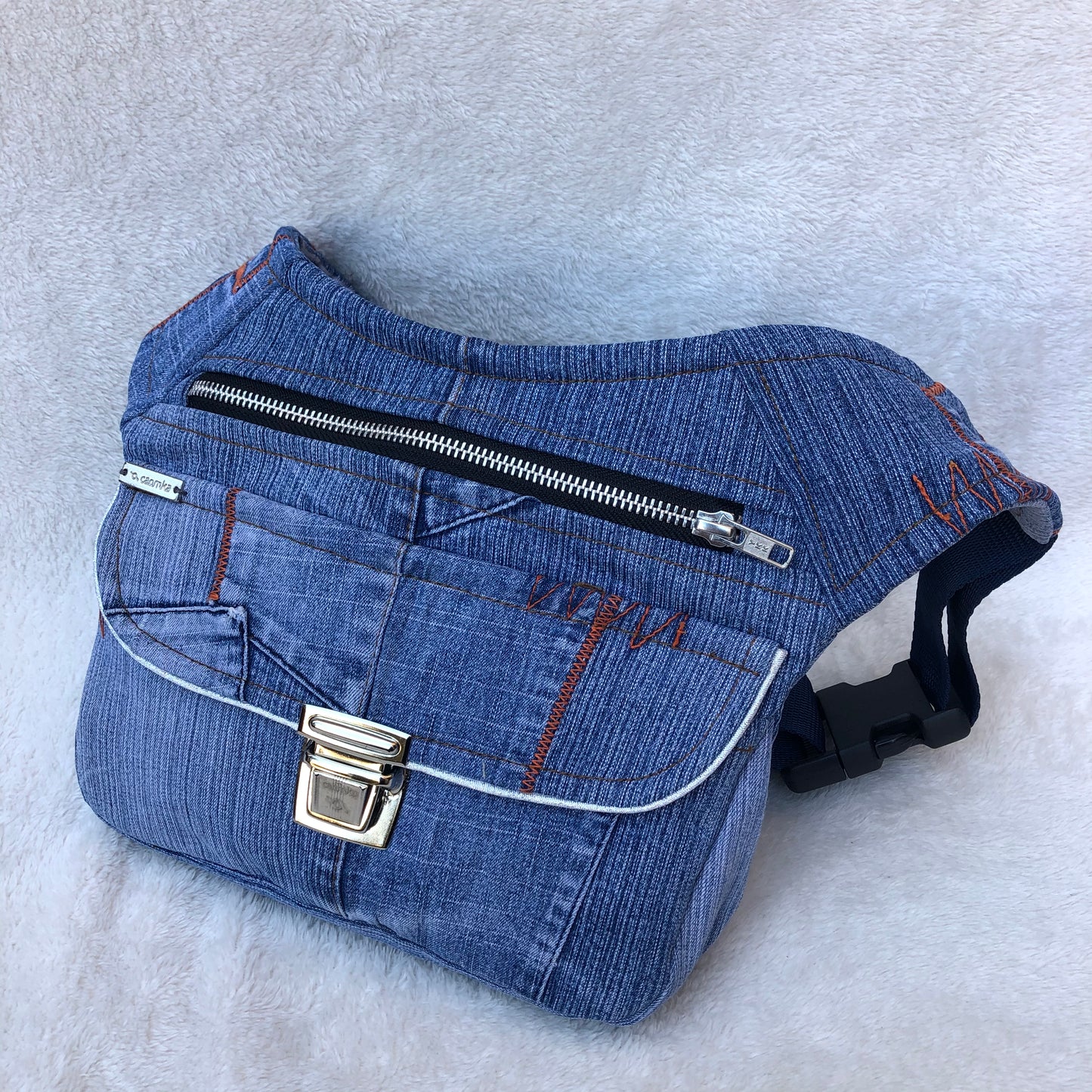 Bolso de Cadera multifunción (Riñonera - Bolso - Bandolera) en tela vaquera reciclada y resistente.