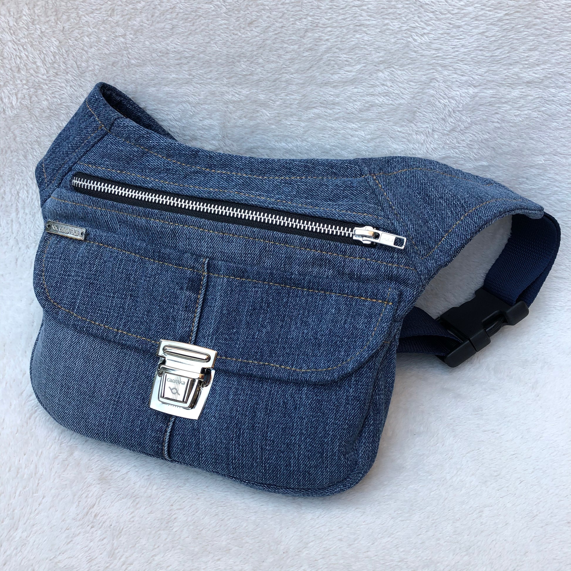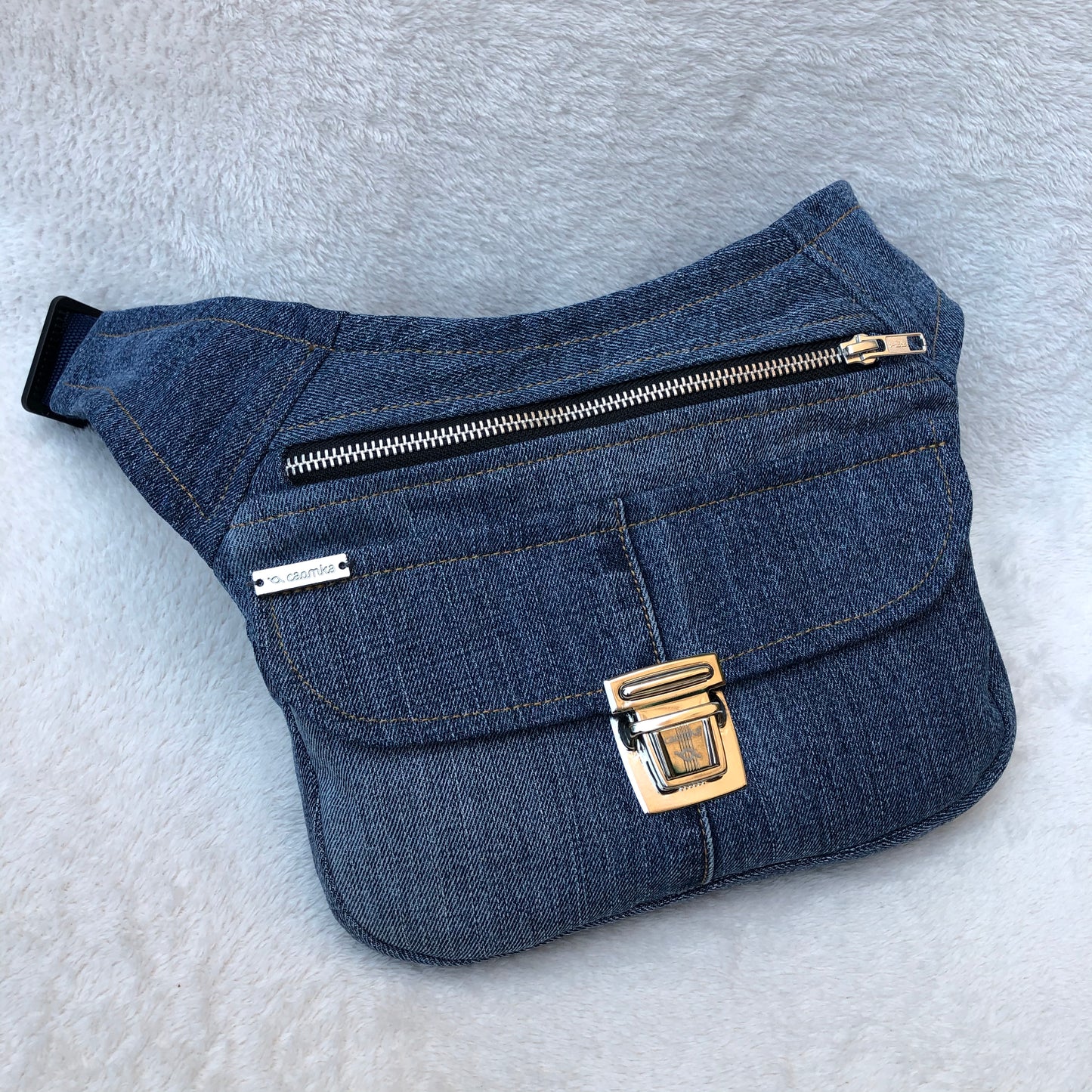 Bolso de Cadera multifunción (Riñonera - Bolso - Bandolera) en tela vaquera reciclada y resistente.