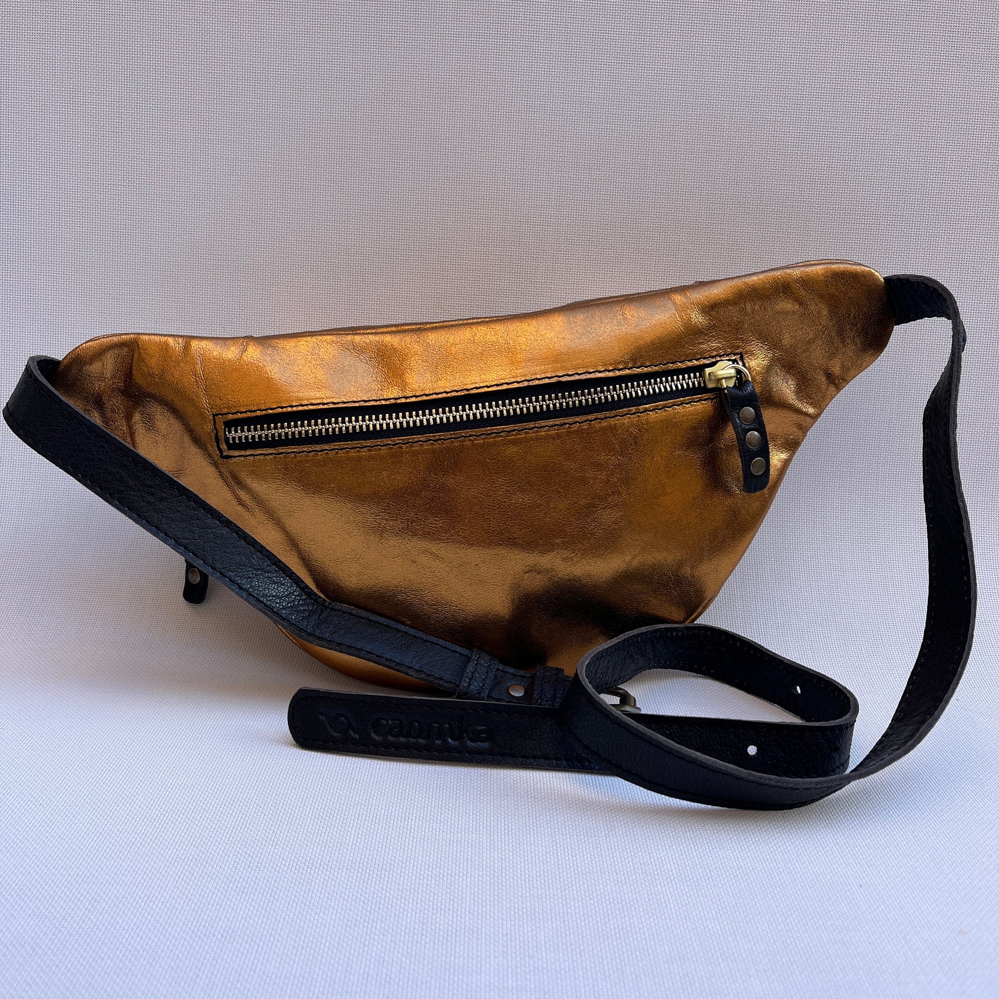 Riñonera confeccionada confeccionado en piel natural BioCuir® libre de cromo.