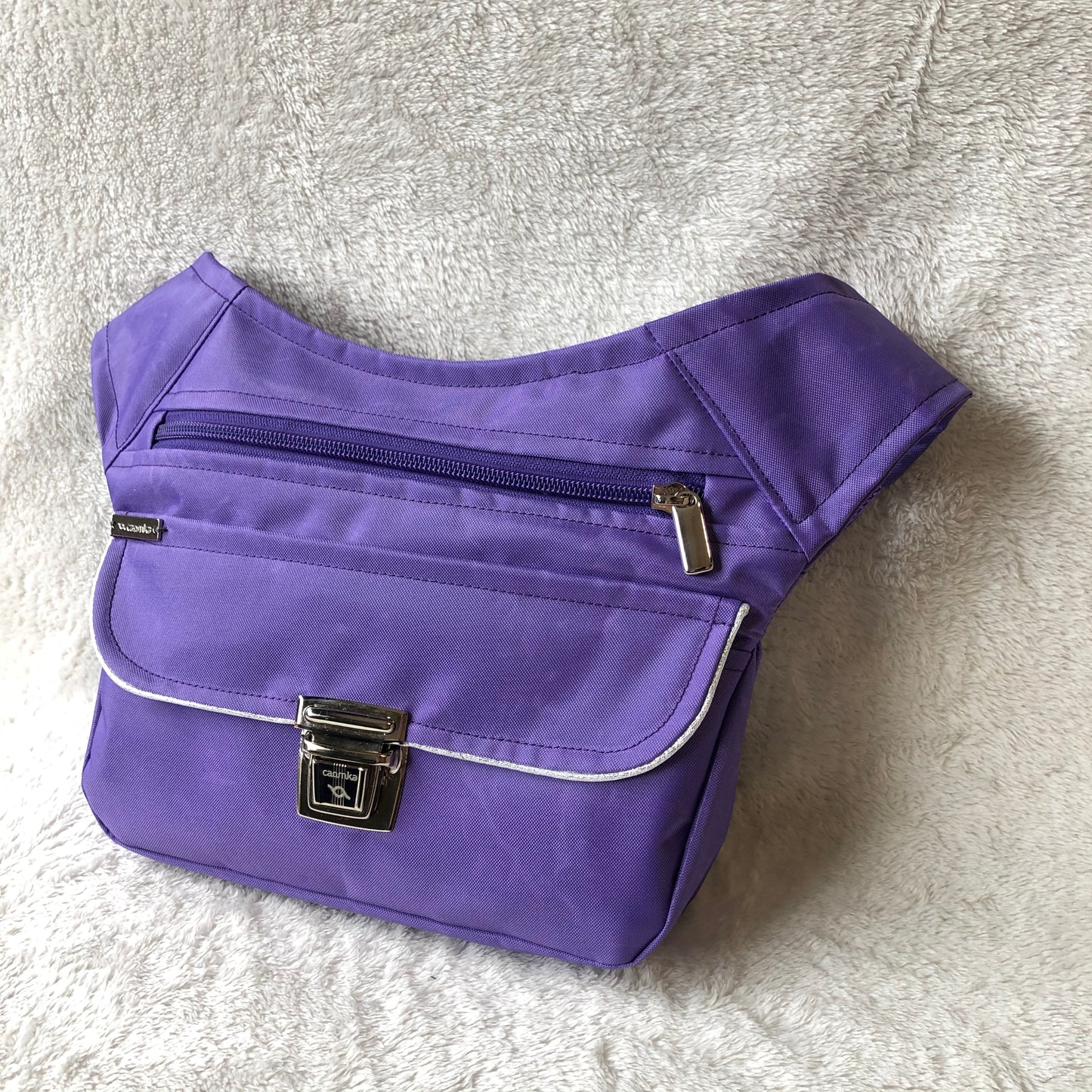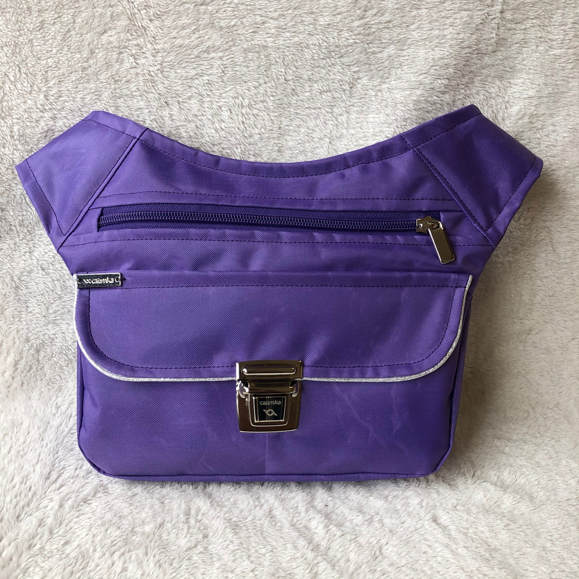 Bolso de Cadera multifunción (Riñonera - Bolso - Bandolera) en tela resinada lila muy resistente y anti-manchas.