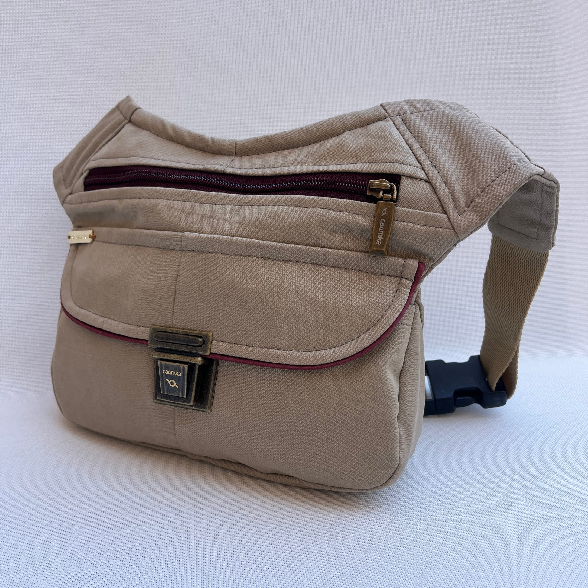 Bolso de Cadera multifunción (Riñonera - Bolso - Bandolera) en tela vaquera reciclada y resistente.