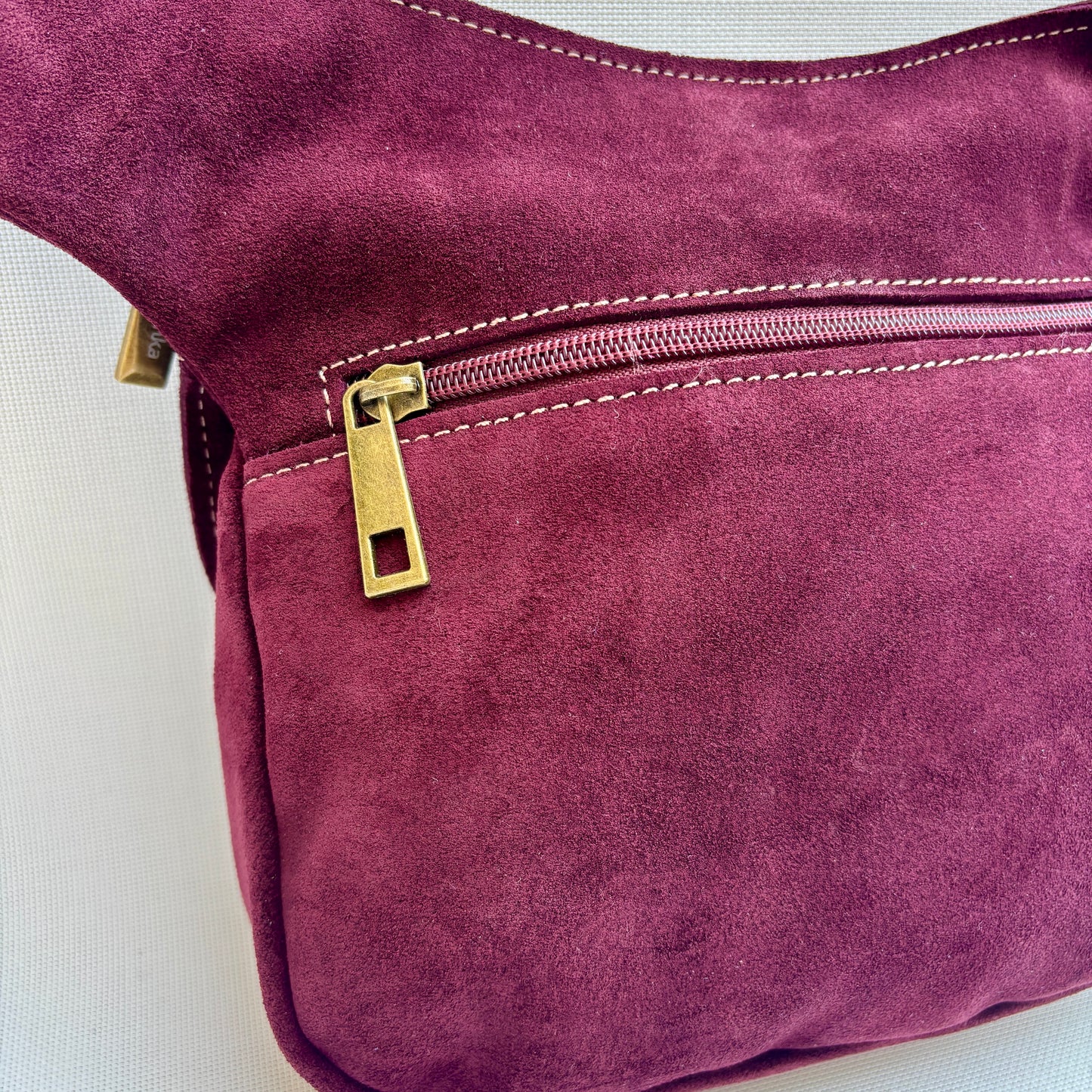 Bolsillo extra trasero (19cm) con cremallera de nylon a juego y tirador en metálico en oro viejo.