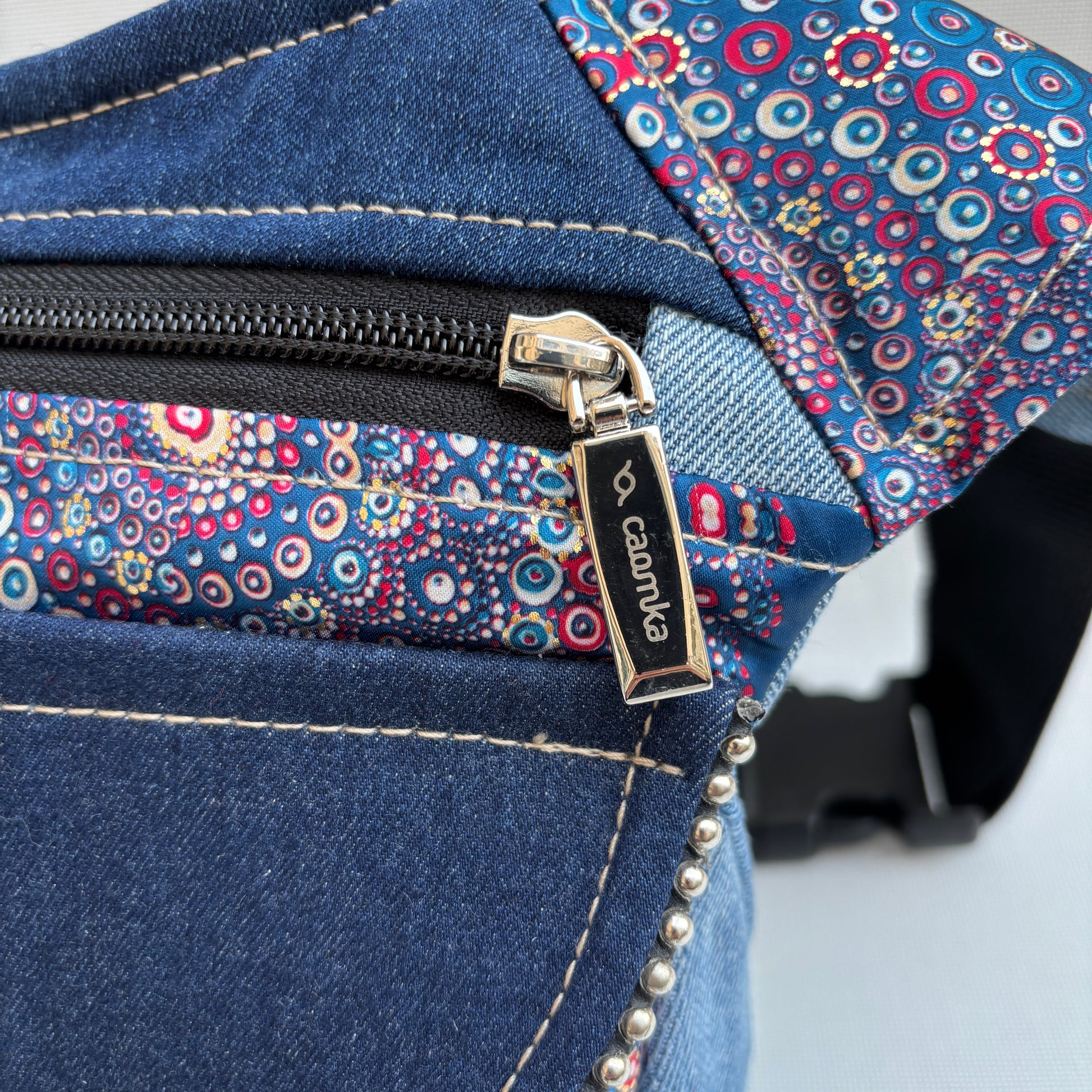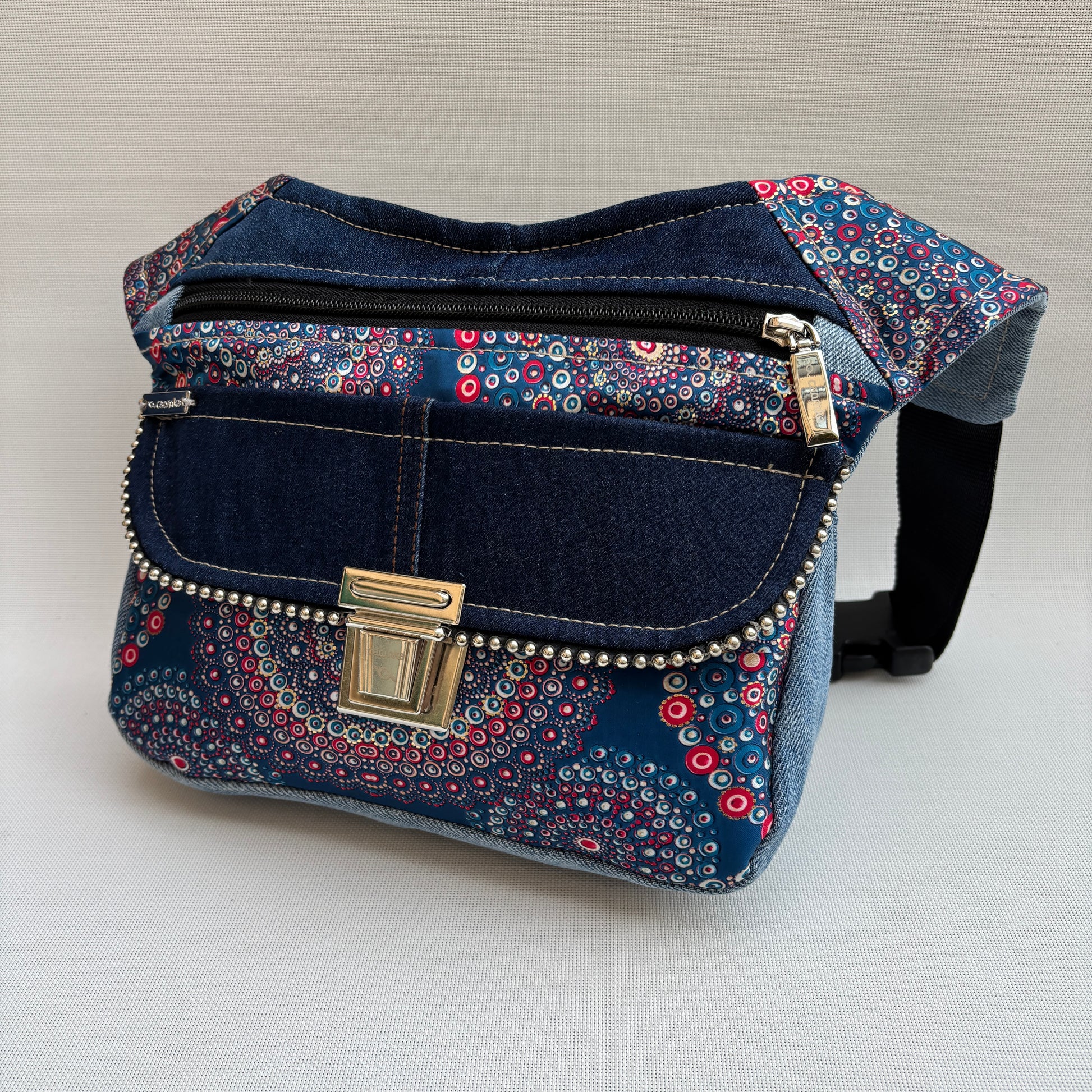 Bolso de Cadera multifunción (Riñonera - Bolso - Bandolera) en tela vaquera reciclada y resistente.