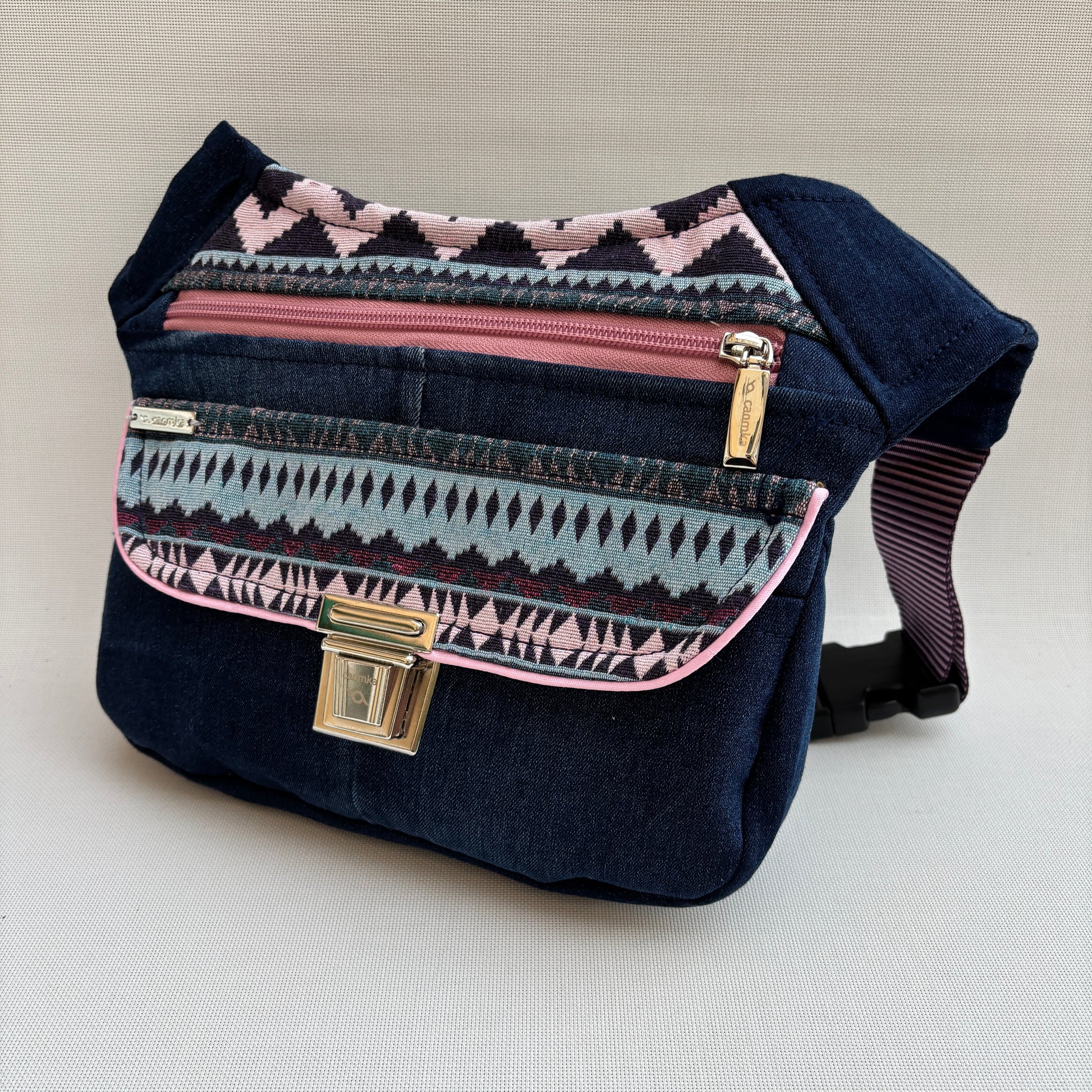 Bolso de Cadera multifunción (Riñonera - Bolso - Bandolera) en tela vaquera reciclada y resistente.