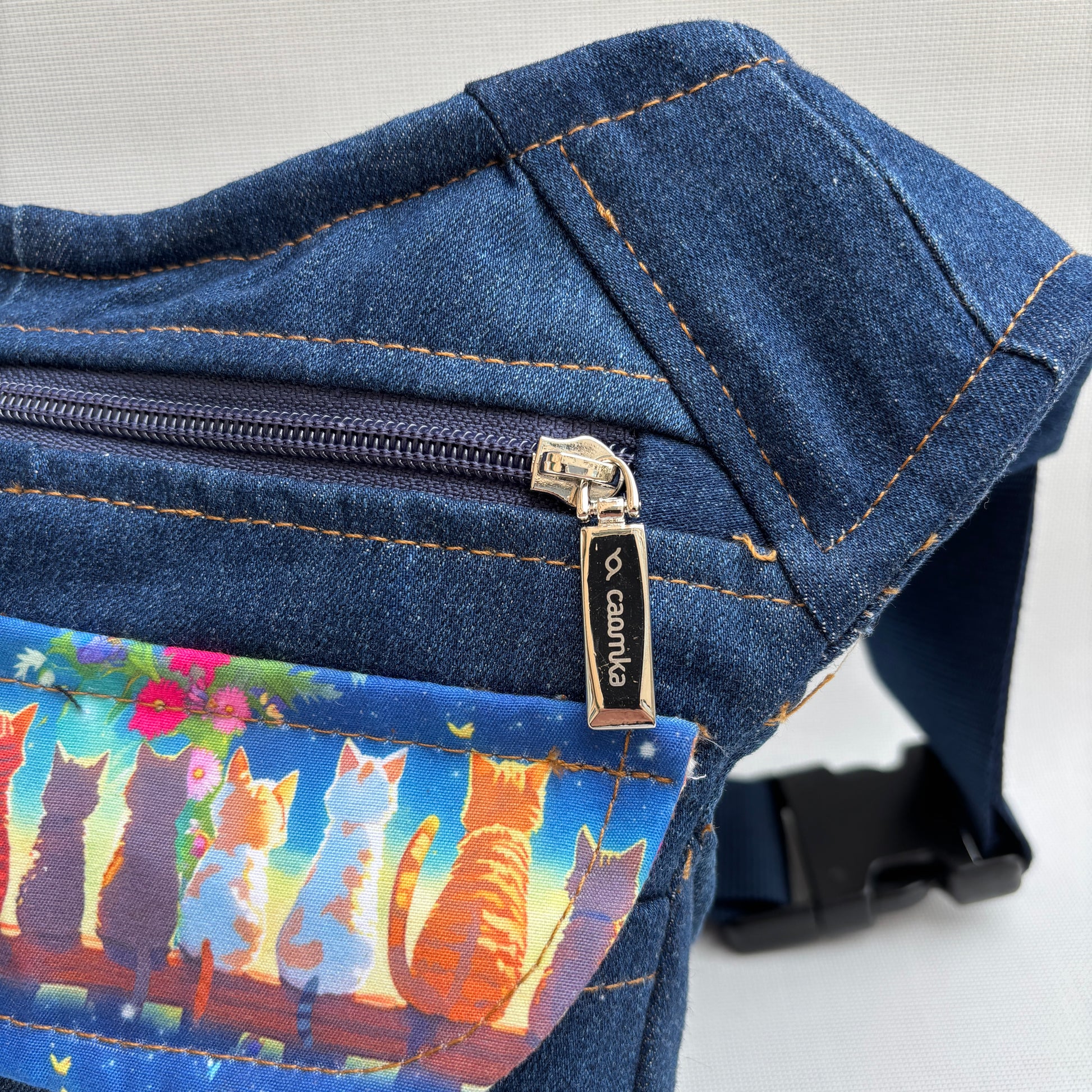 Bolso de Cadera multifunción (Riñonera - Bolso - Bandolera) en tela vaquera reciclada y resistente.