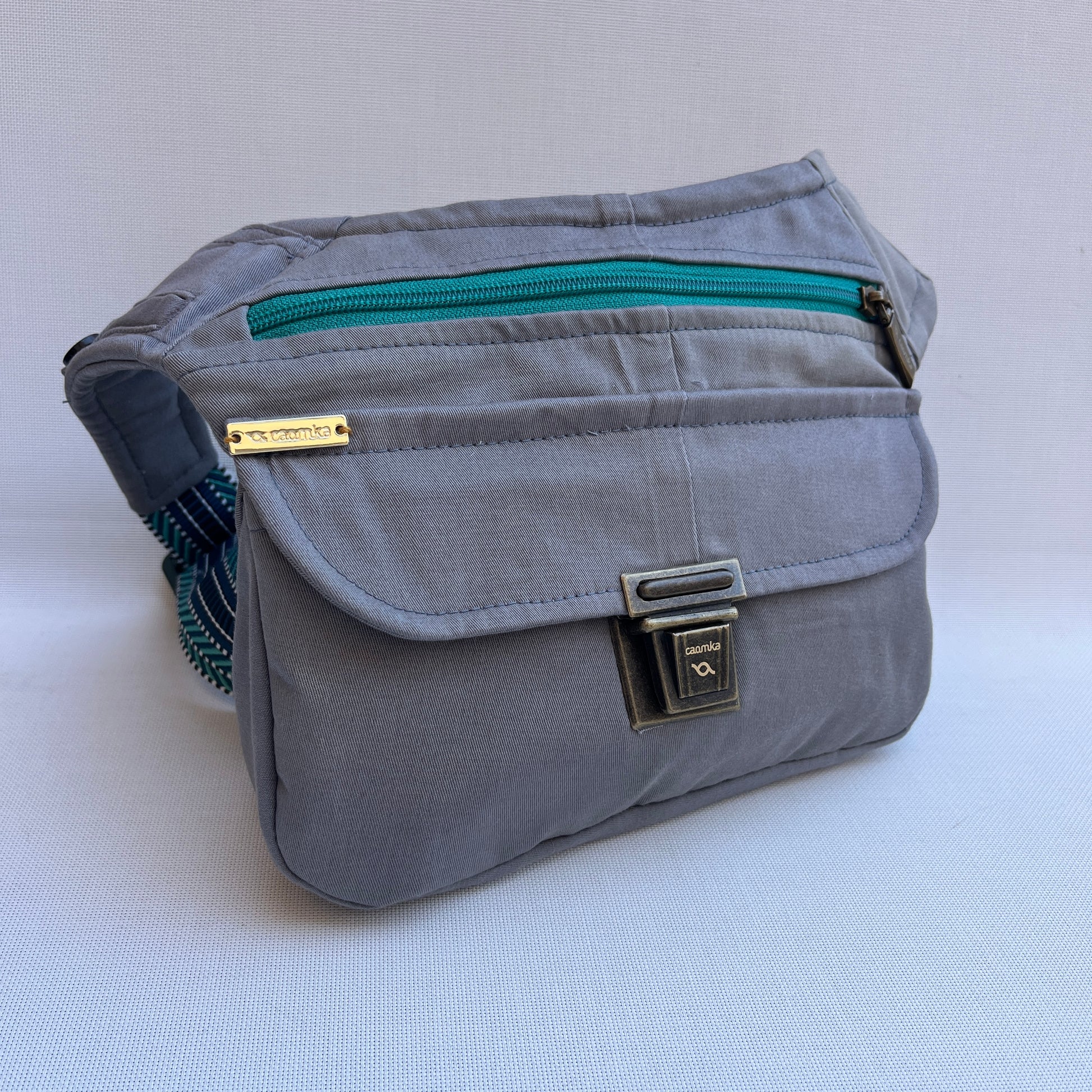 Bolso de Cadera multifunción (Riñonera - Bolso - Bandolera) en tela vaquera reciclada y resistente.