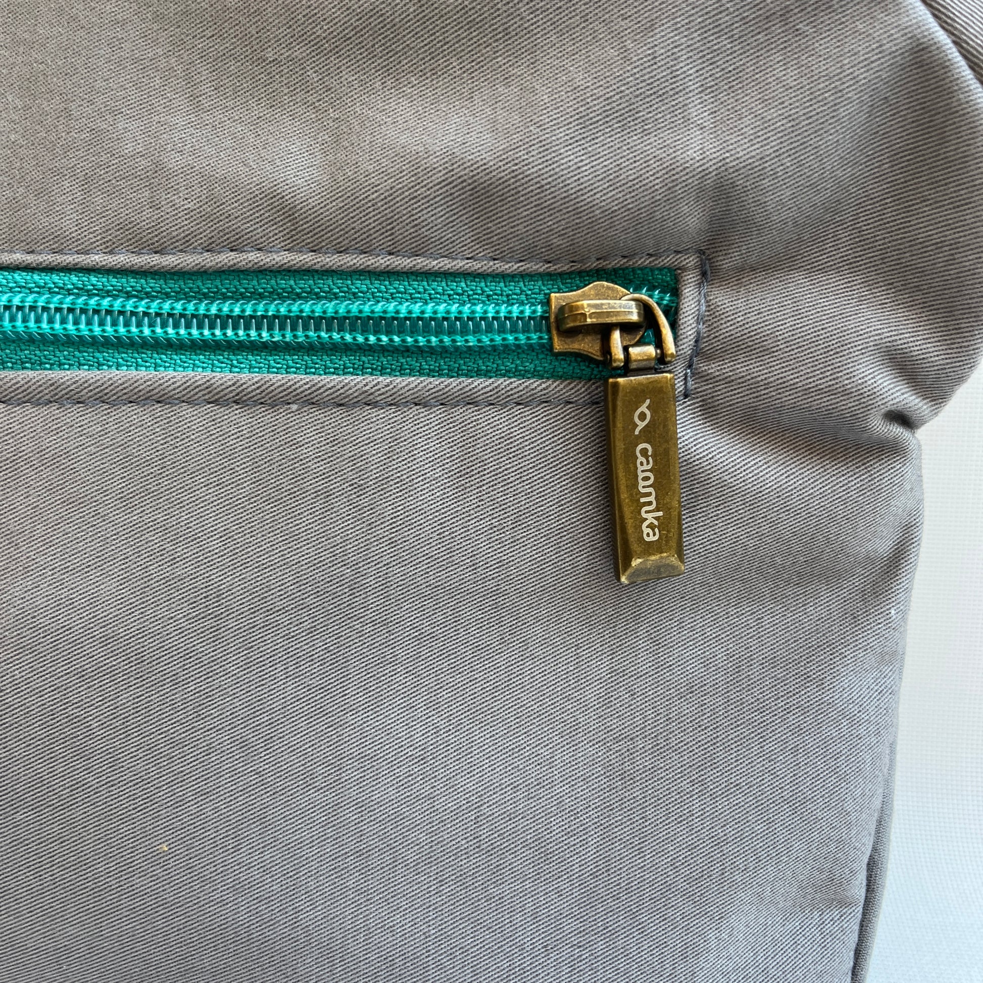 Cremallera original en color verde a juego con tirador especial Caomka en color Oro Viejo.