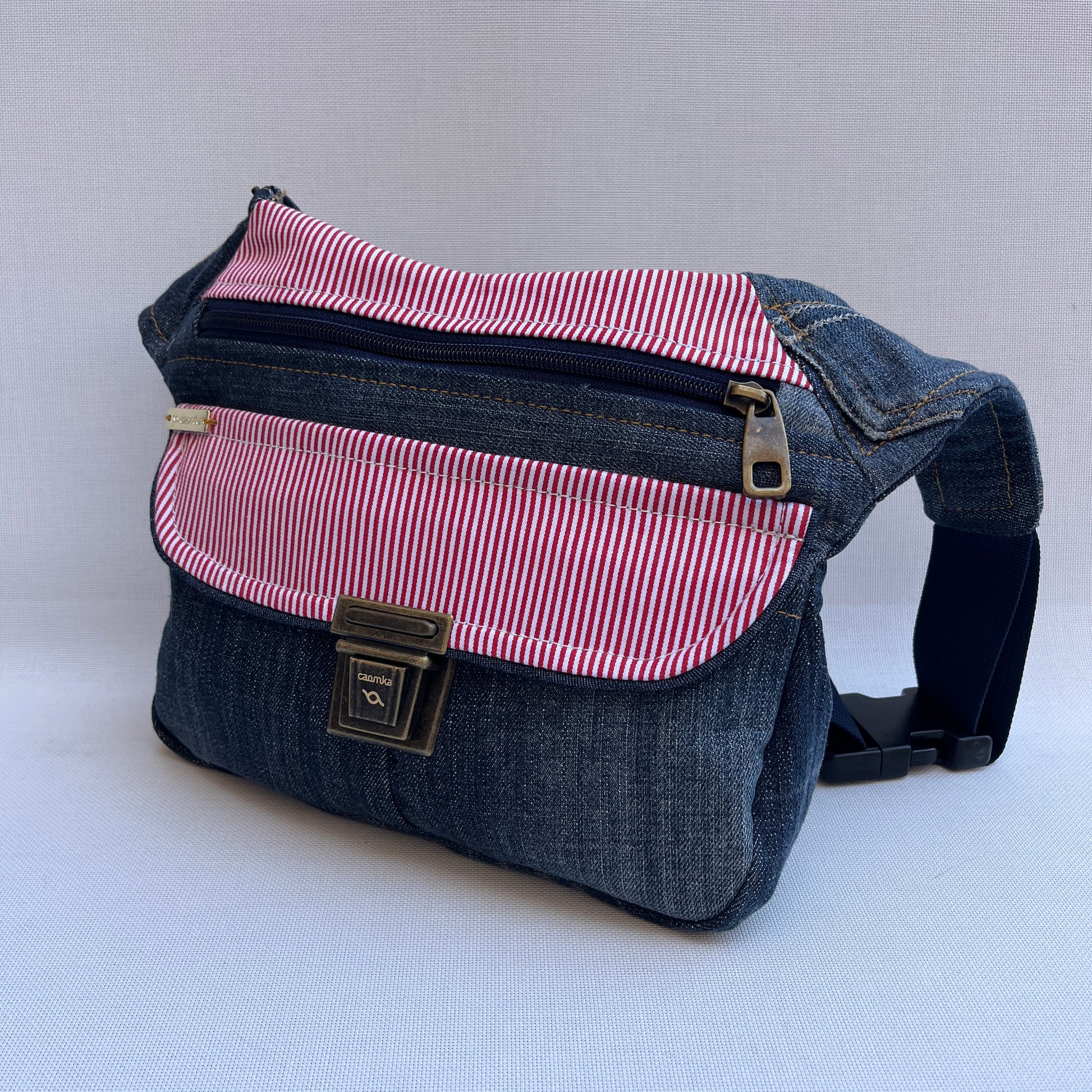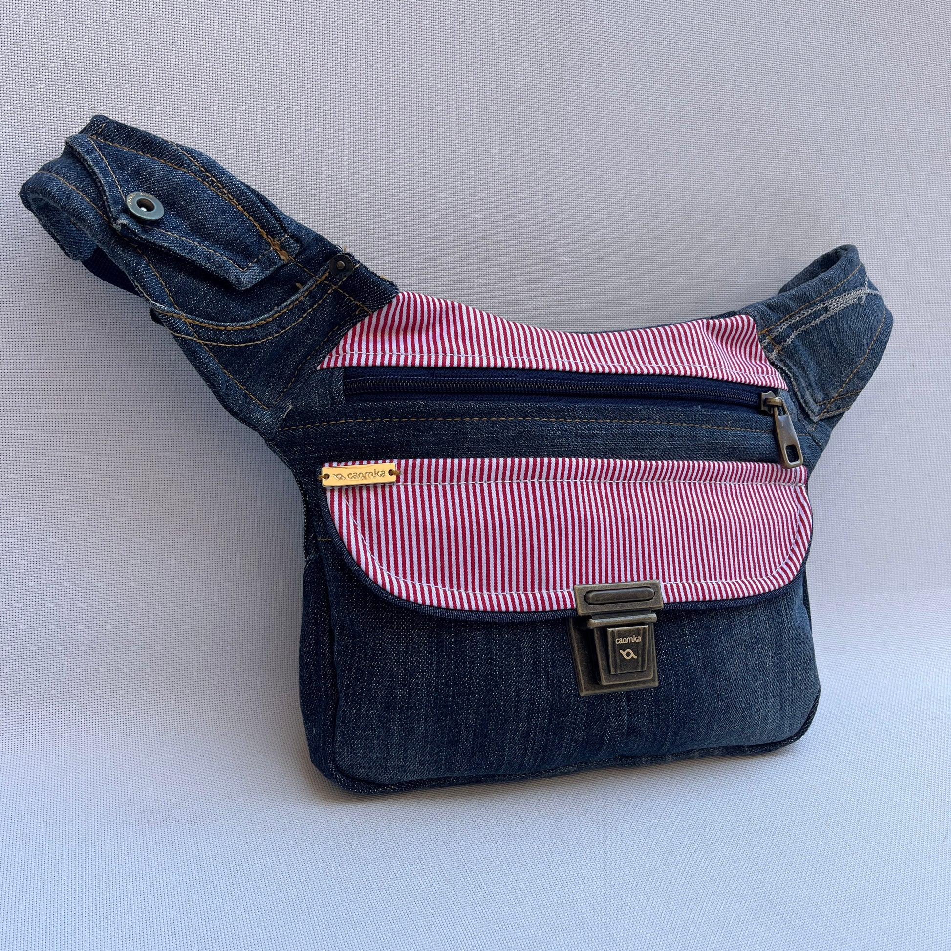 Bolso de Cadera multifunción (Riñonera - Bolso - Bandolera) en tela vaquera reciclada y resistente.