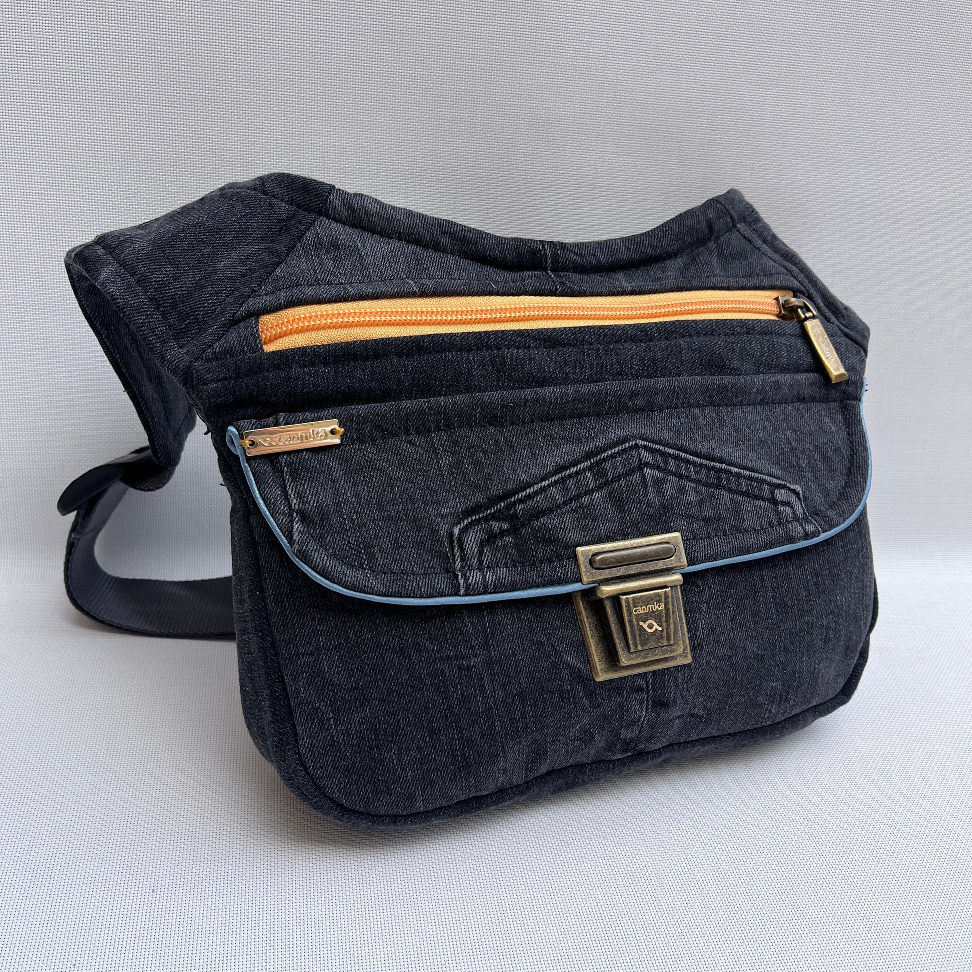 Bolso de Cadera multifunción (Riñonera - Bolso - Bandolera) en tela vaquera reciclada y resistente.