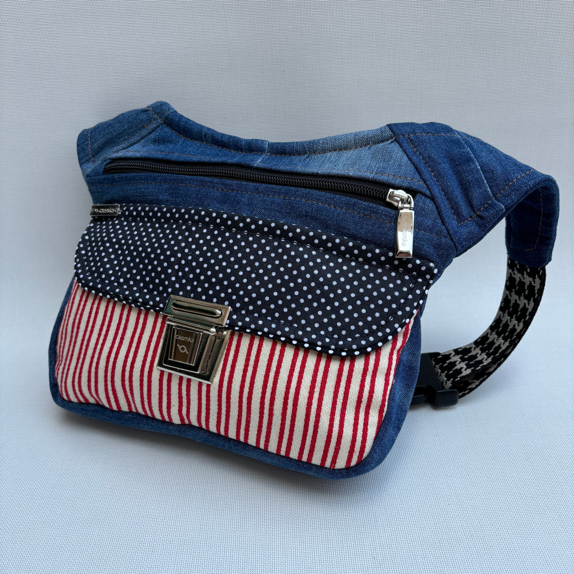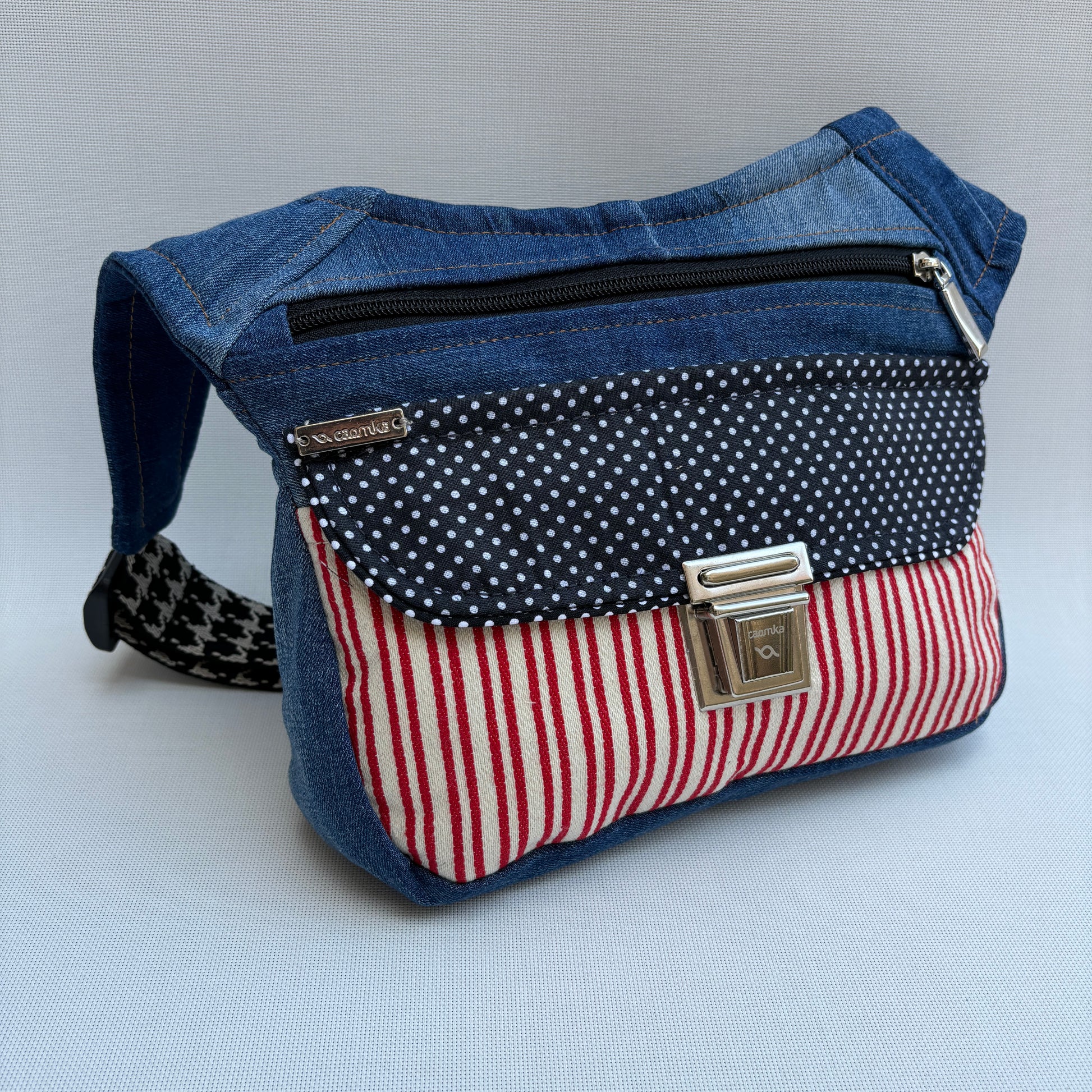 Bolso de Cadera multifunción (Riñonera - Bolso - Bandolera) en tela vaquera reciclada y resistente.
