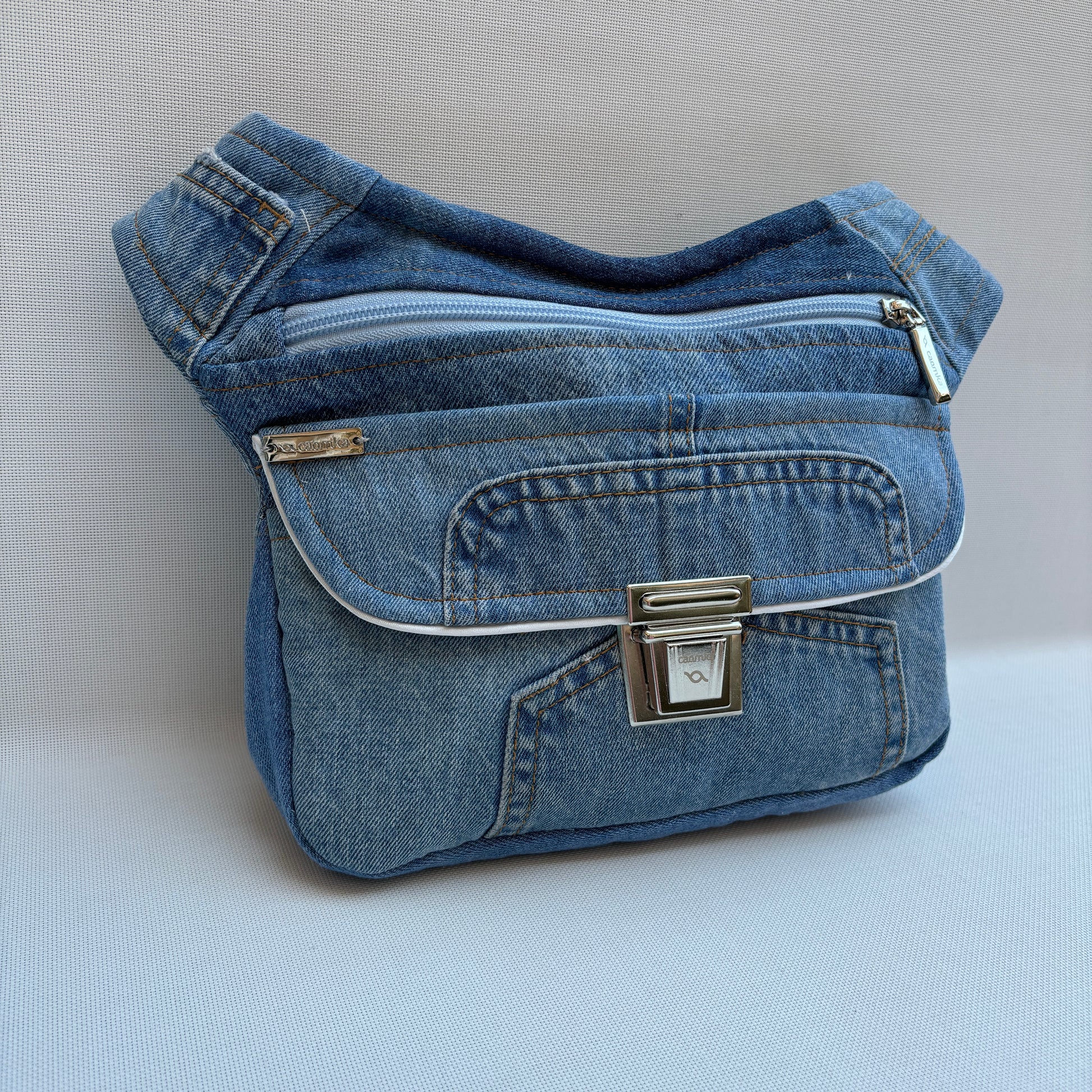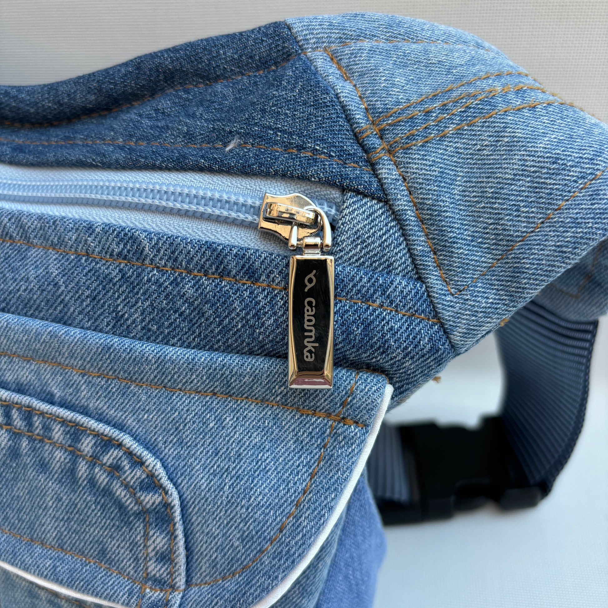 Bolso de Cadera multifunción (Riñonera - Bolso - Bandolera) en tela vaquera reciclada y resistente.