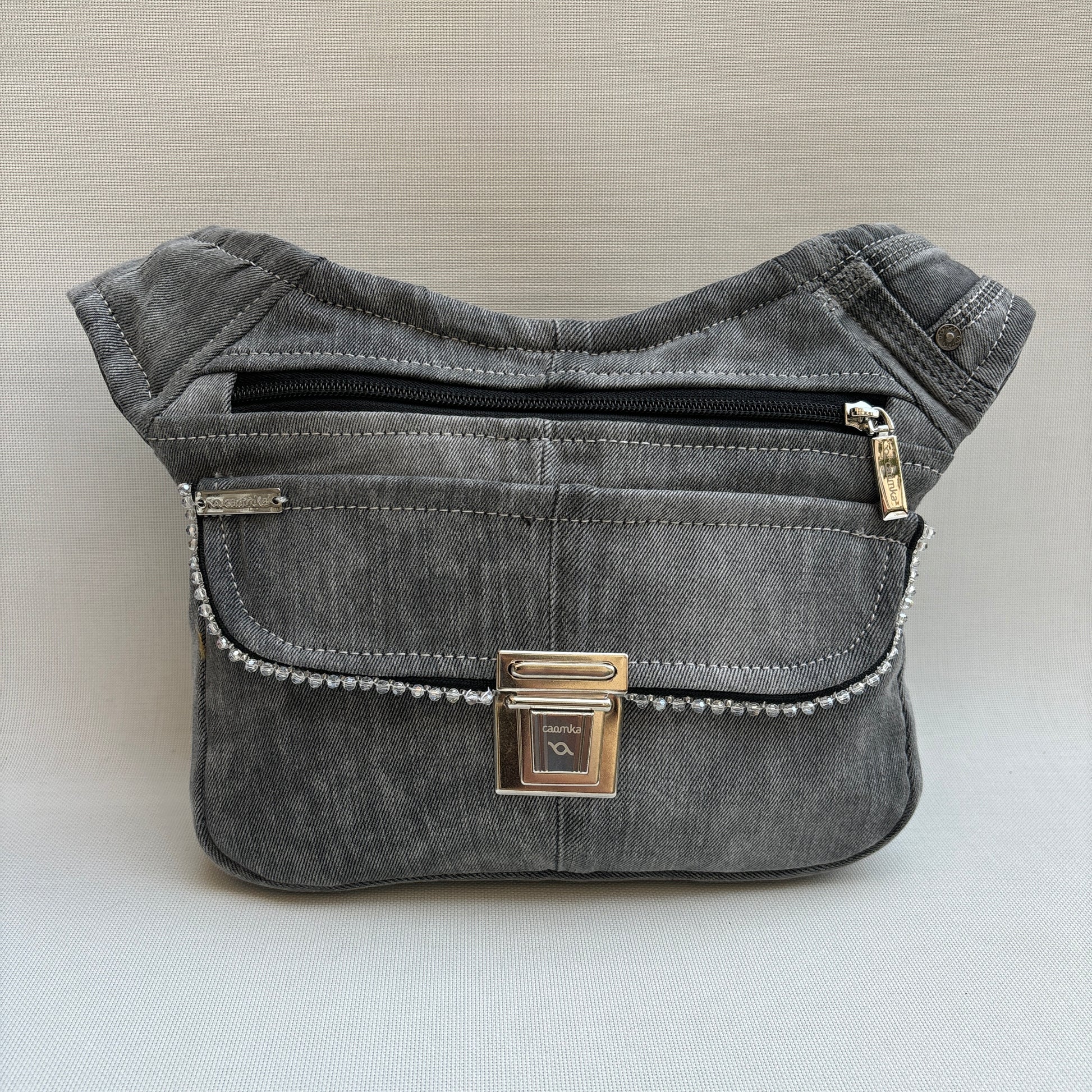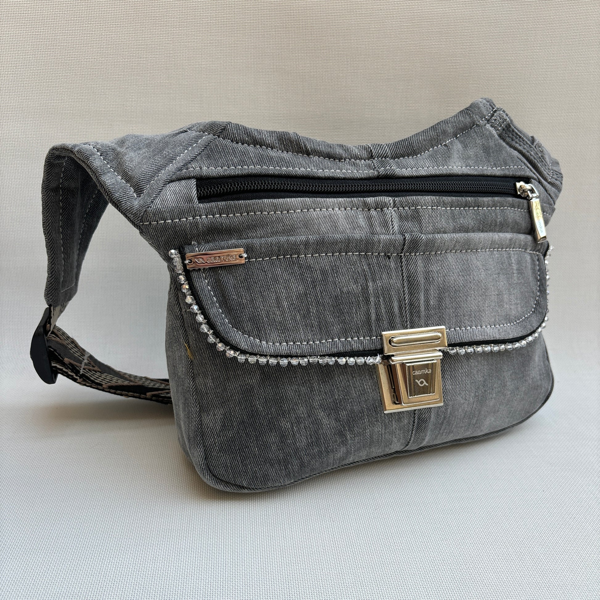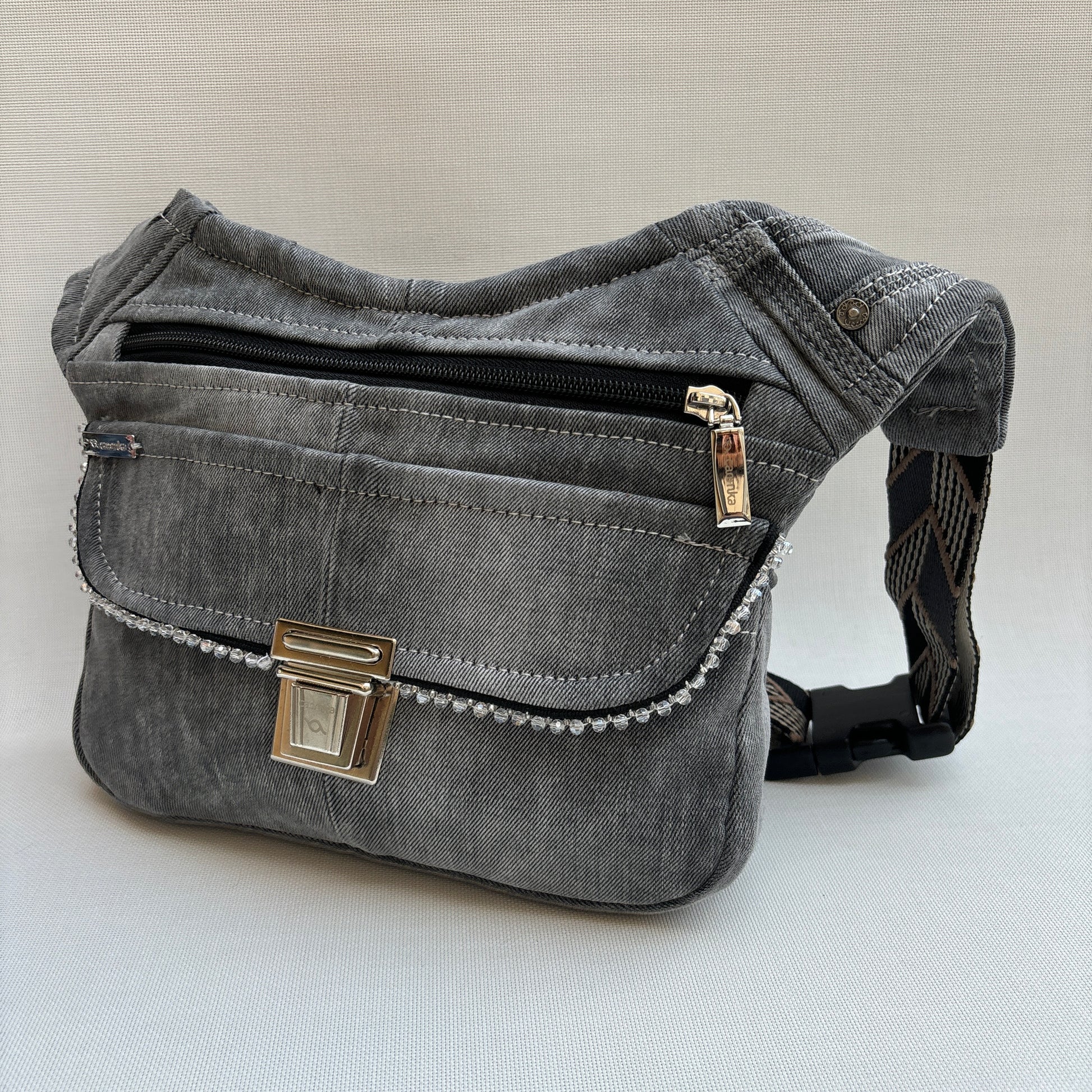 Bolso de Cadera multifunción (Riñonera - Bolso - Bandolera) en tela vaquera reciclada y resistente.