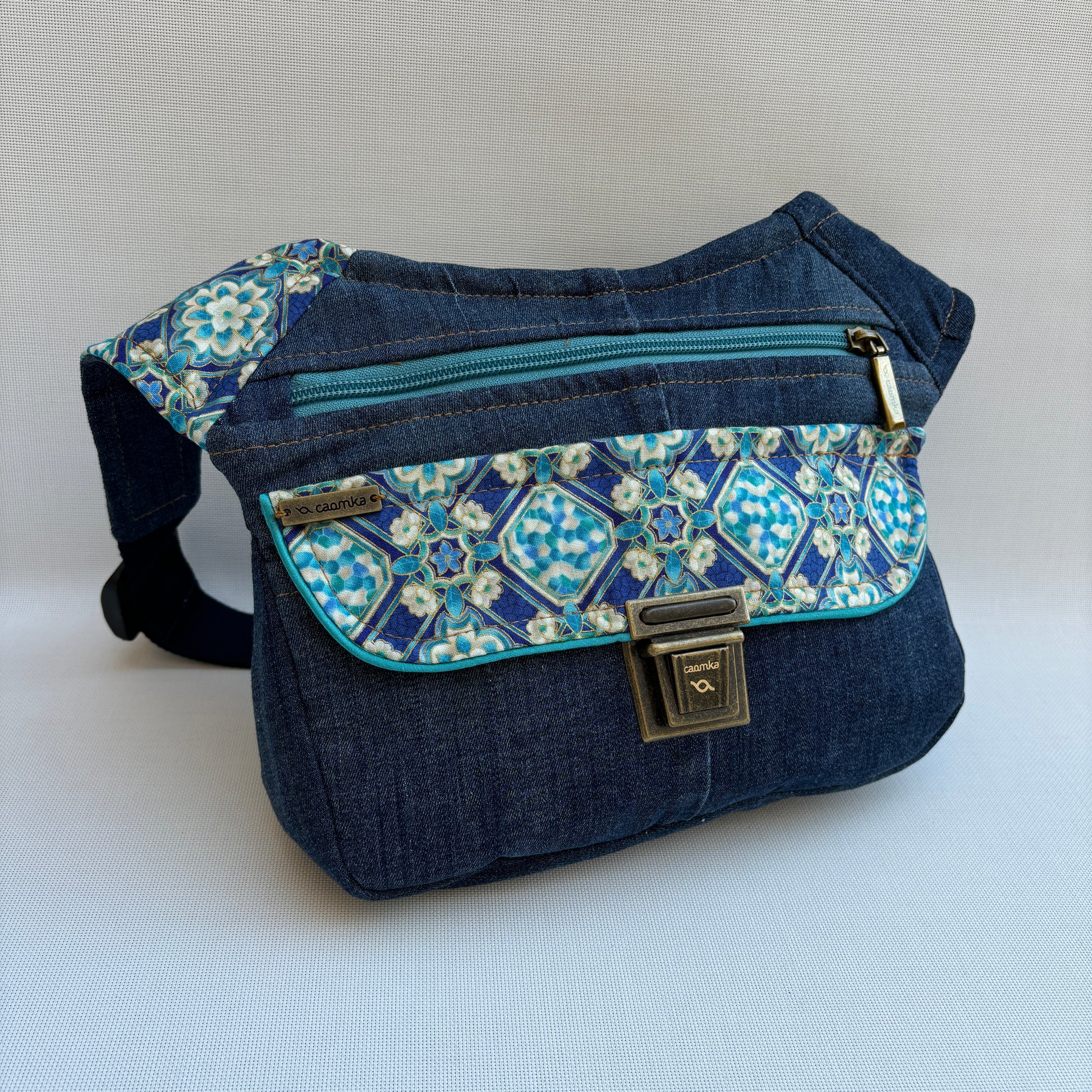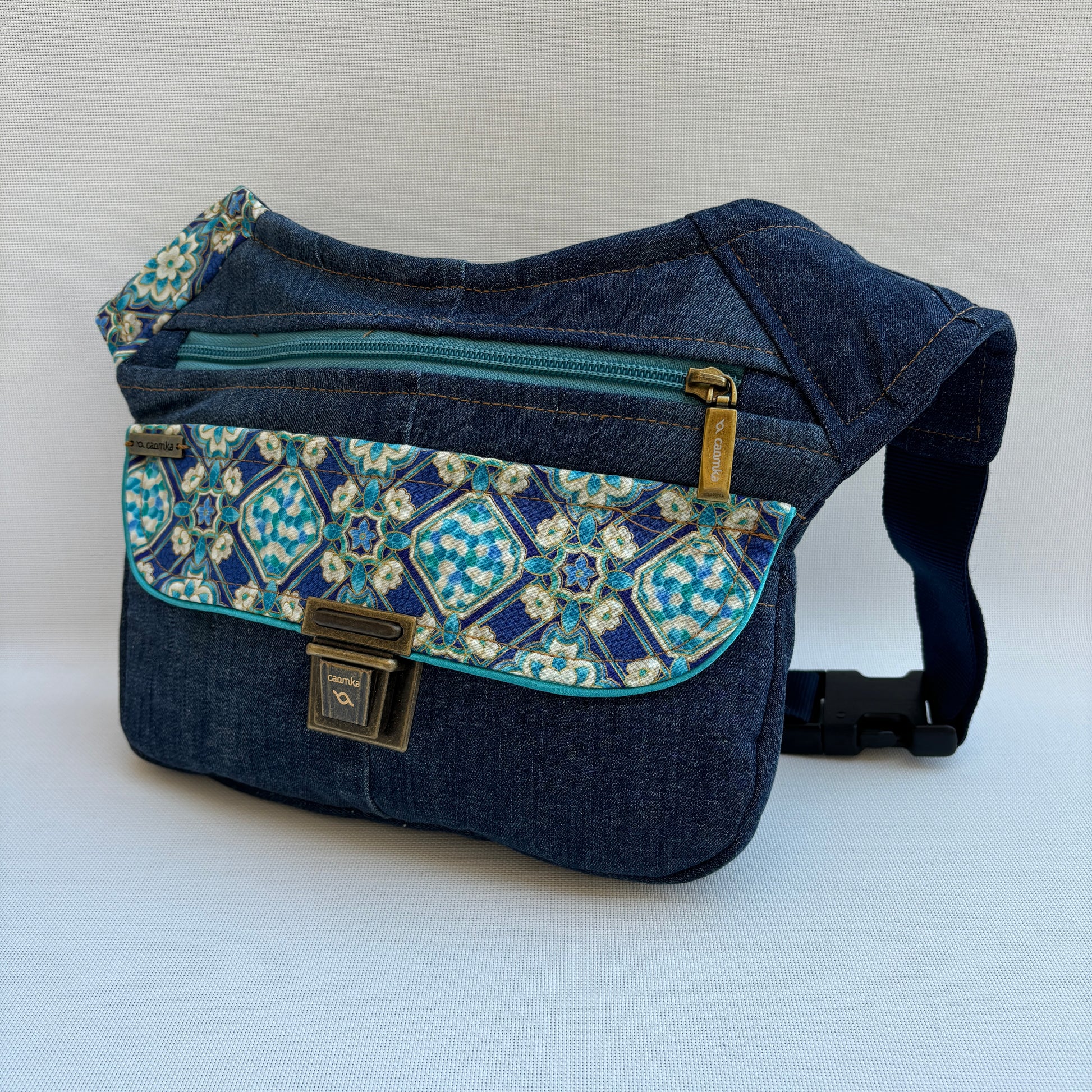Bolso de Cadera multifunción (Riñonera - Bolso - Bandolera) en tela vaquera reciclada y resistente.