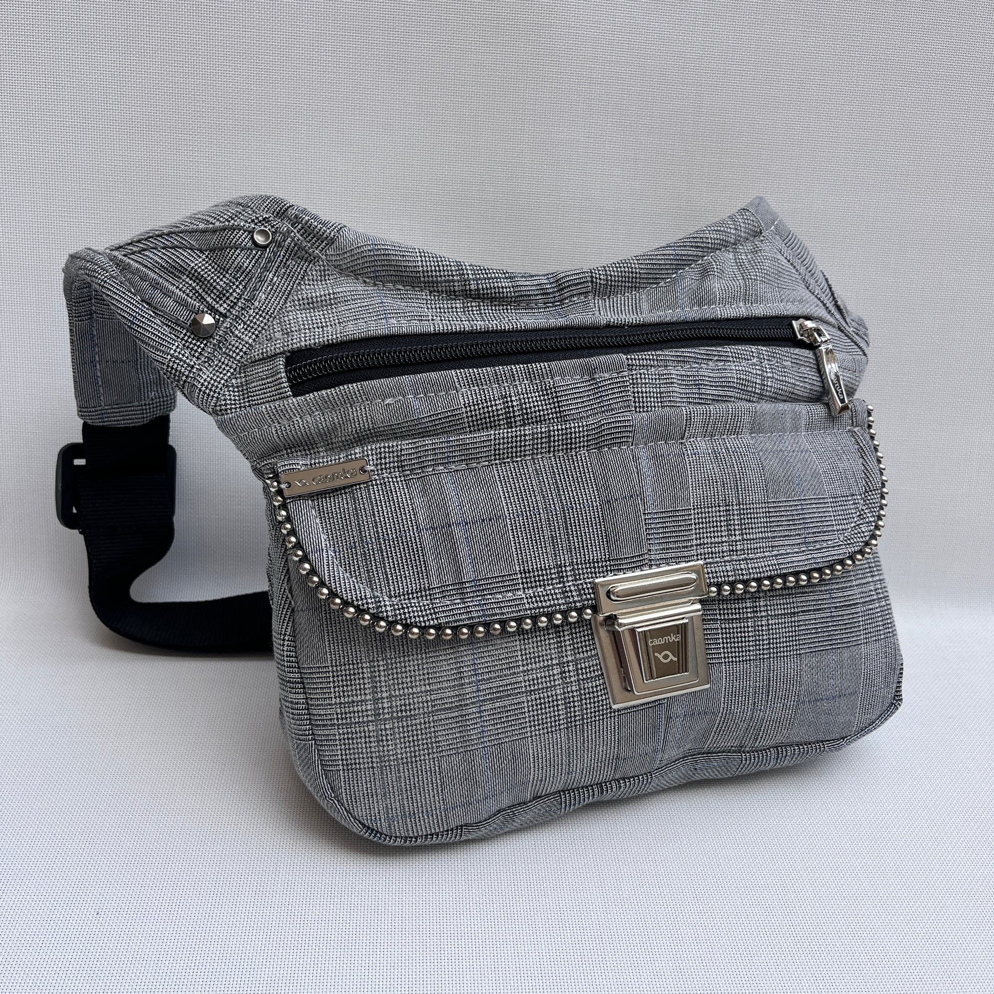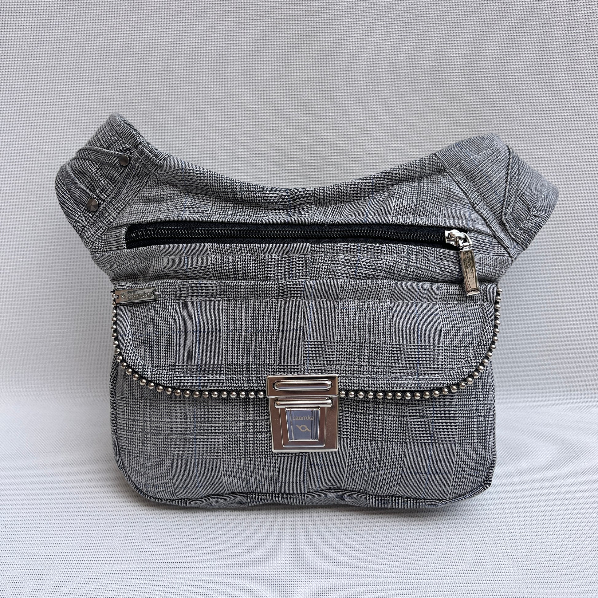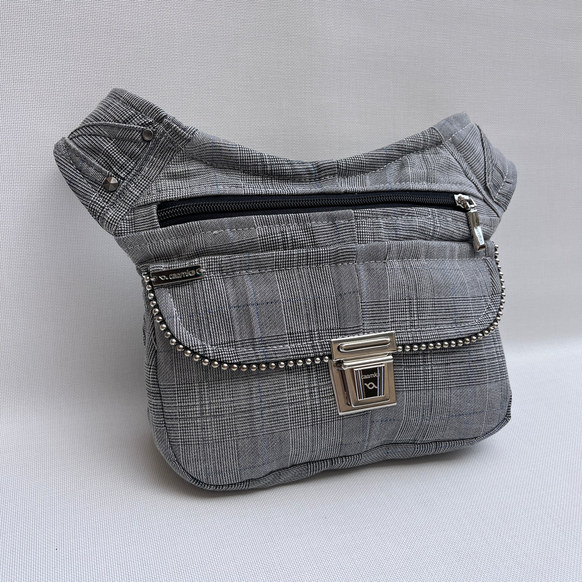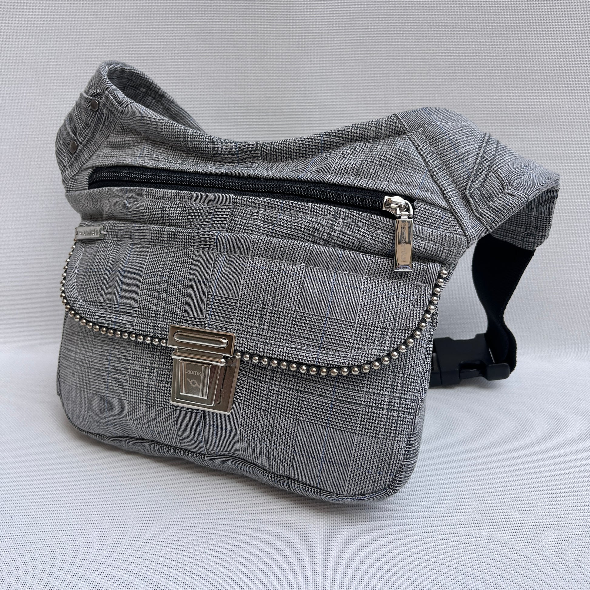 Bolso de Cadera multifunción (Riñonera - Bolso - Bandolera) en tela reciclada de una falda.