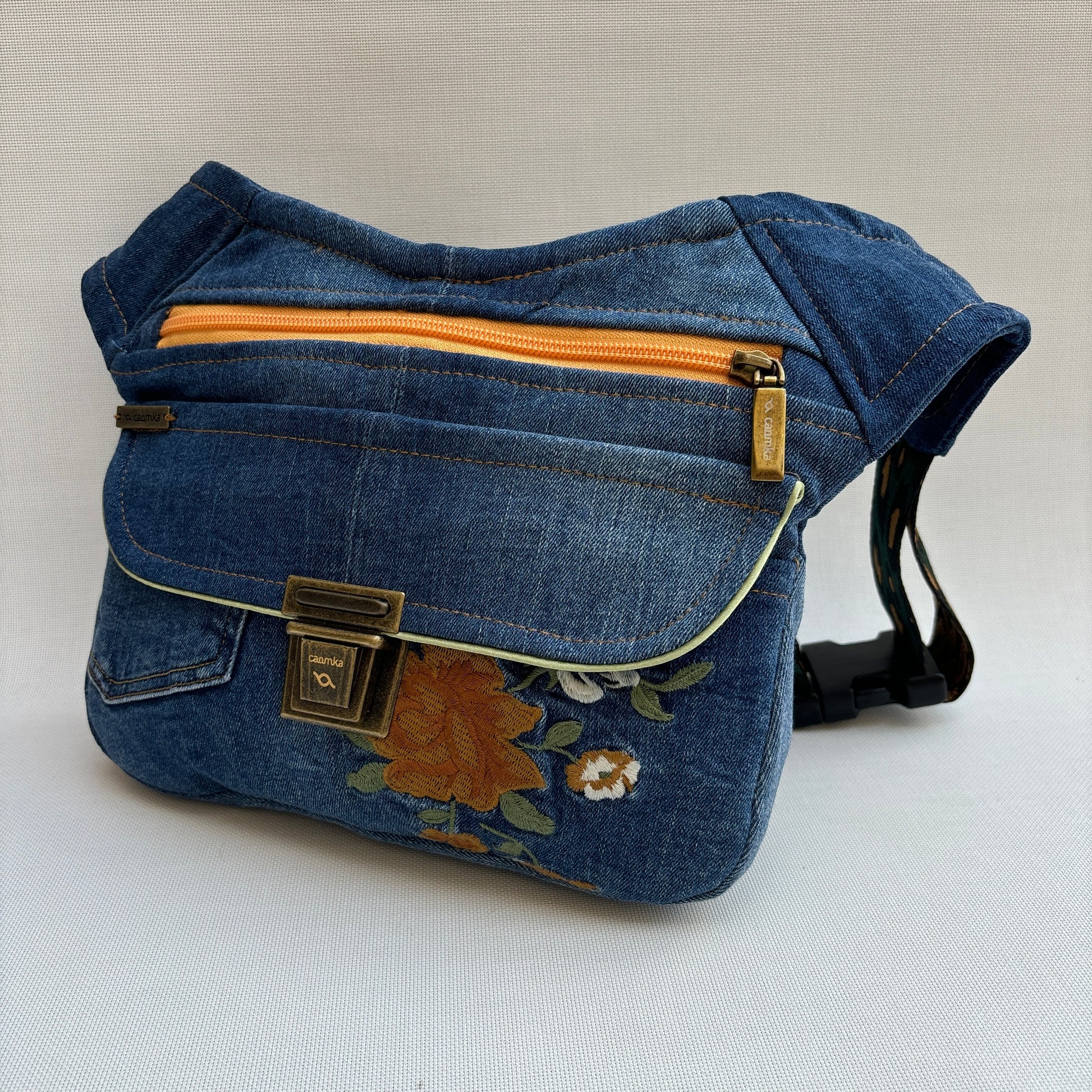 Bolso de Cadera multifunción (Riñonera - Bolso - Bandolera) en tela vaquera reciclada y resistente.