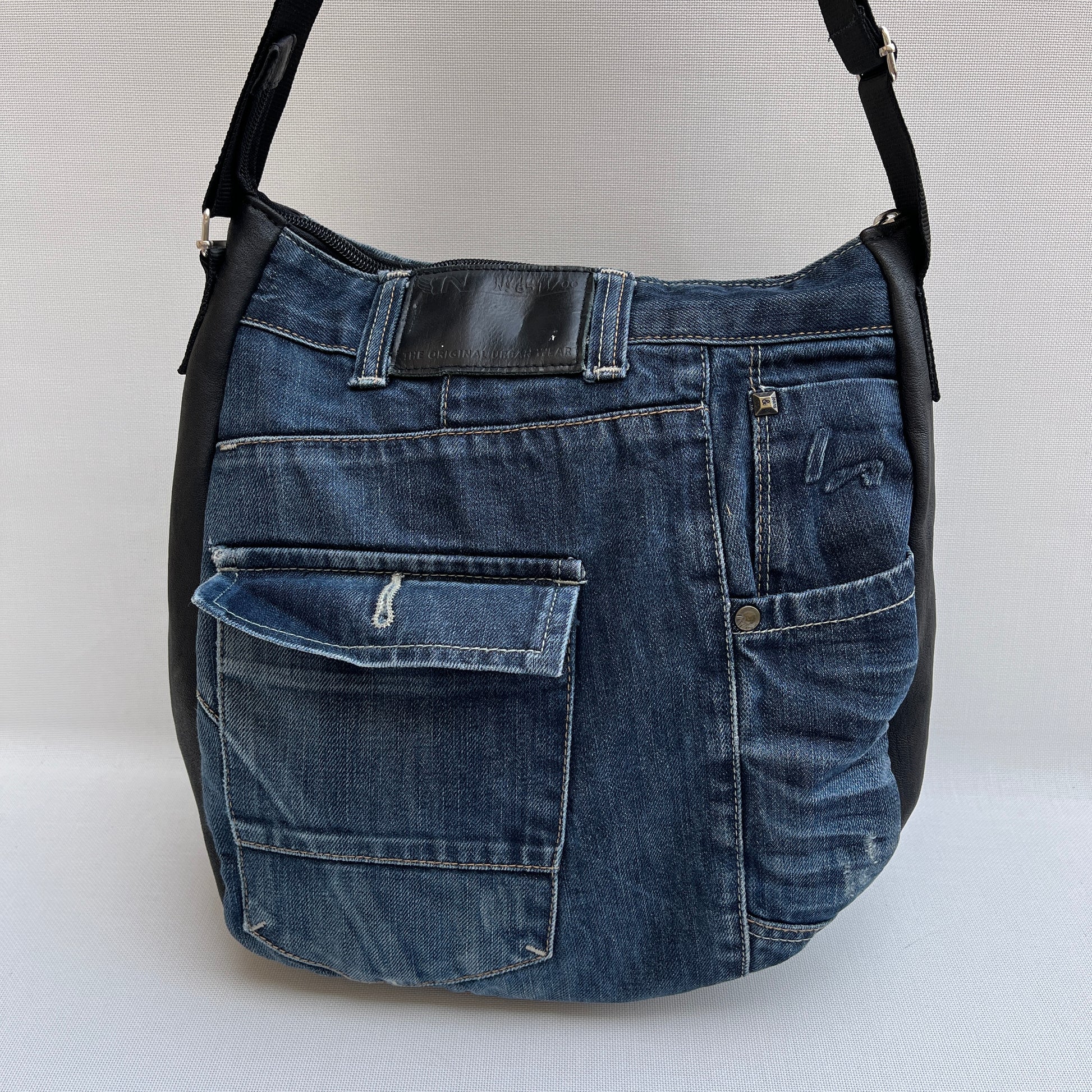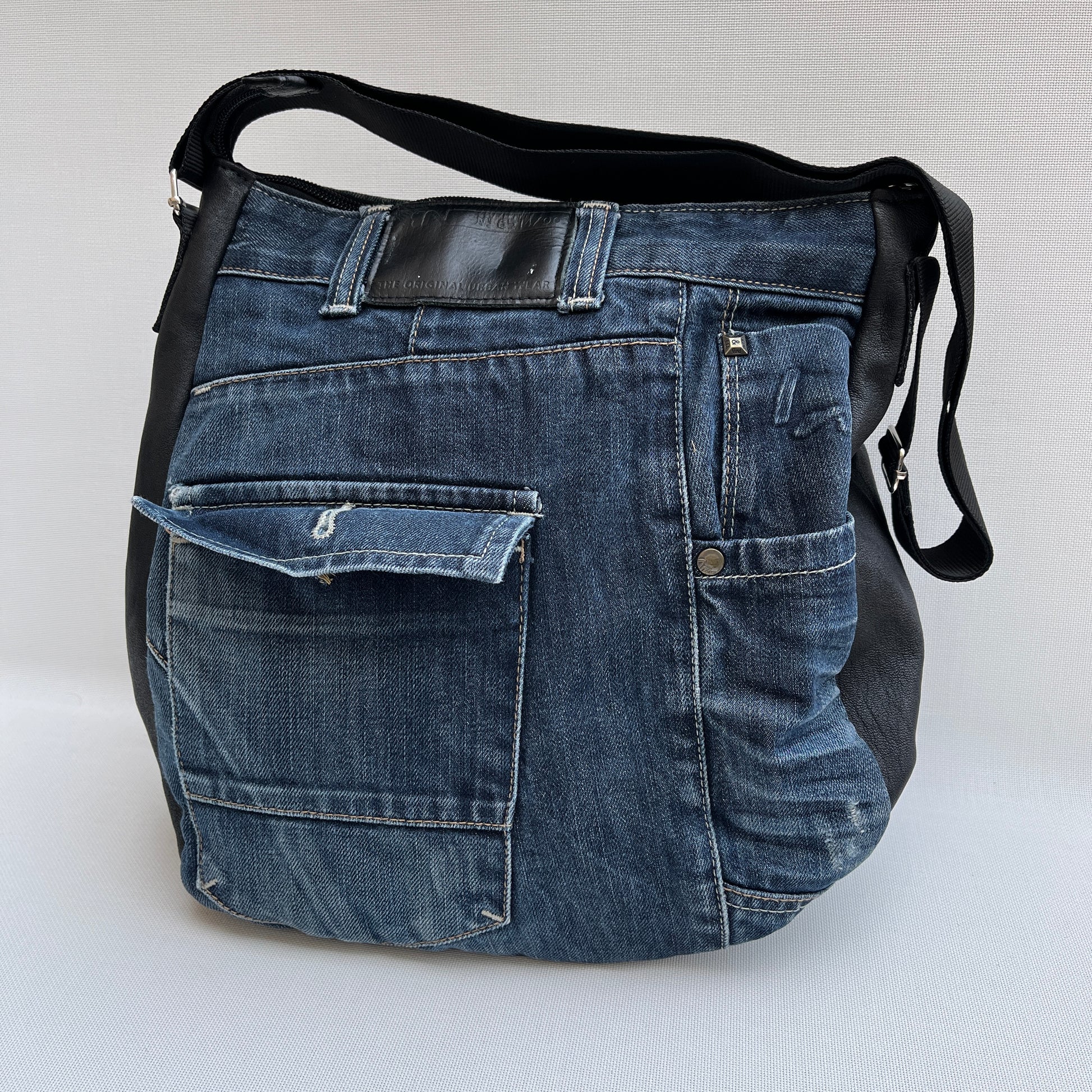 Bolso Tote Caomka confeccionado en piel natural BioCuir® y tejido procedente de vaqueros reutilizados.