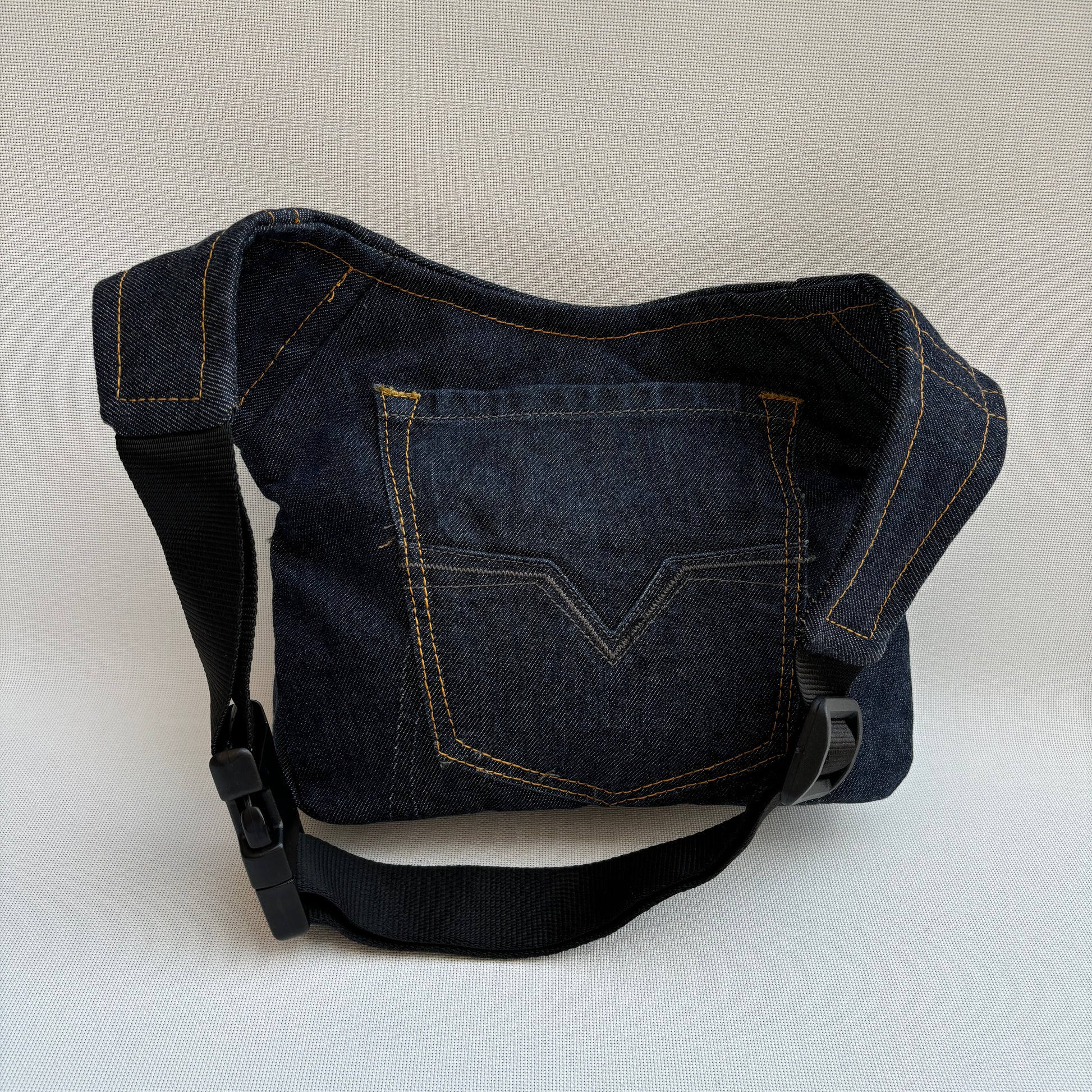 Bolso de Cadera multifunción (Riñonera - Bolso - Bandolera) en tela vaquera reciclada y resistente.