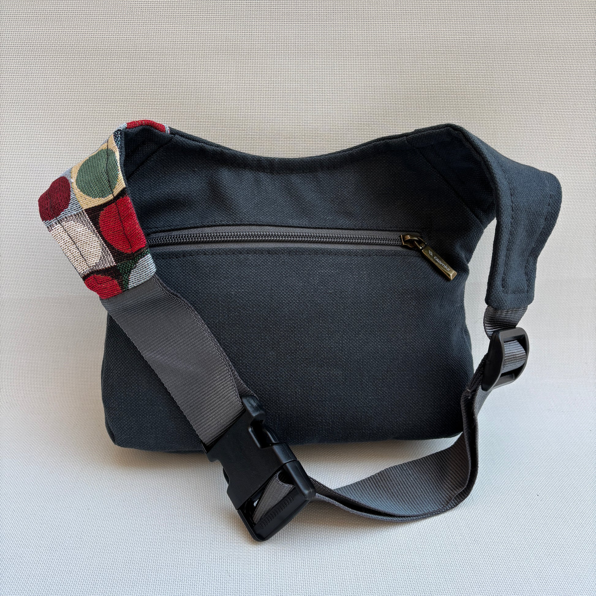 Esta pieza tiene un pequeño defecto estético en el tejido cerca del cierre (visible en las fotografías), que no afecta a su funcionalidad. Por este motivo se ofrece con un 30% de descuento, convirtiéndola en una oportunidad especial para disfrutar de una pieza única Caomka.