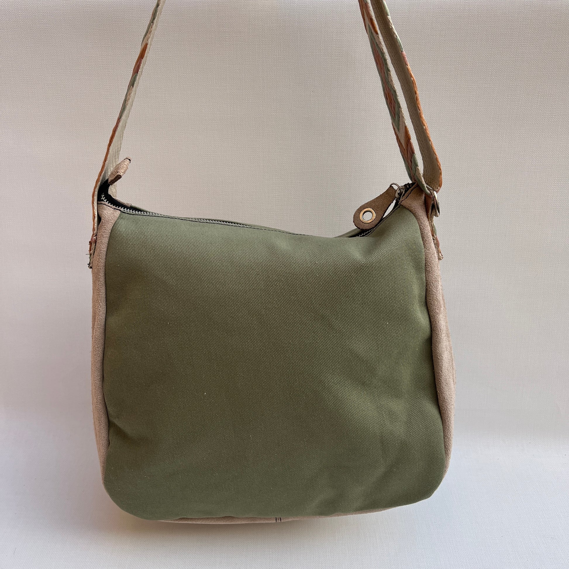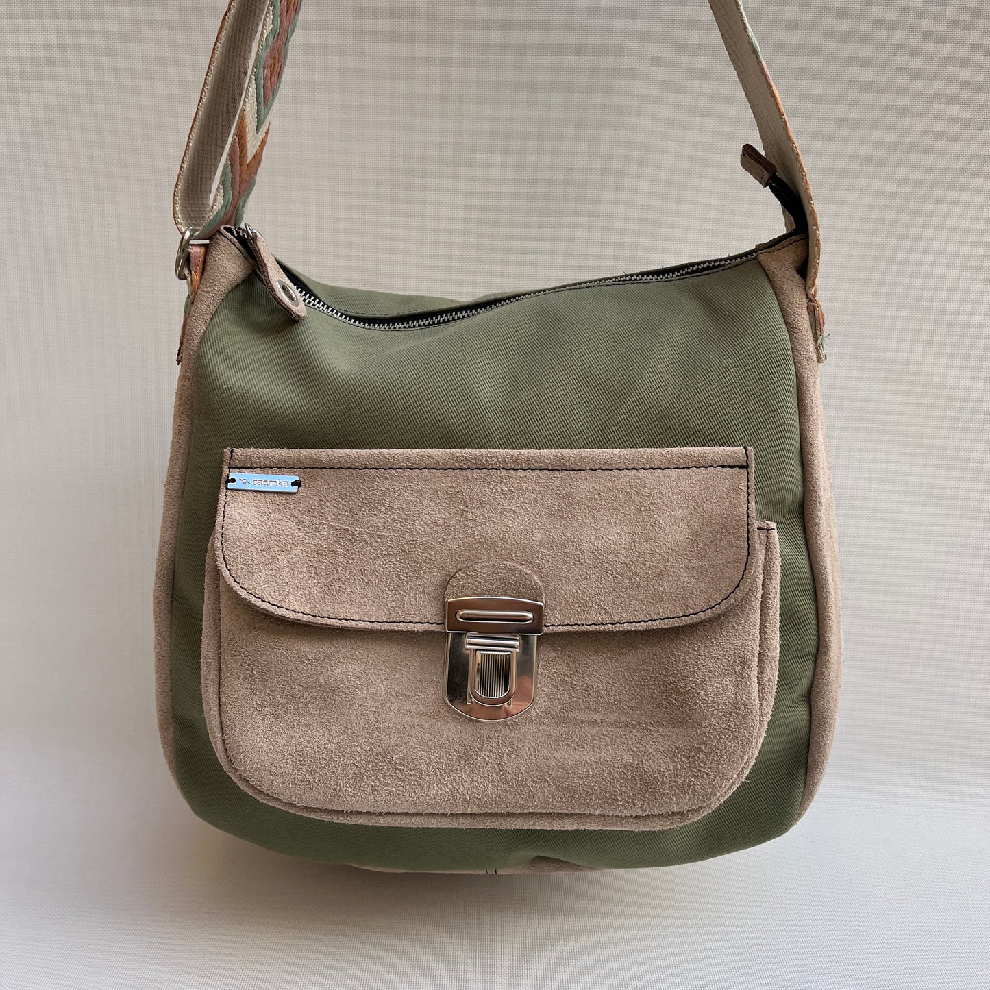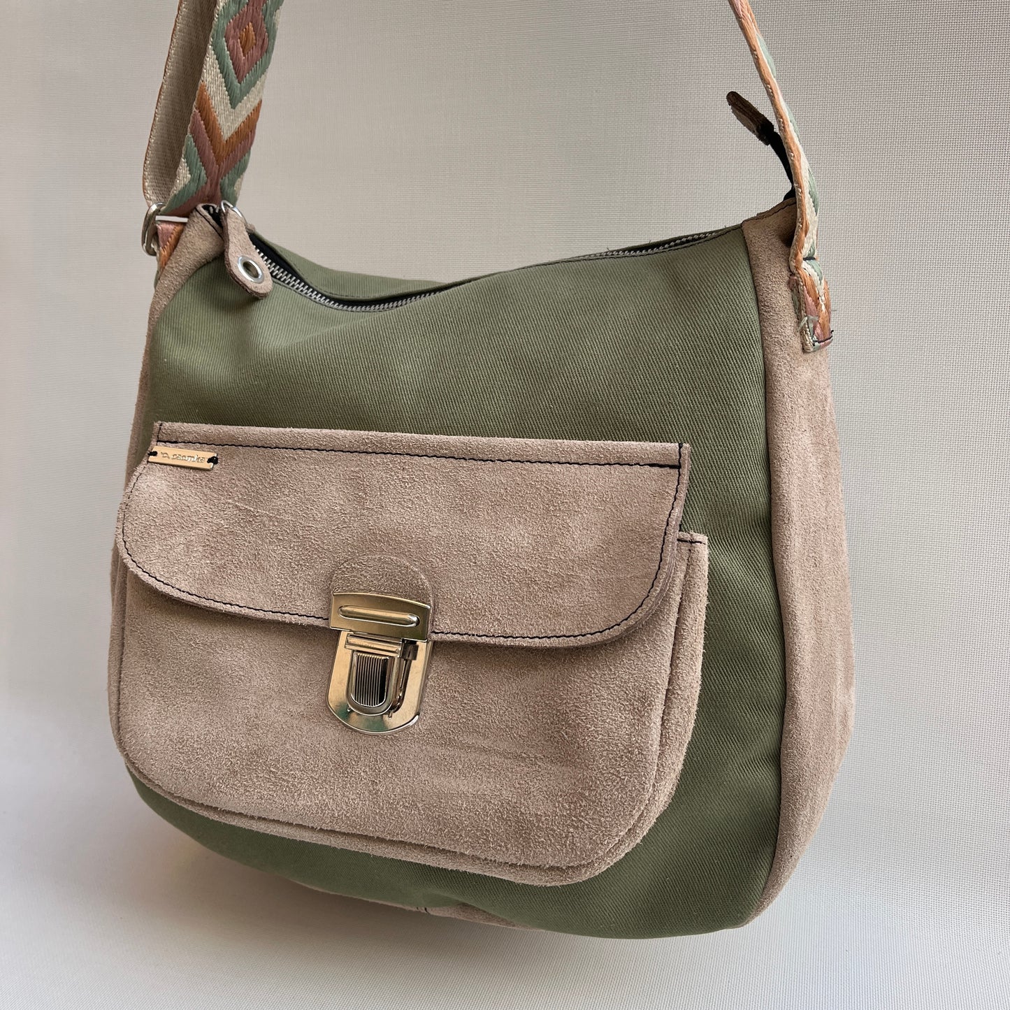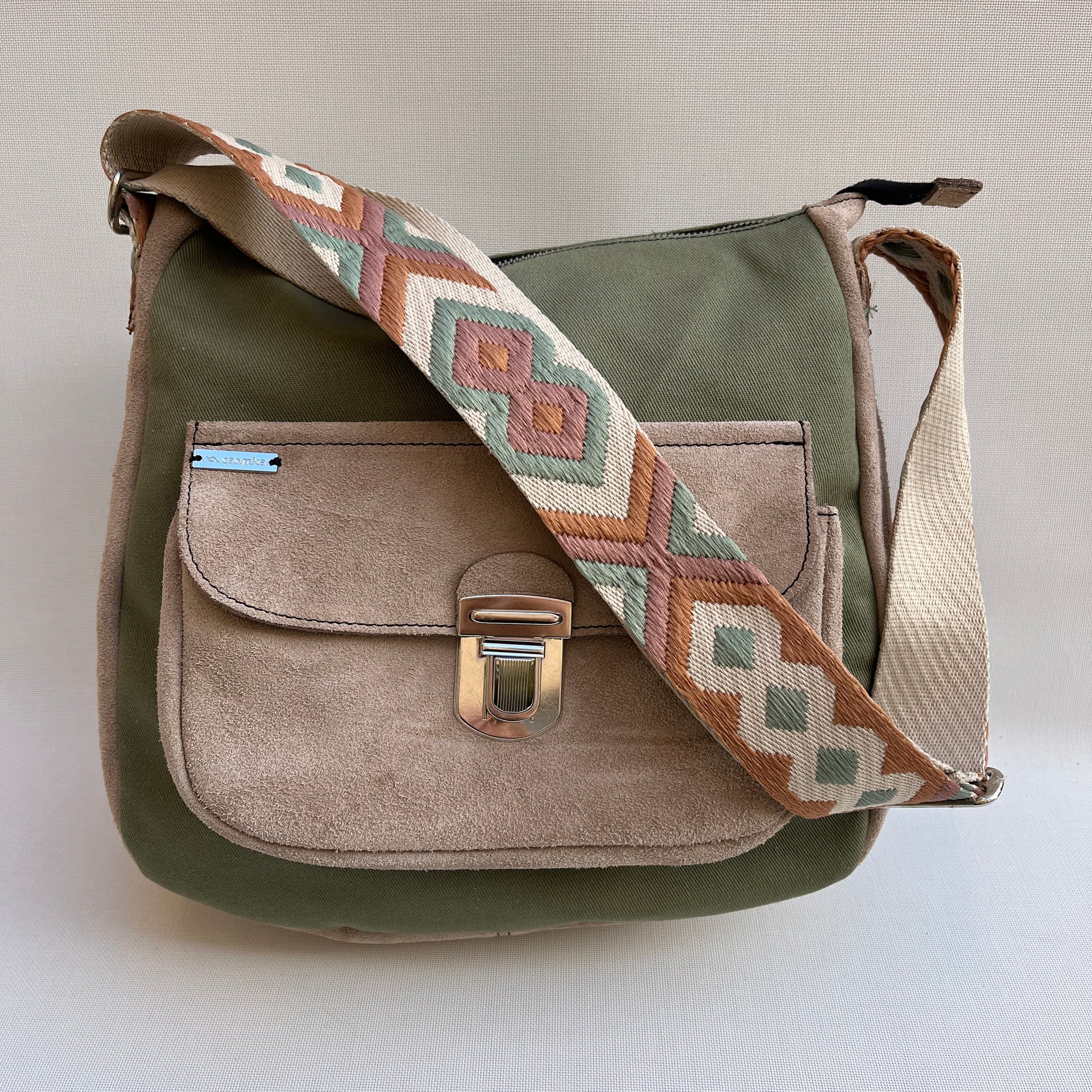 Bolso Tote Caomka confeccionado en piel natural BioCuir® piel girada (serraje) y tejido especial Caomka.