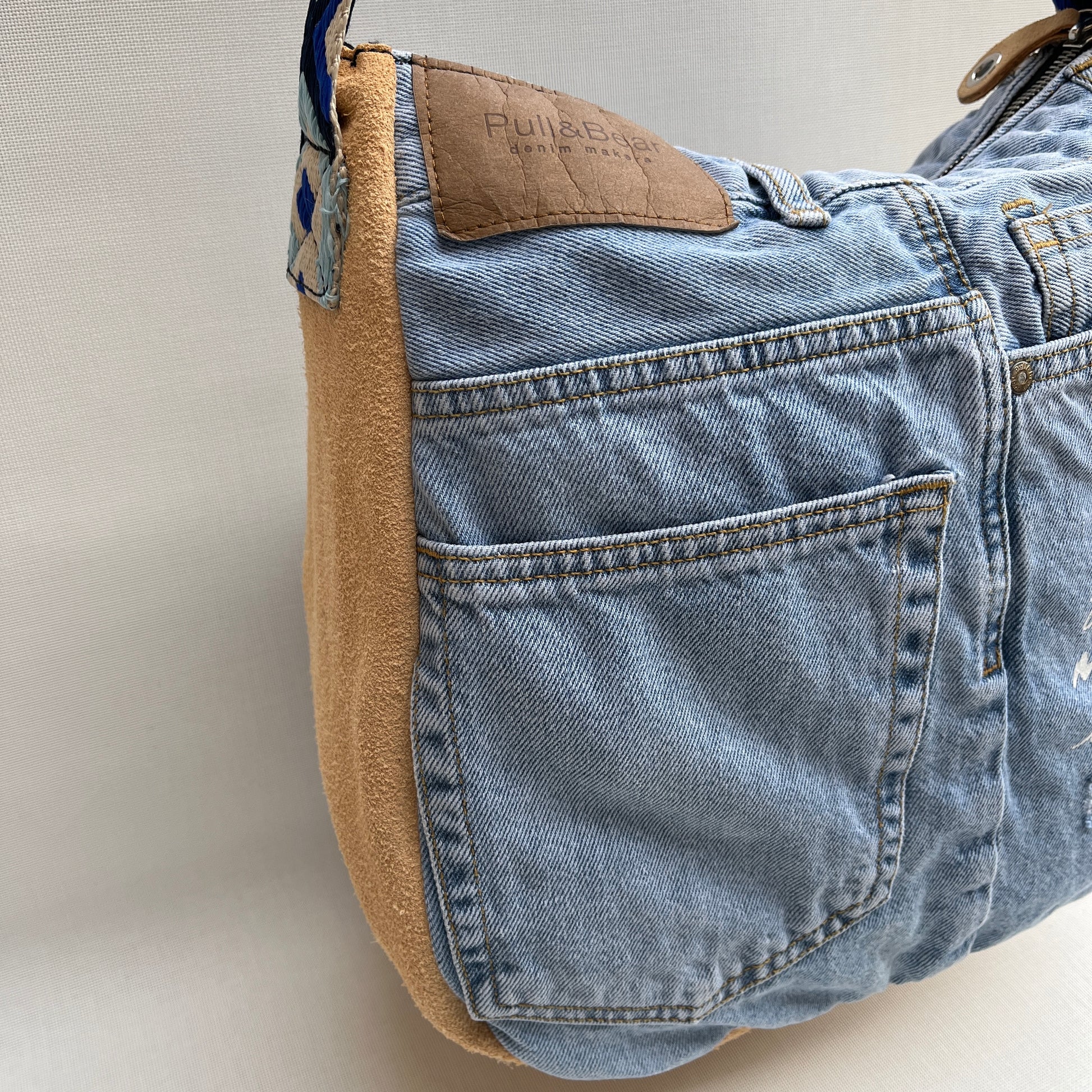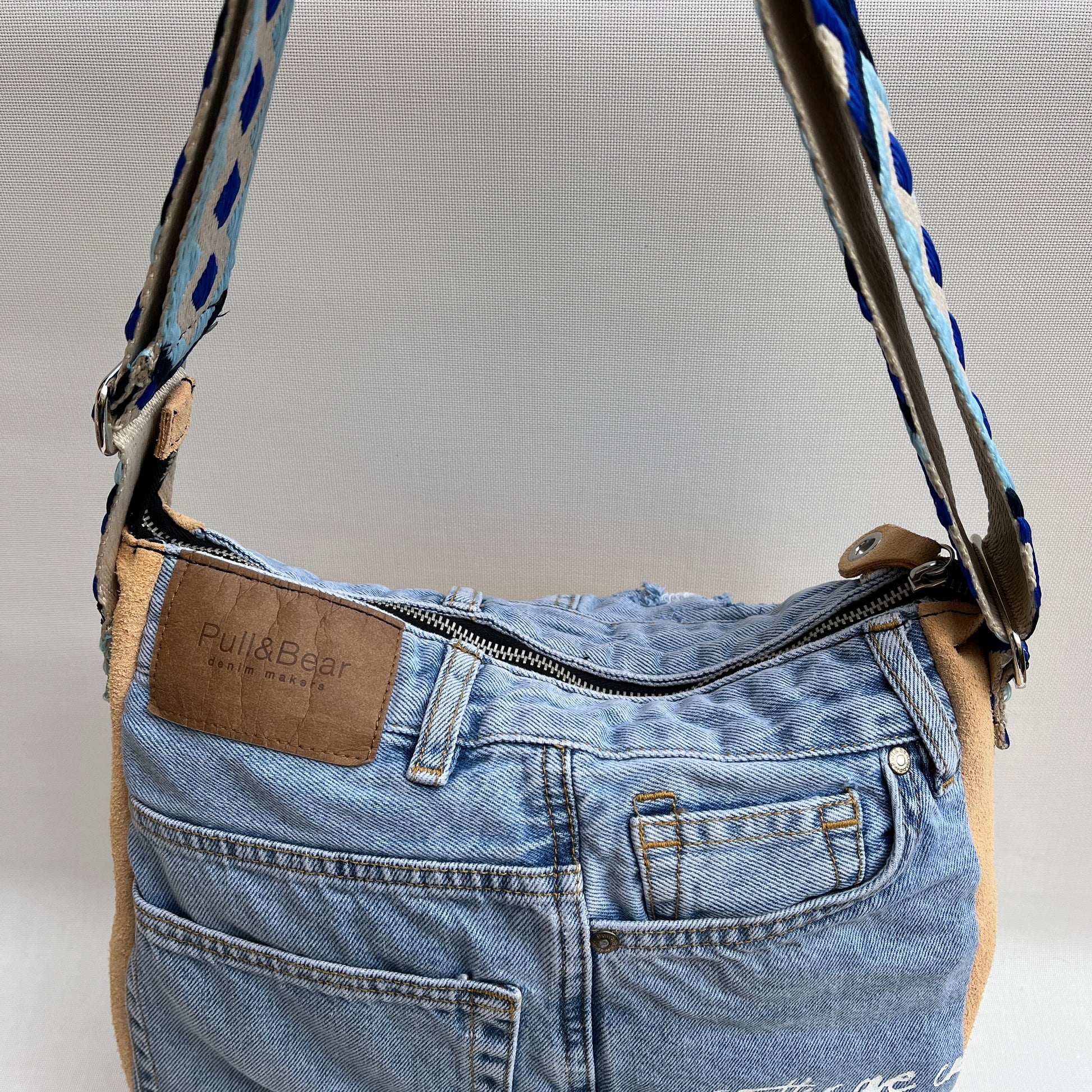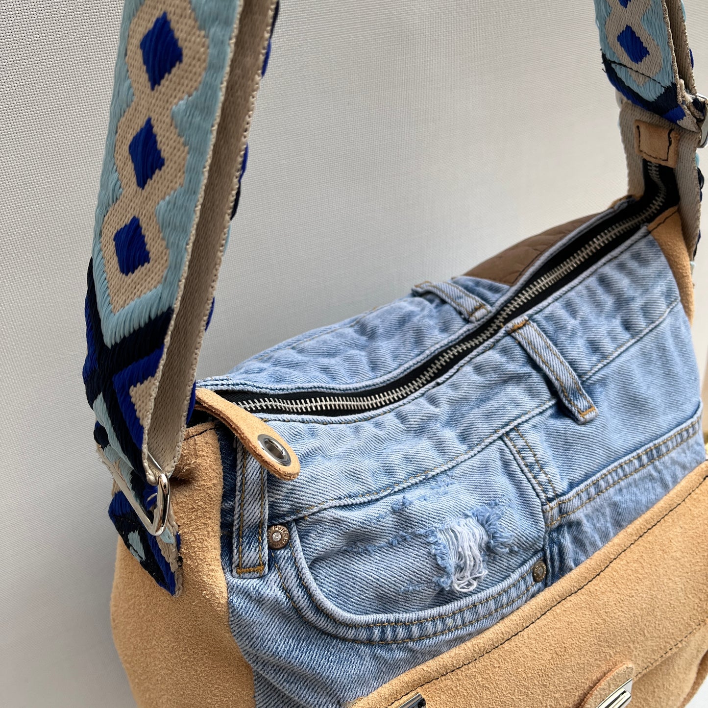 Bolso Tote Caomka confeccionado en piel natural BioCuir® piel girada (serraje) y tejido procedente de vaqueros reutilizados.