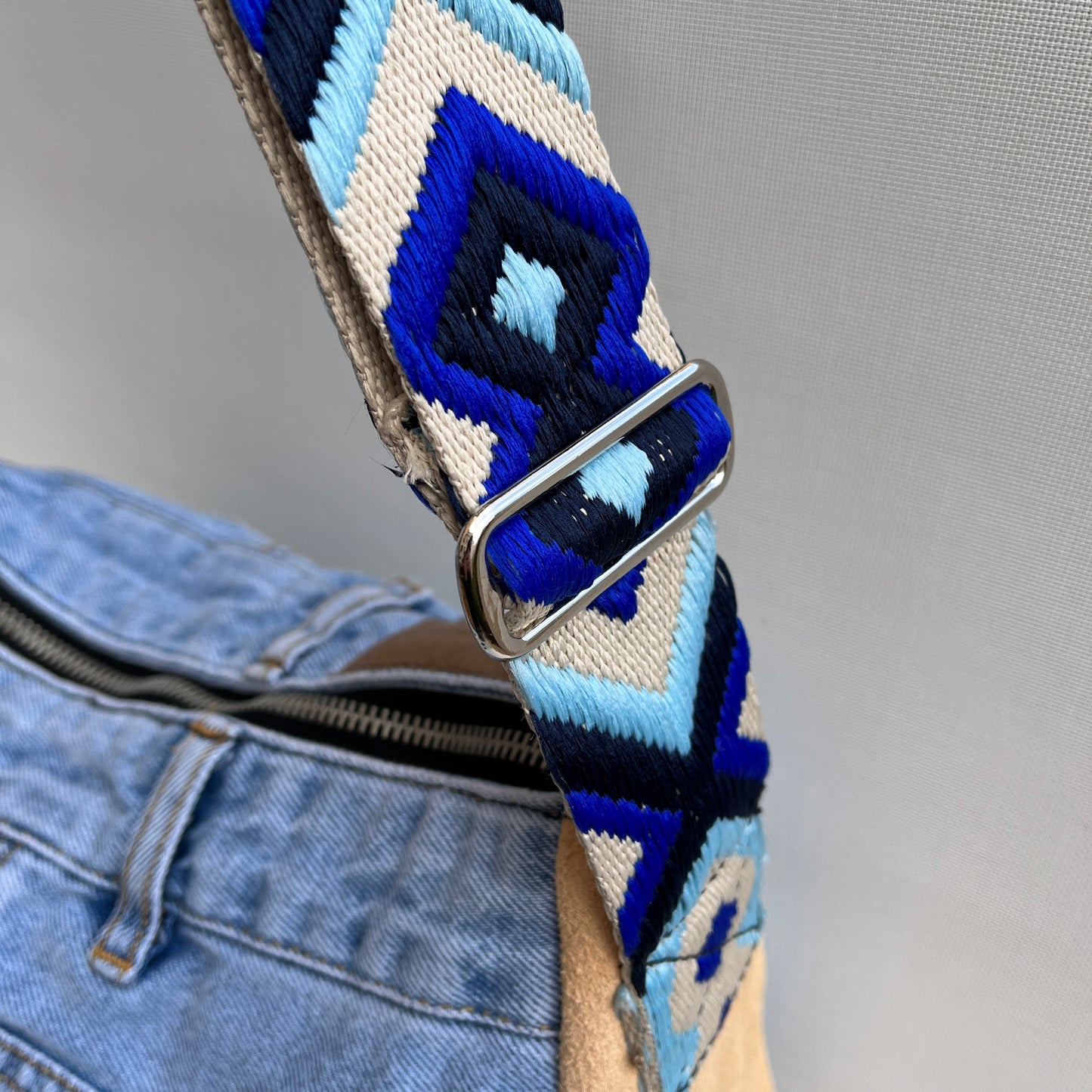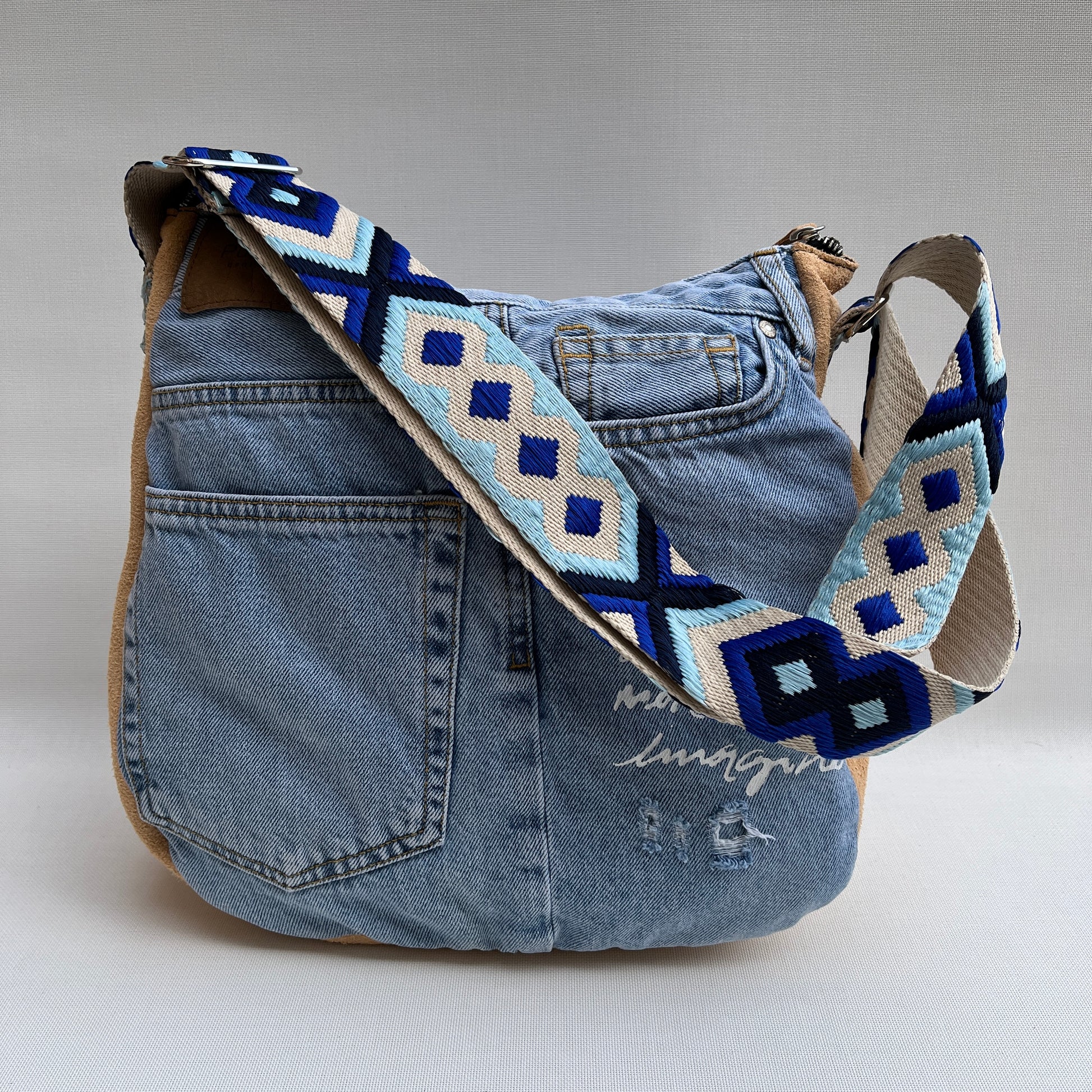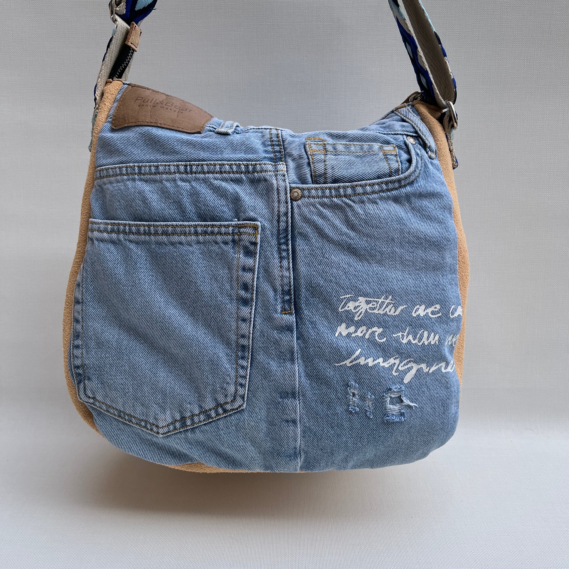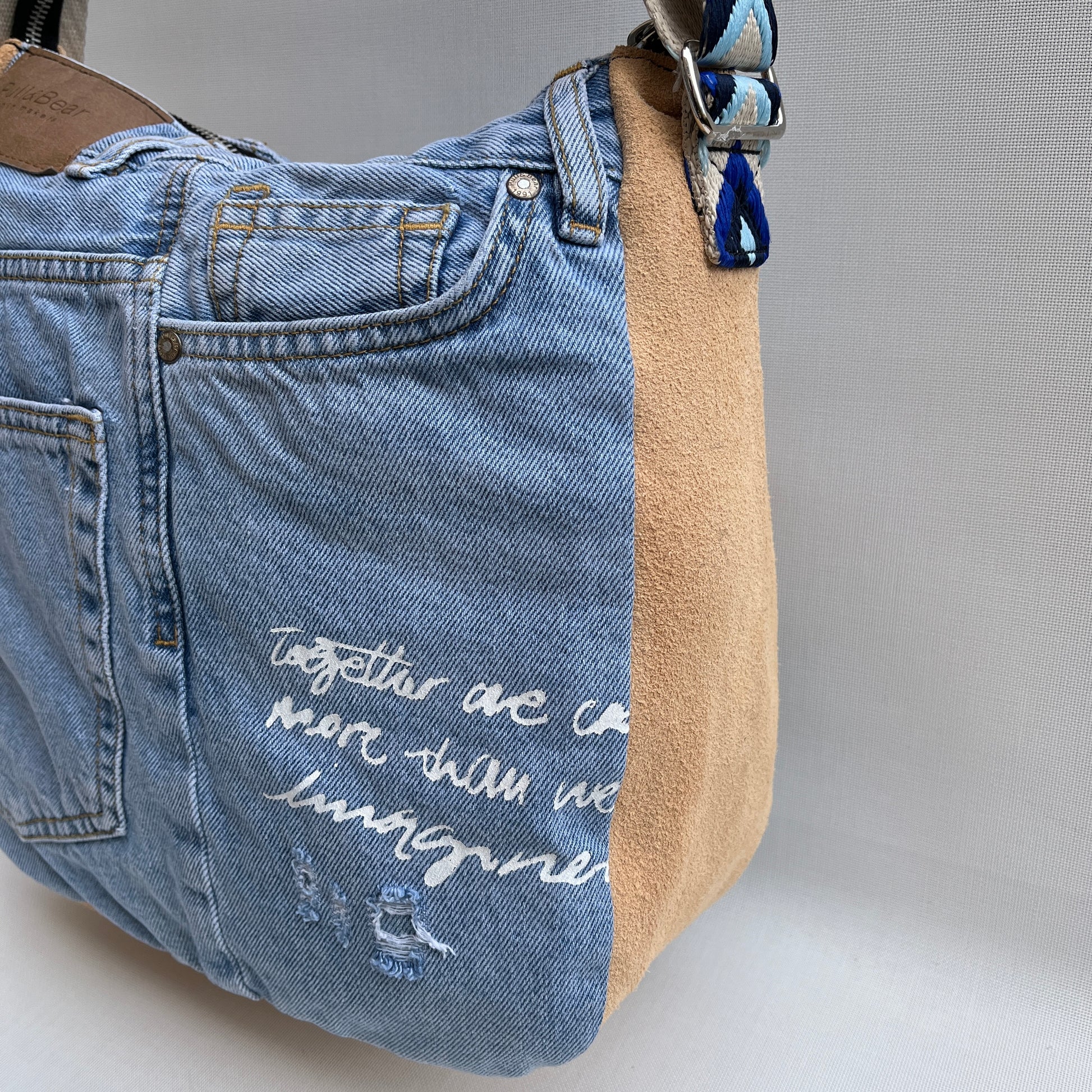 Bolso Tote Caomka confeccionado en piel natural BioCuir® piel girada (serraje) y tejido procedente de vaqueros reutilizados.