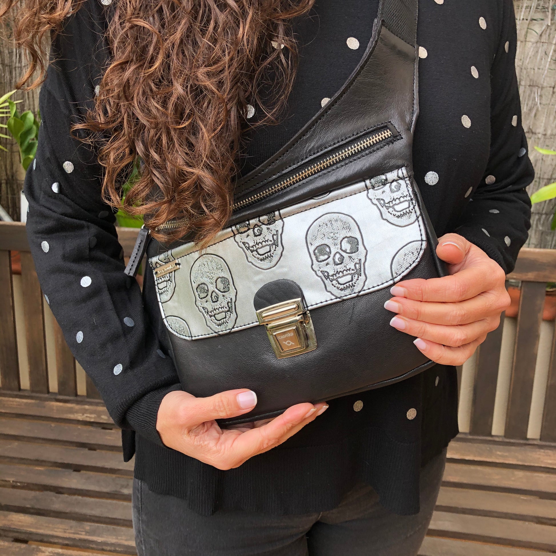 EcoFast Black Special Skulls Silver. Piel natural ECO FAST® y Polipiel. Pieza Exclusiva Núm. 6842