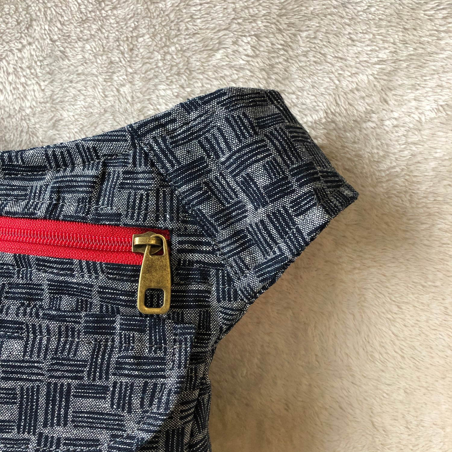 Cremallera YKK de alta calidad en color rojo con tirador DeLuxe en Oro Viejo.