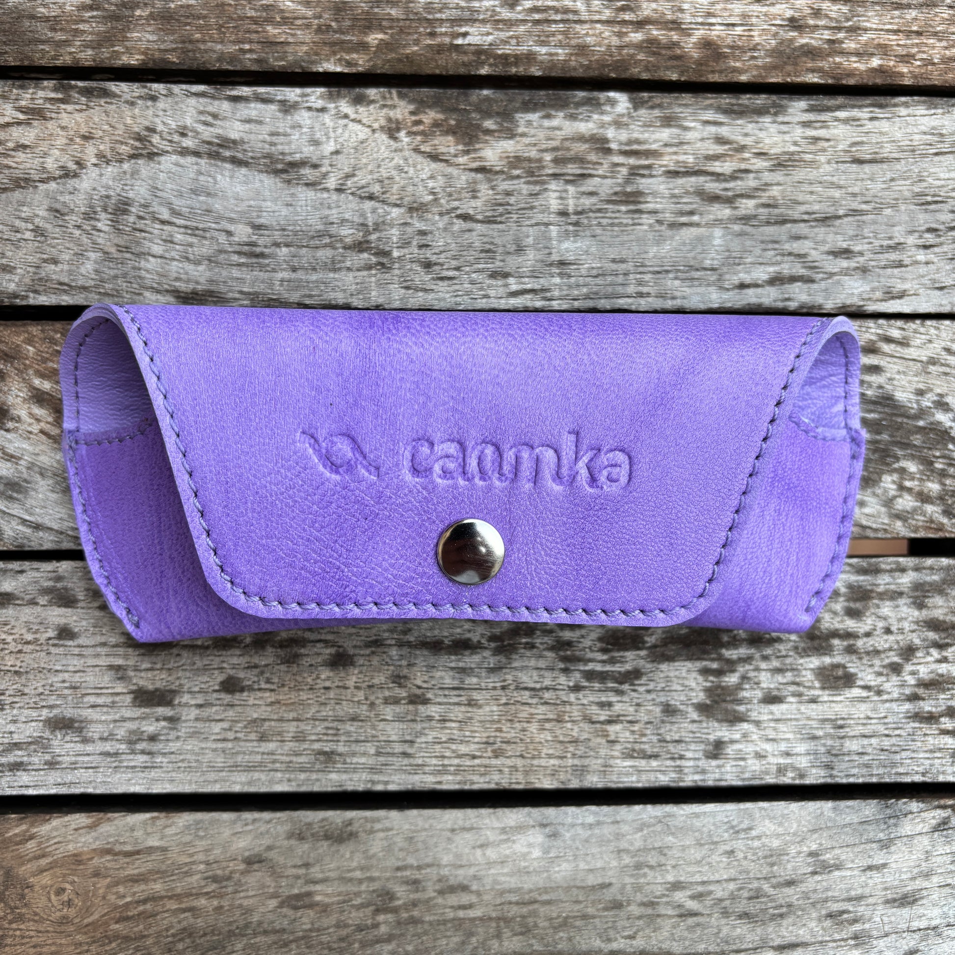 Este estuche para gafas Caomka en color lila es una pieza pensada para acompañarte cada día con estilo, comodidad y sencillez. Confeccionado artesanalmente en piel 100% genuina, protege tus gafas con suavidad y personalidad, convirtiendo un básico cotidiano en un pequeño lujo funcional.