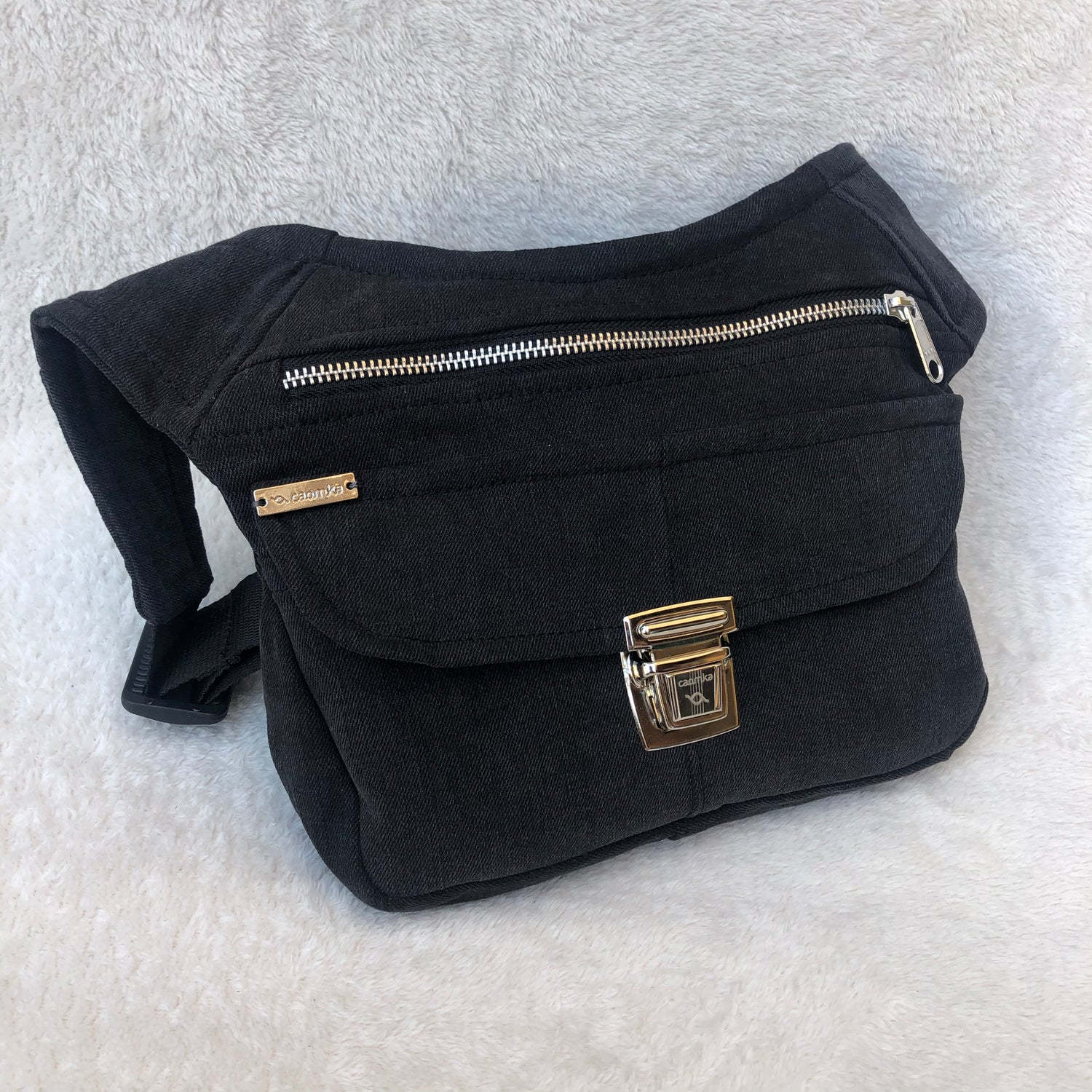 Bolso de Cadera multifunción (Riñonera - Bolso - Bandolera) en tela vaquera reciclada y resistente.