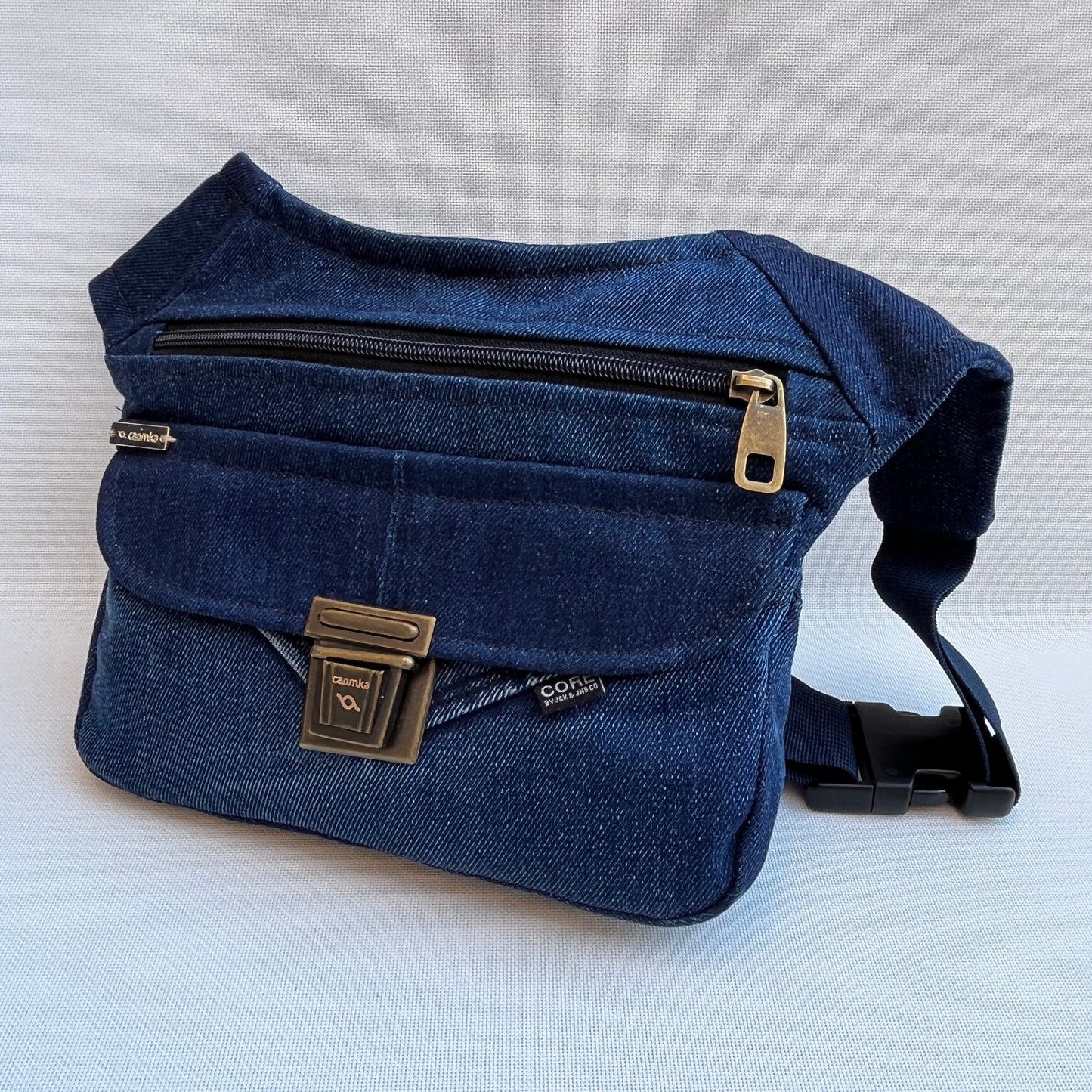Bolso de Cadera multifunción (Riñonera - Bolso - Bandolera) en tela vaquera reciclada y resistente.
