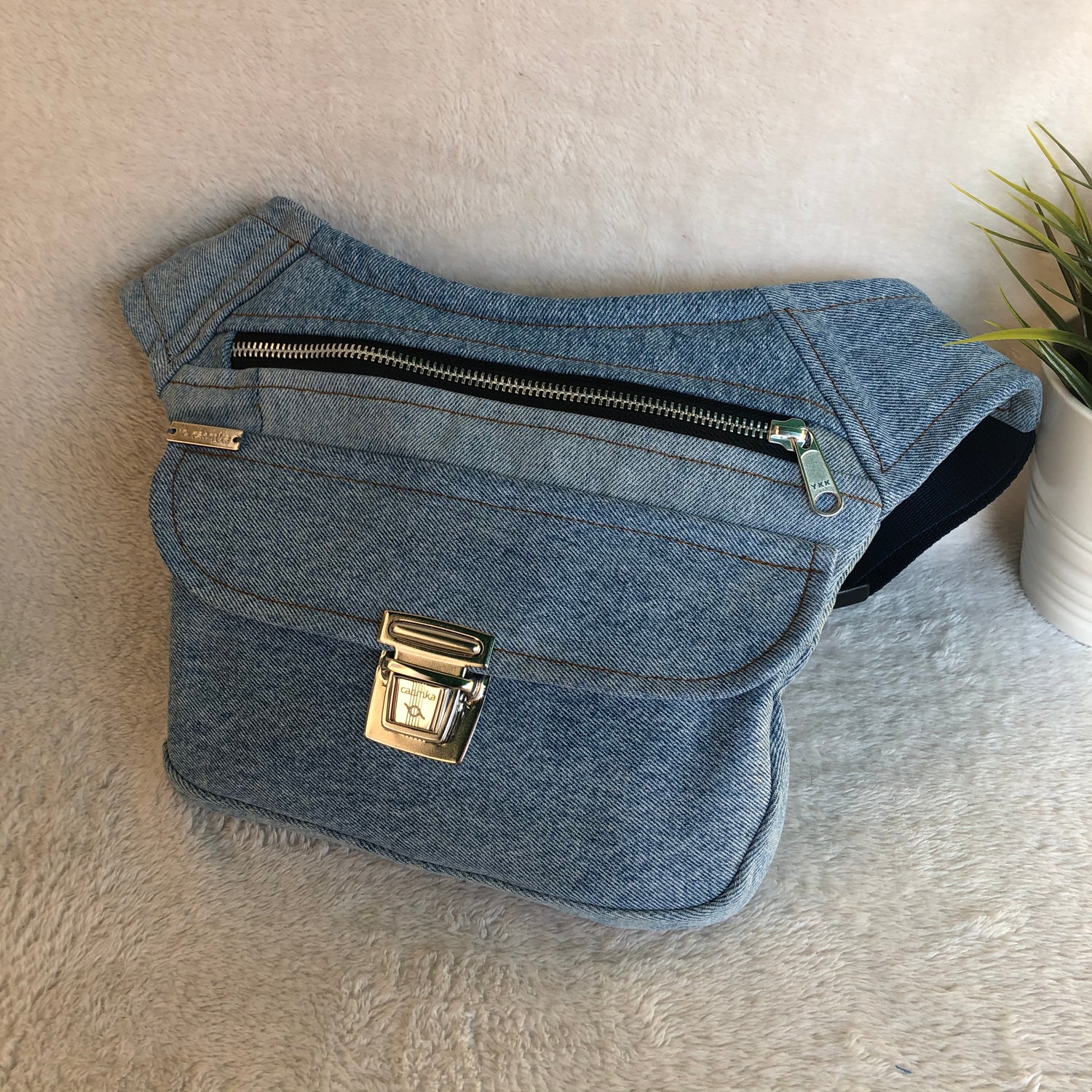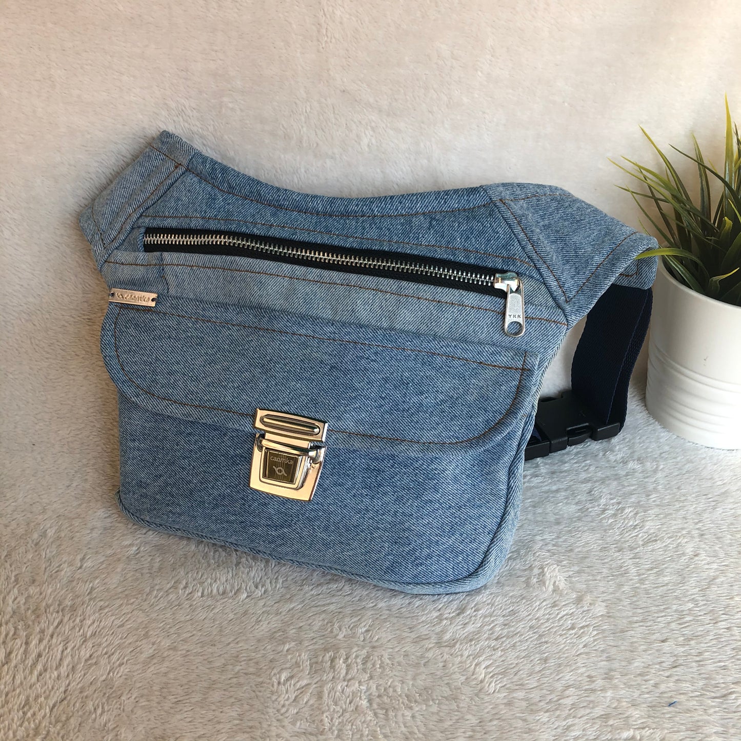 Bolso de Cadera multifunción (Riñonera - Bolso - Bandolera) en tela vaquera reciclada y resistente.