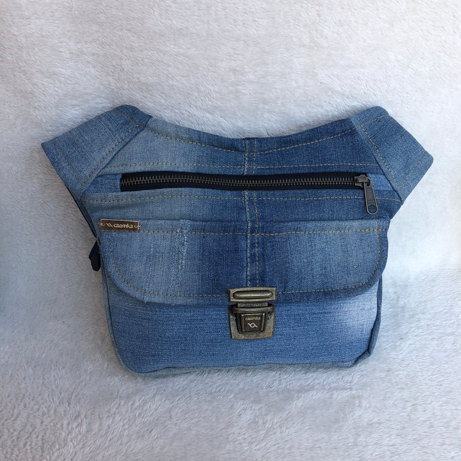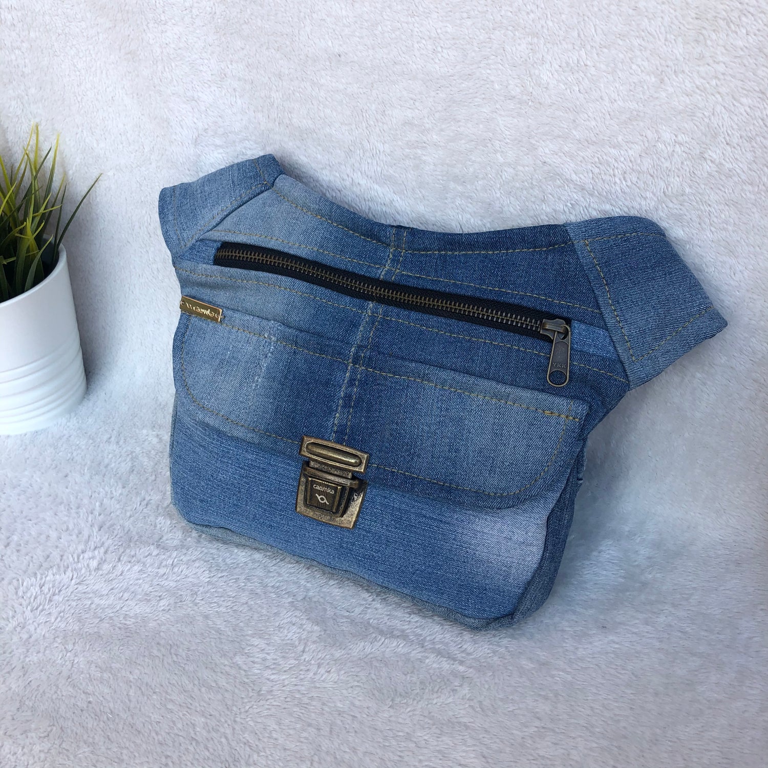 Bolso de Cadera multifunción (Riñonera - Bolso - Bandolera) en tela vaquera reciclada y resistente.
