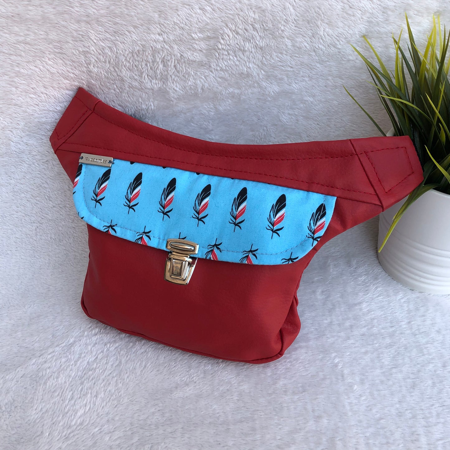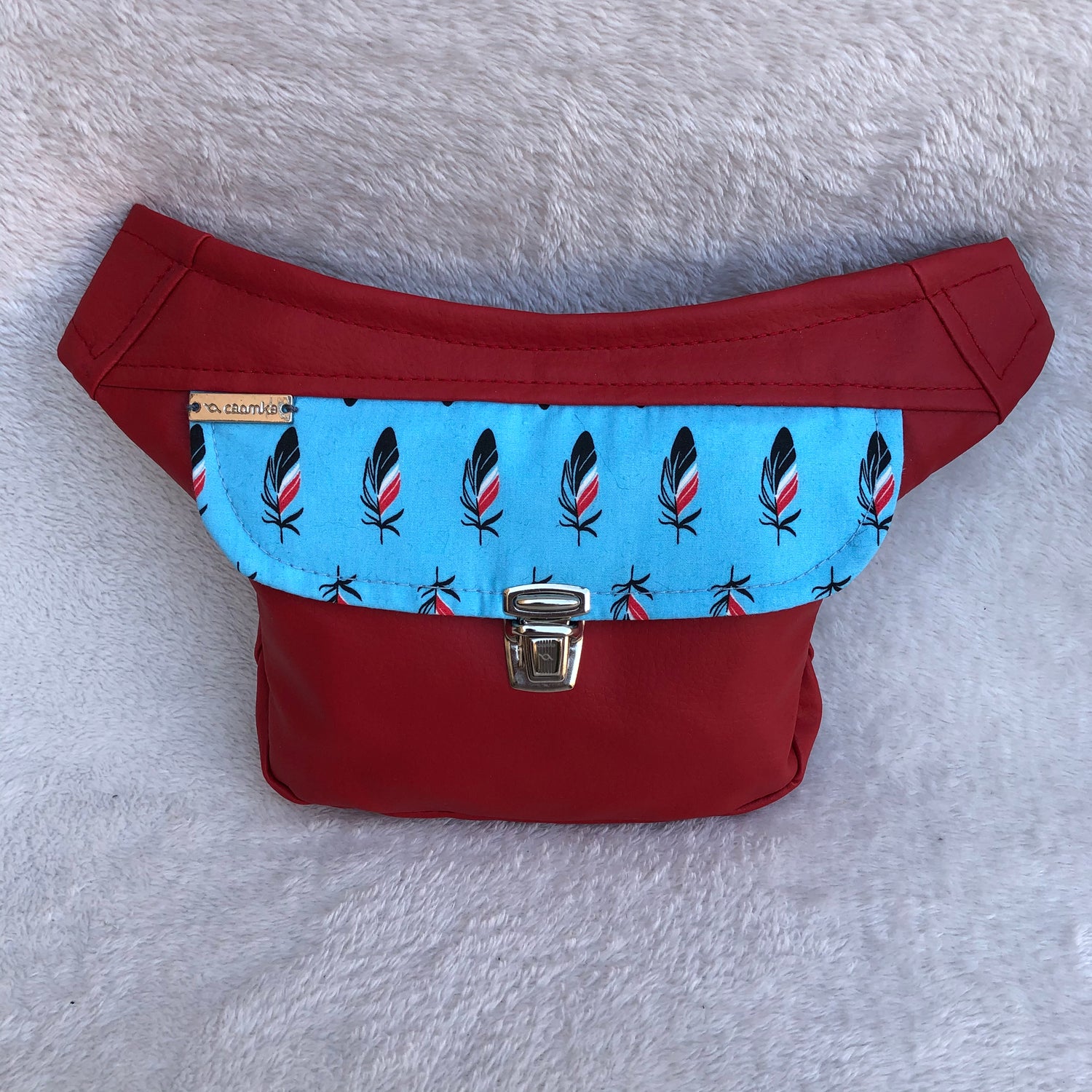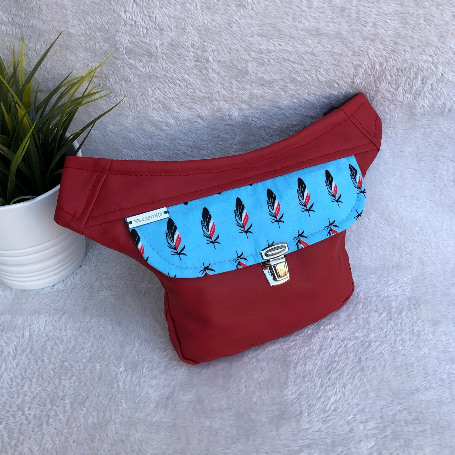 Mini Bolso de Cadera multifunción (Riñonera - Bolso - Bandolera) en tela exclusiva y resistente en diseño: "Plumas" Especial para Niño/a.
