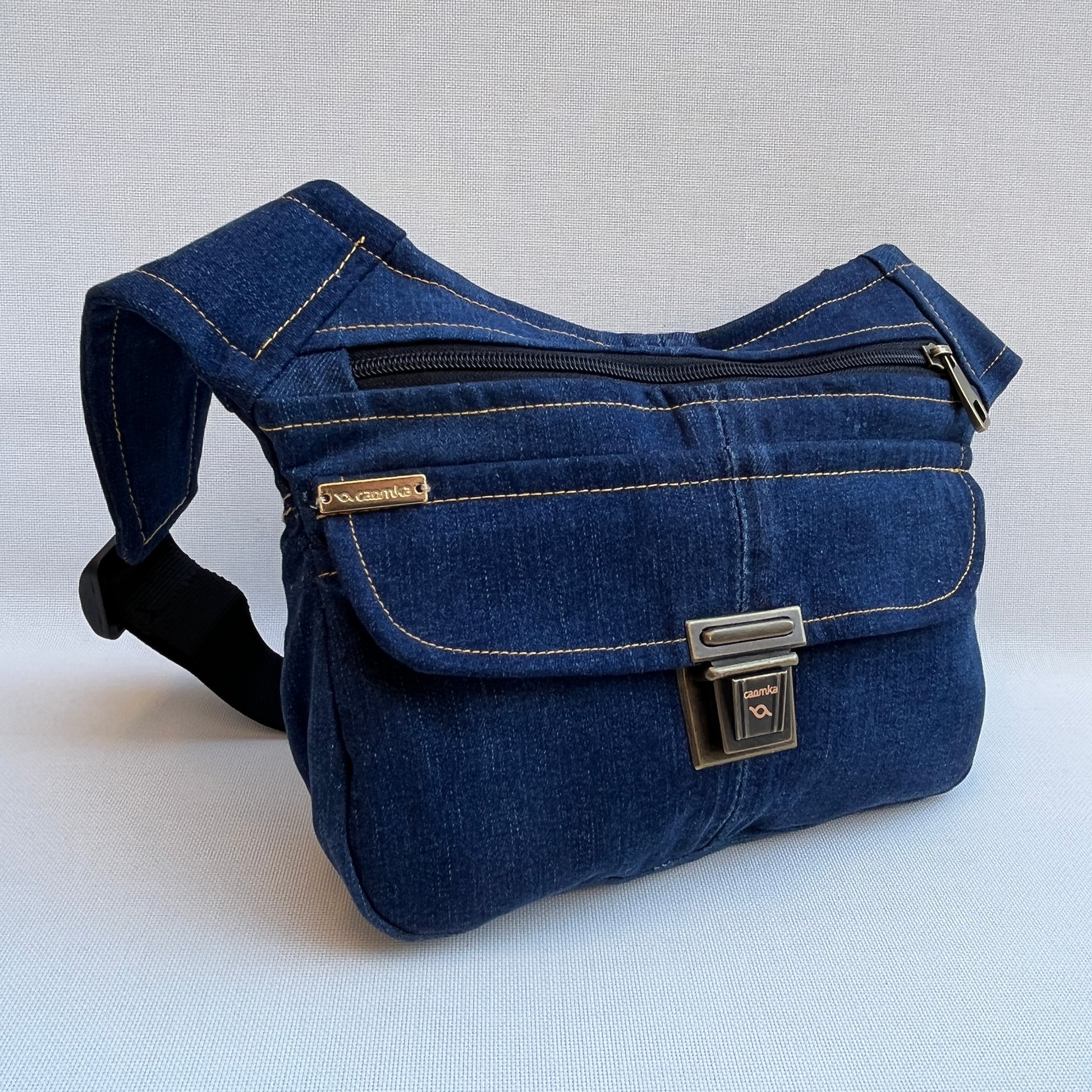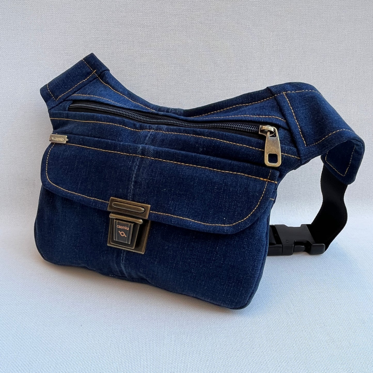 Bolso de Cadera multifunción (Riñonera - Bolso - Bandolera) en tela vaquera reciclada y resistente.