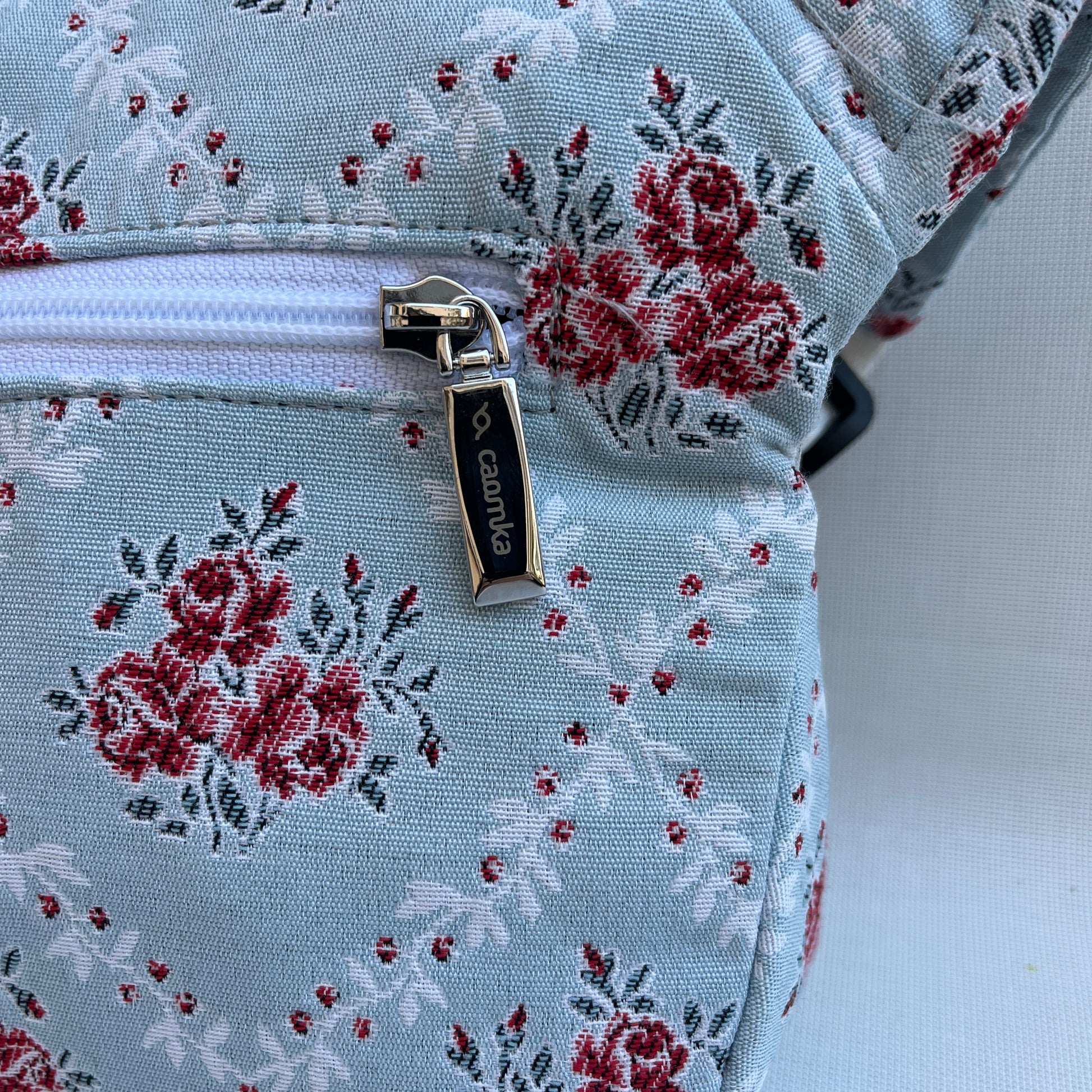 Cremallera YKK de alta calidad en color blanco con tirador Caomka en Plata.