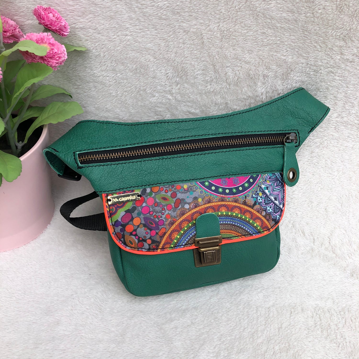Mini Special Green MANDALAS & Old Gold · Piel natural BioCuir® Pieza Única Núm. 9282