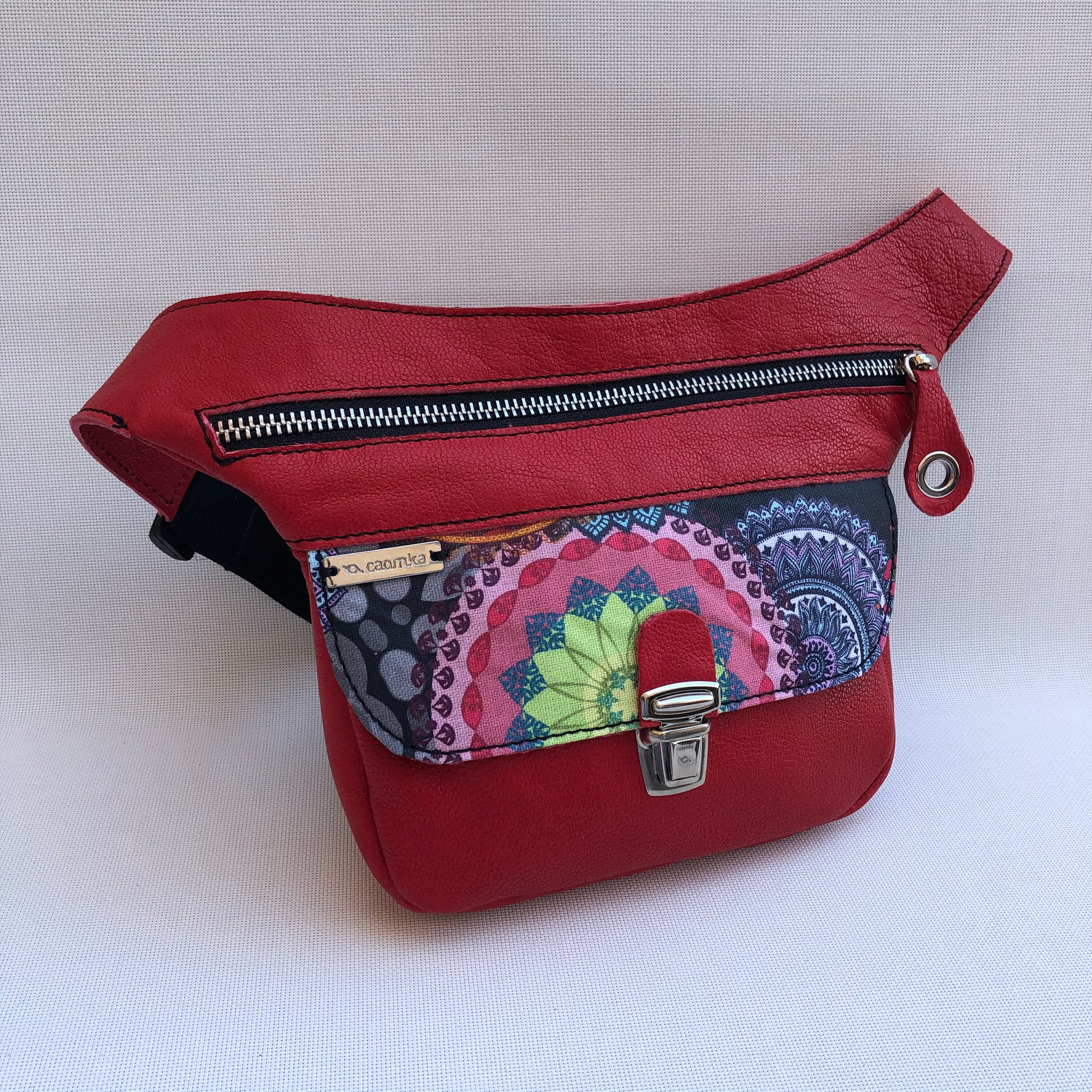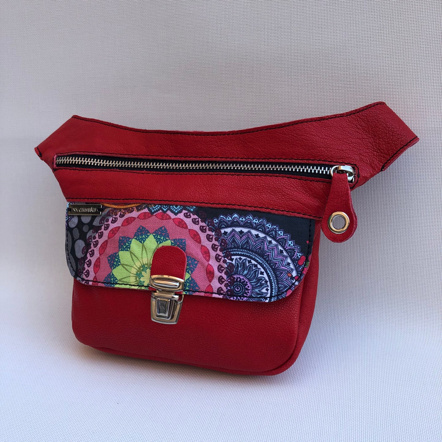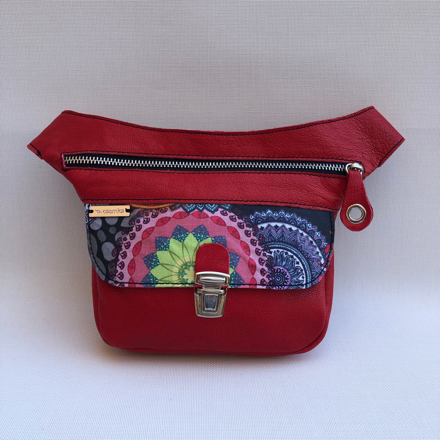 Mini Special Mandalas Red & Silver · Piel natural BioCuir® · Pieza Única Núm. 9594