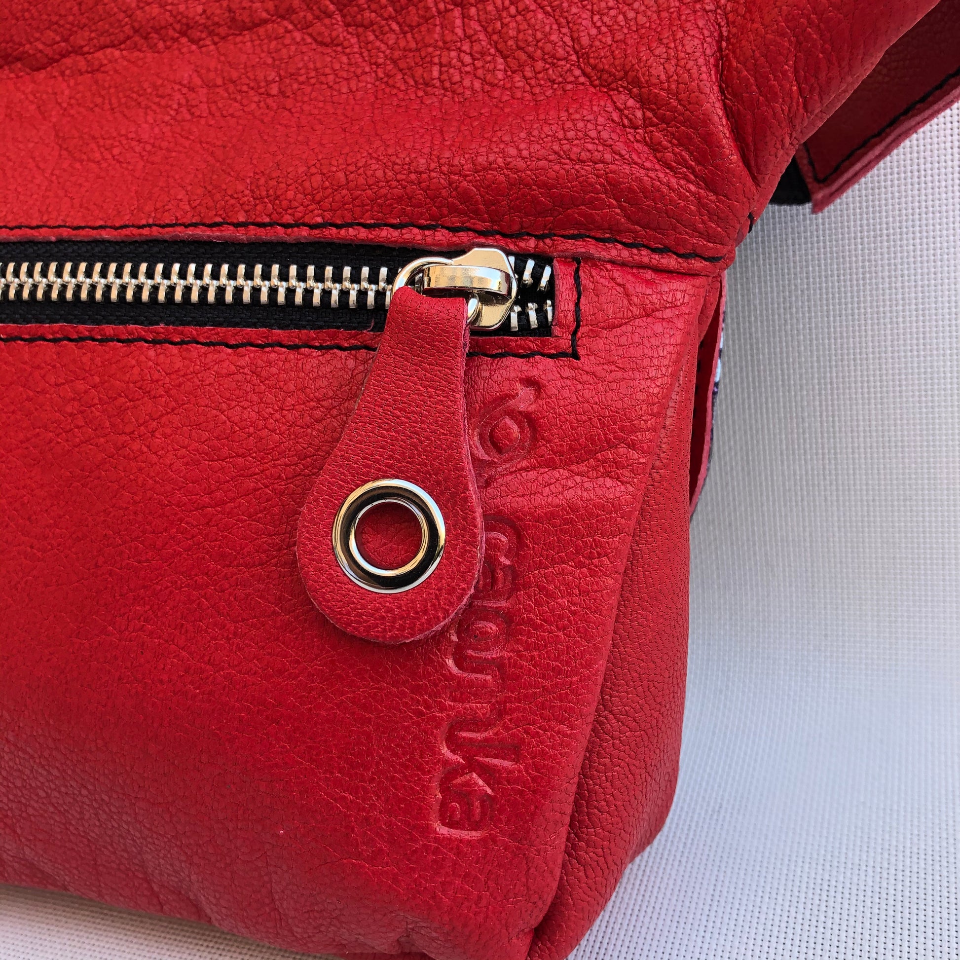Bolsillo extra trasero (15cm) con cremallera color Plata y tirador de piel.