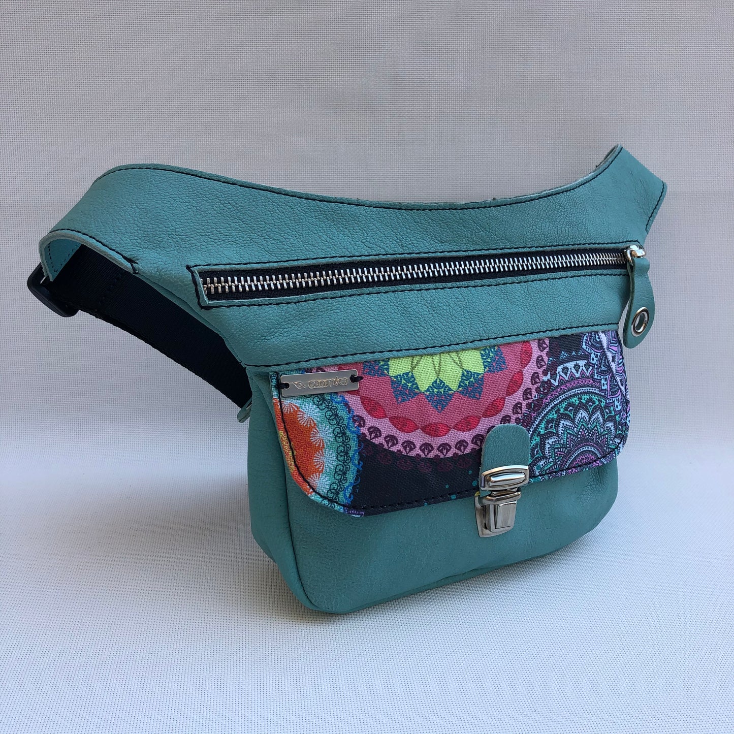 Mini Special Mandalas Turquesa & Silver · Piel natural BioCuir® · Pieza Única Núm. 9599