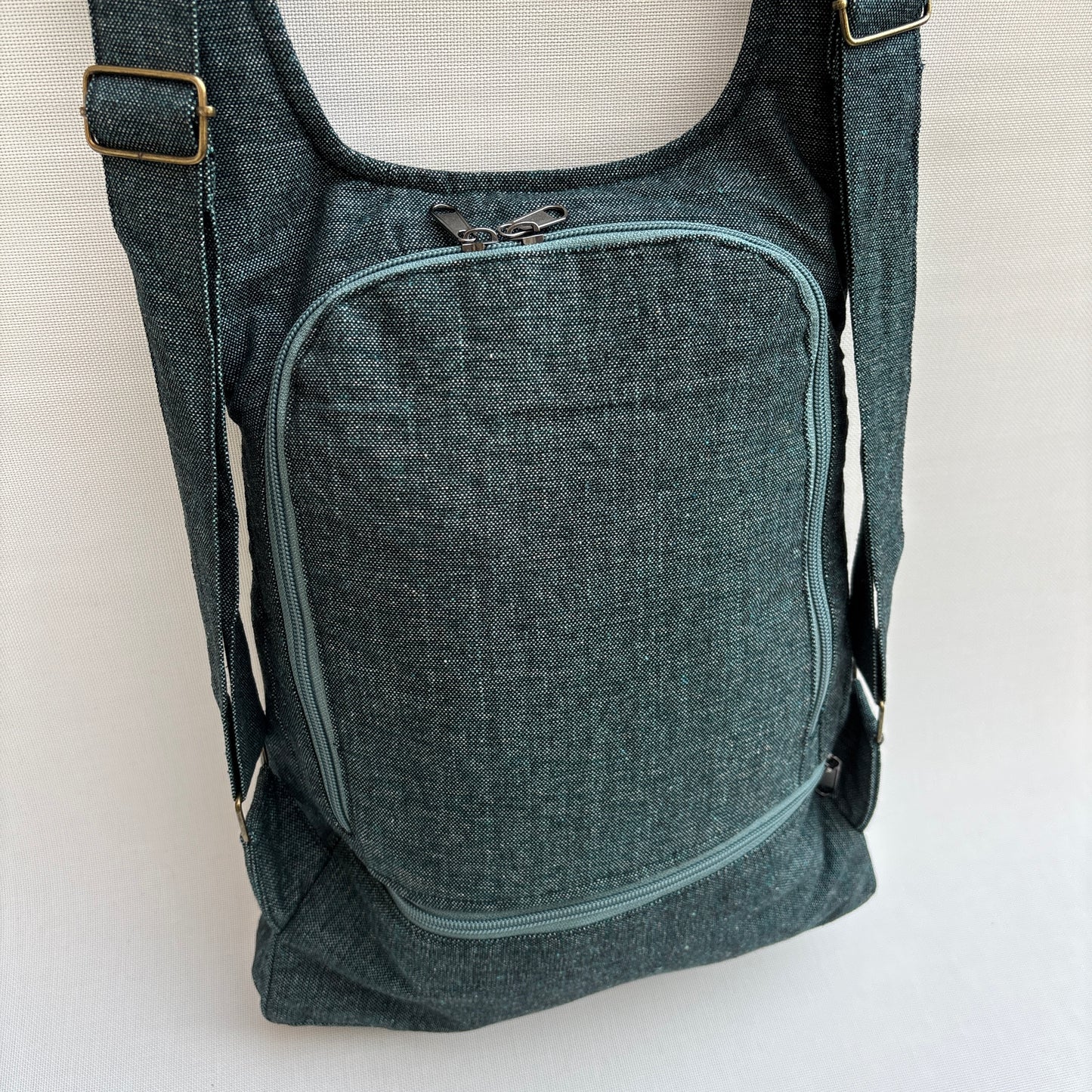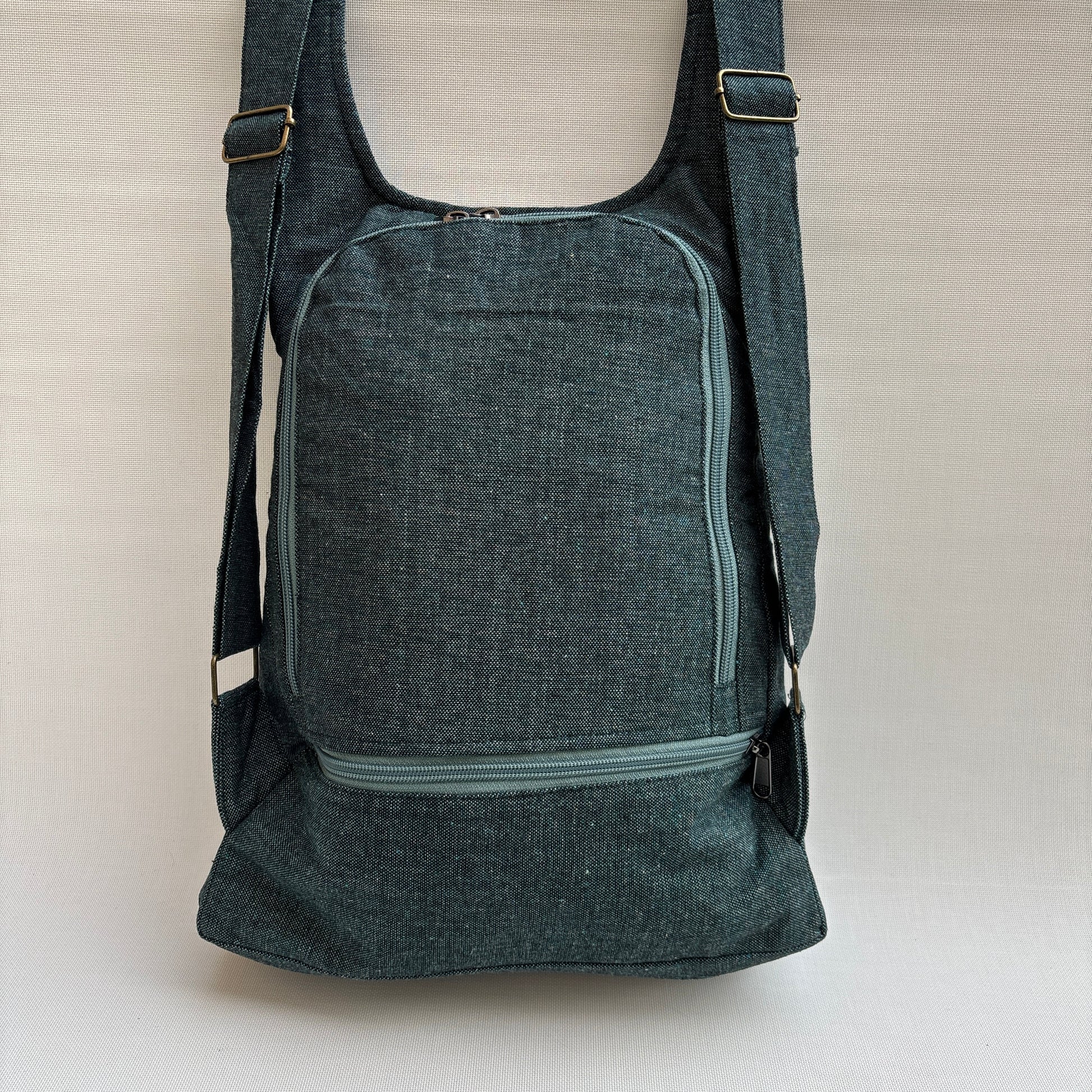 Mochila confeccionada a mano en Kathmandú, Nepal, con las mejores lana y algodones locales y tintados de manera artesanal con tintes naturales.