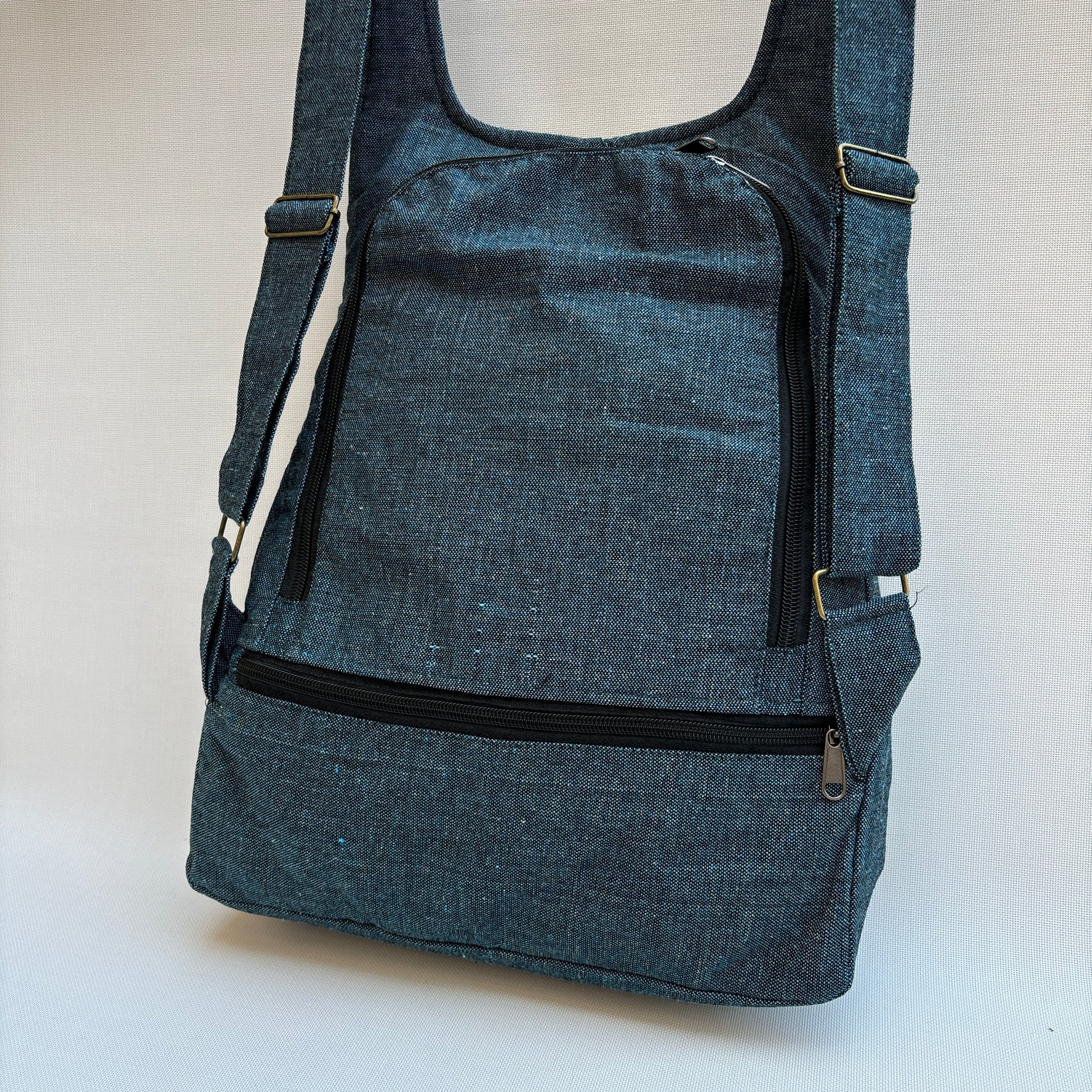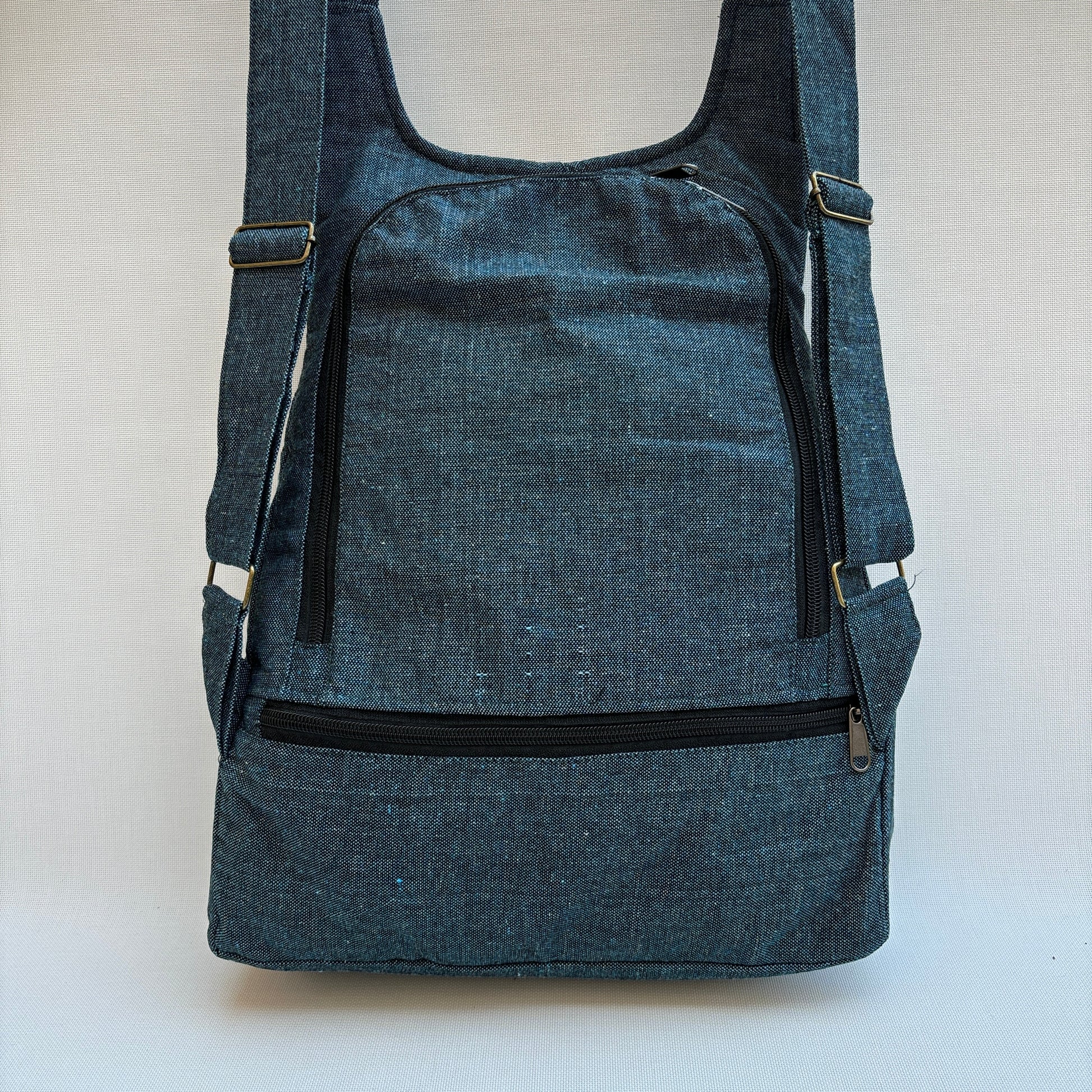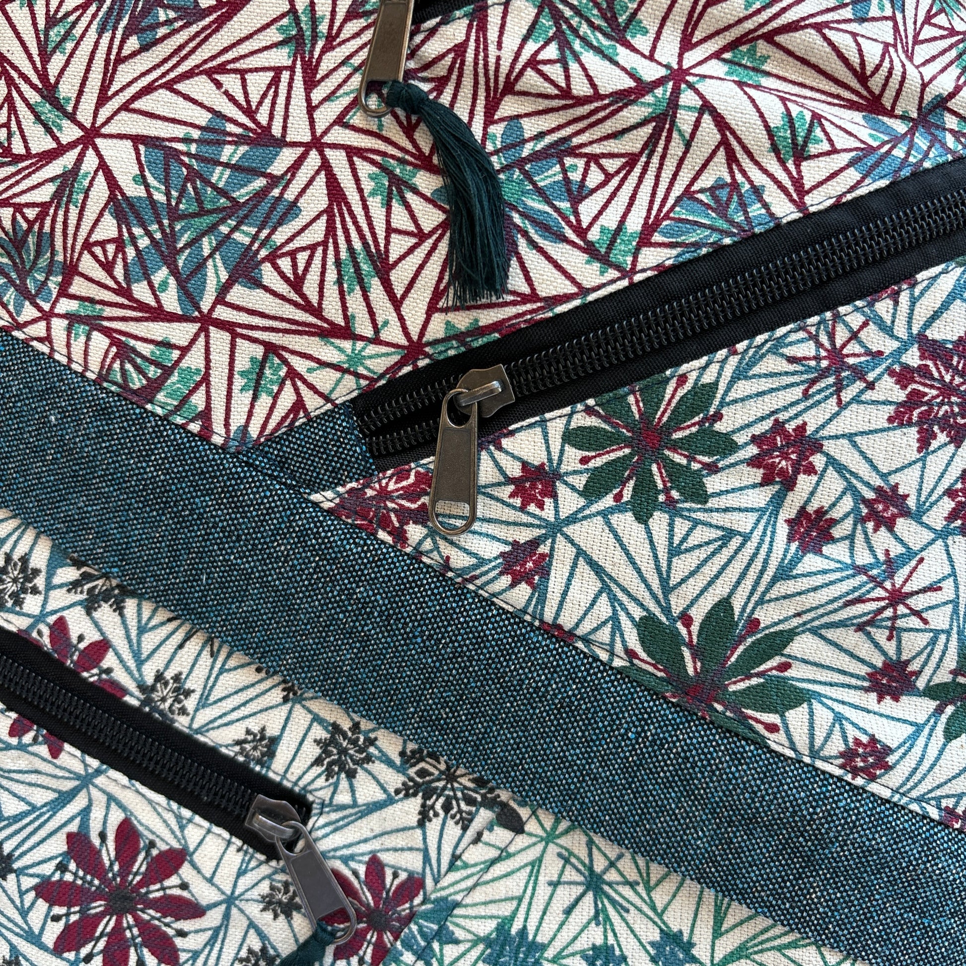 Mochila confeccionada a mano en Kathmandú, Nepal, con las mejores lanas y algodones locales y tintados de manera artesanal con tintes naturales.
