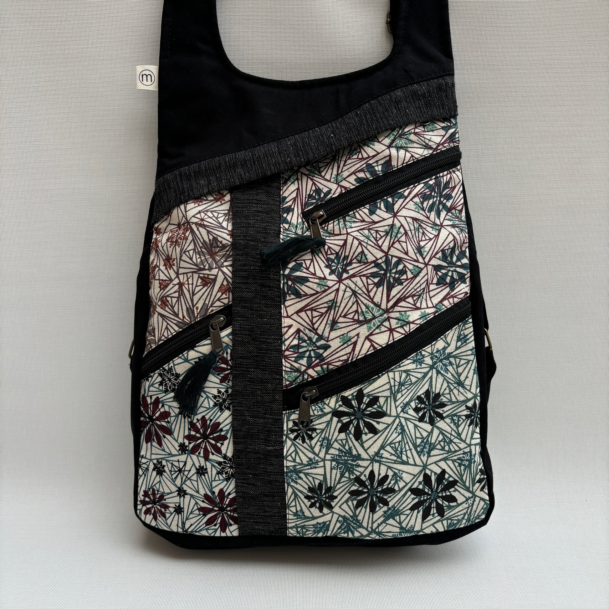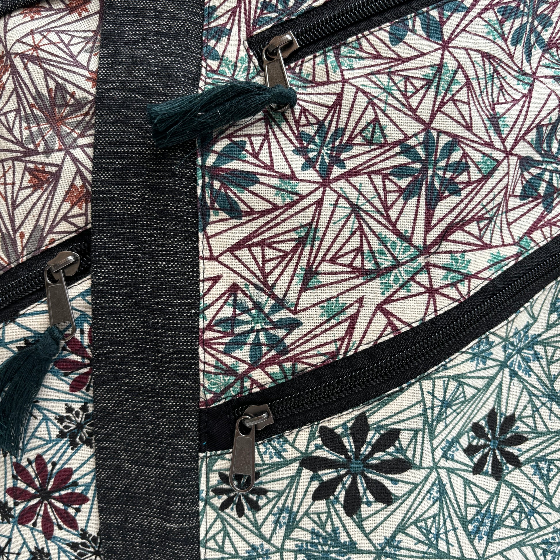 Mochila confeccionada a mano en Kathmandú, Nepal, con las mejores lanas y algodones locales y tintados de manera artesanal con tintes naturales.