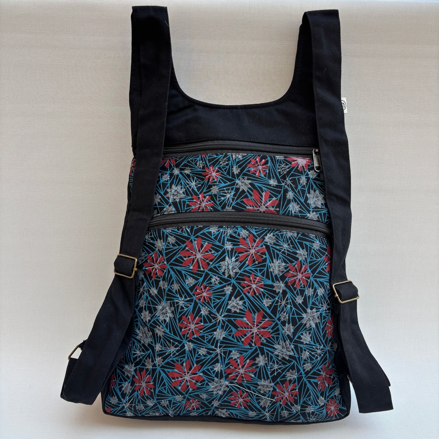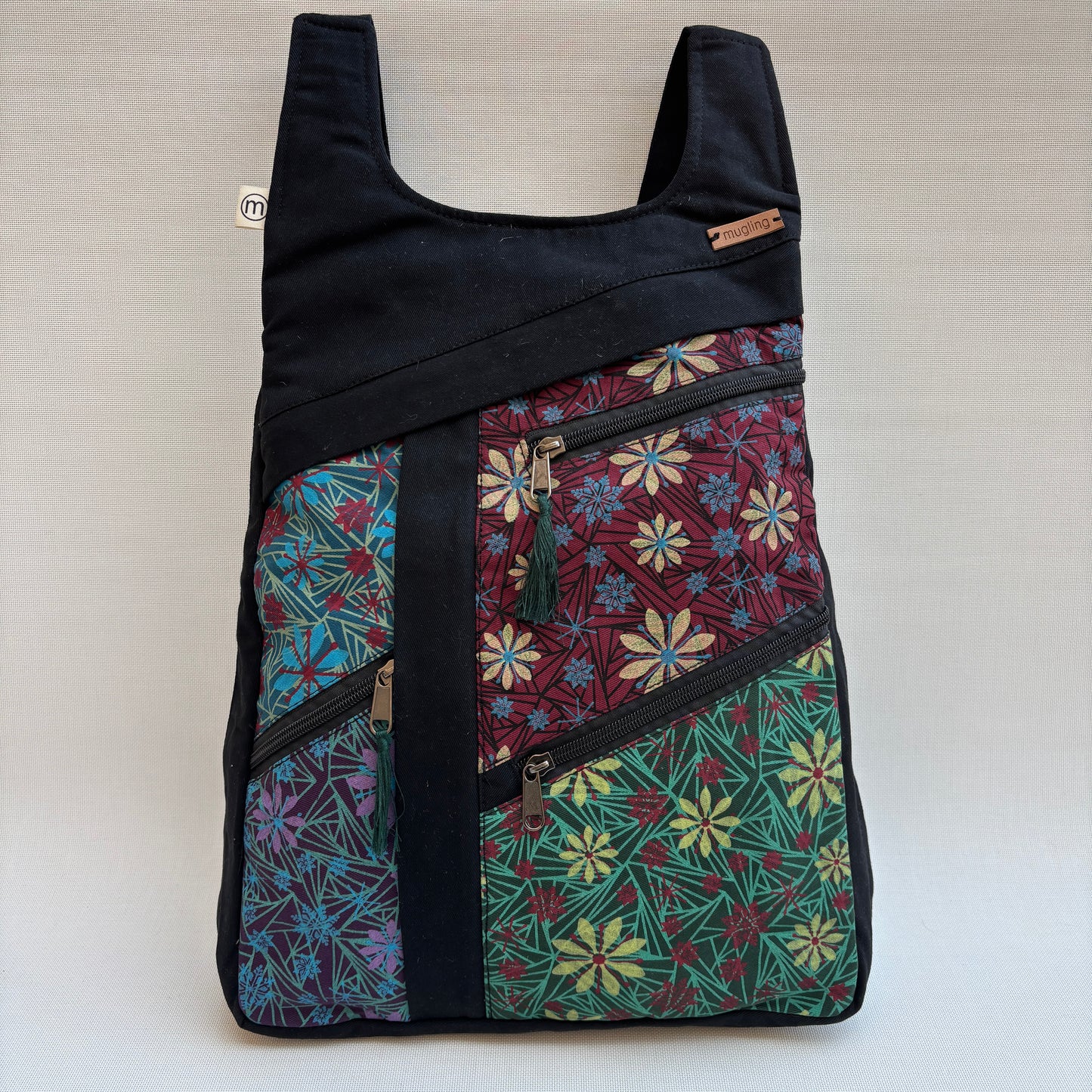 Mochila confeccionada a mano en Kathmandú, Nepal, con las mejores lanas y algodones locales y tintados de manera artesanal con tintes naturales.