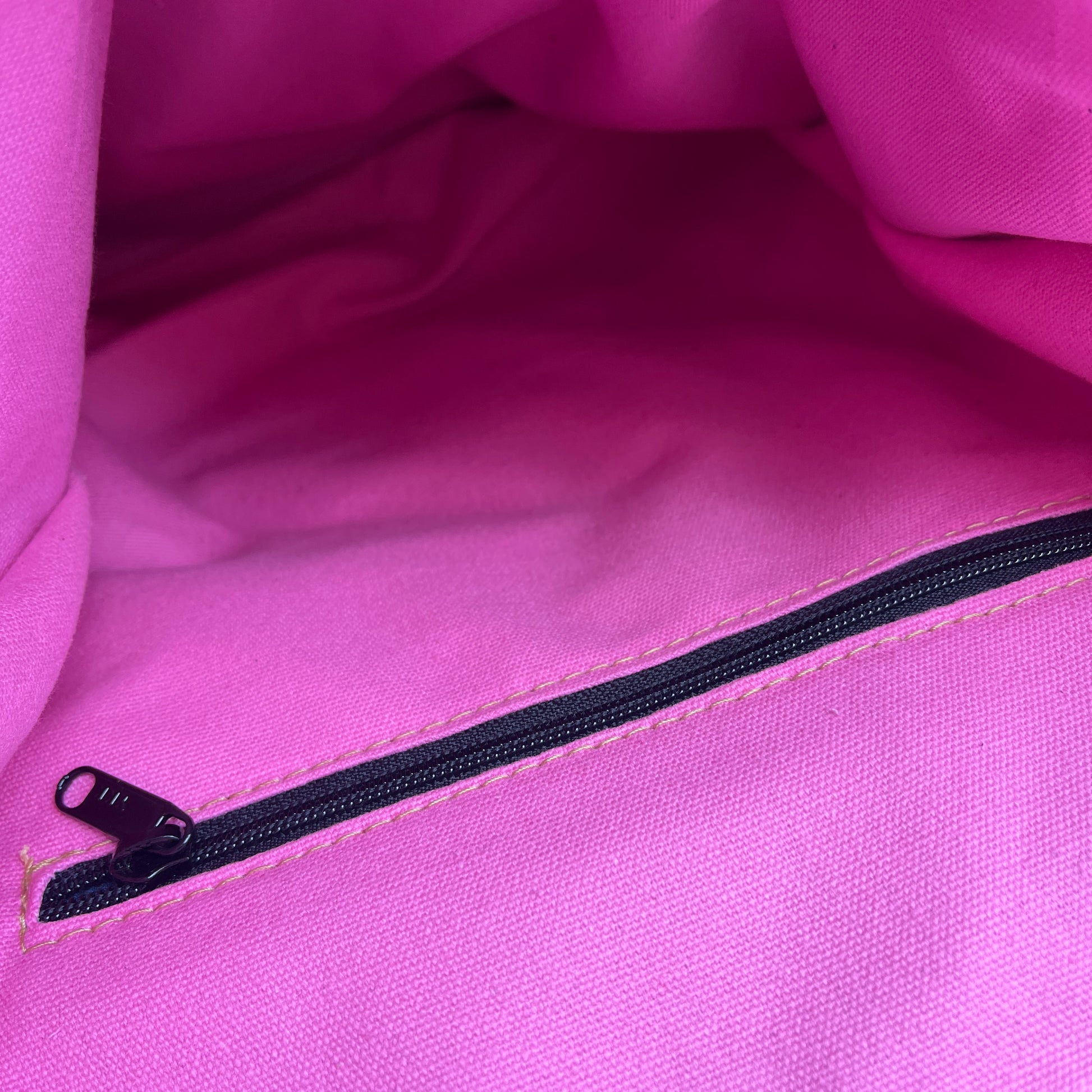 Gran apertura del bolsillo principal con cierre de cremallera en color oro viejo con tirador especial de piel.
