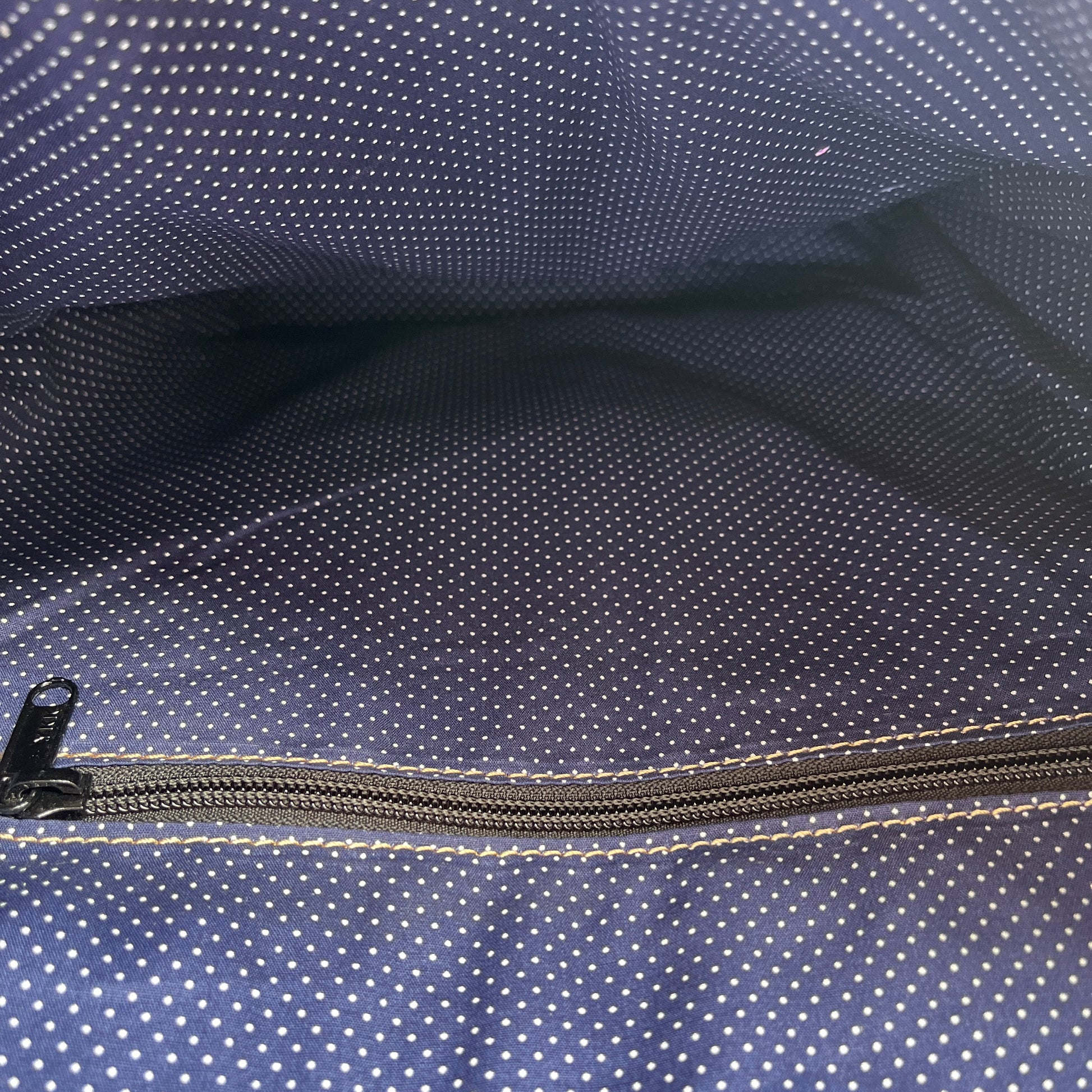 Bolsillo principal de máxima apertura con cierre de cremallera de nylon a juego con tirador especial de piel.