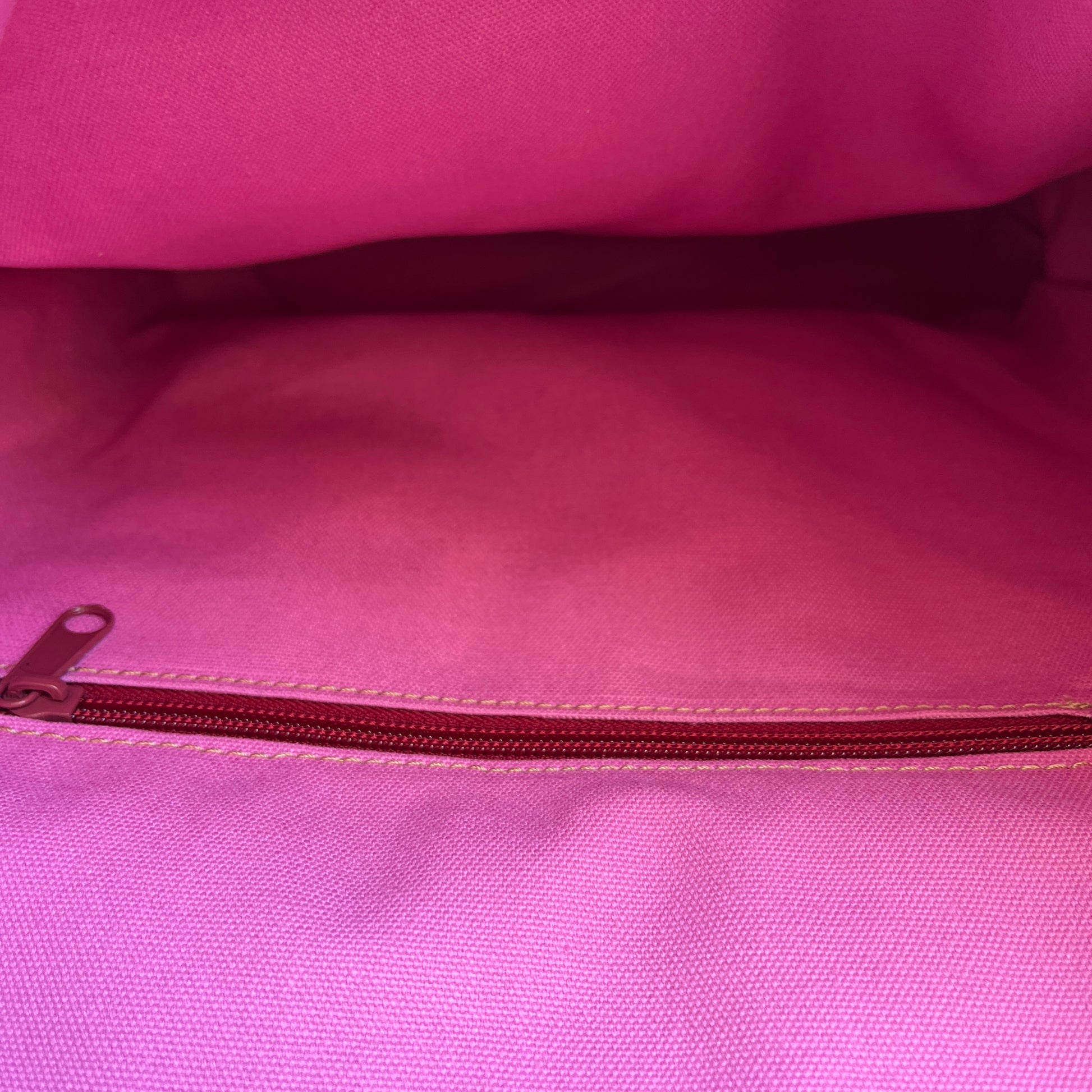 Gran apertura del bolsillo principal con cierre de cremallera en color oro viejo con tirador especial de piel.