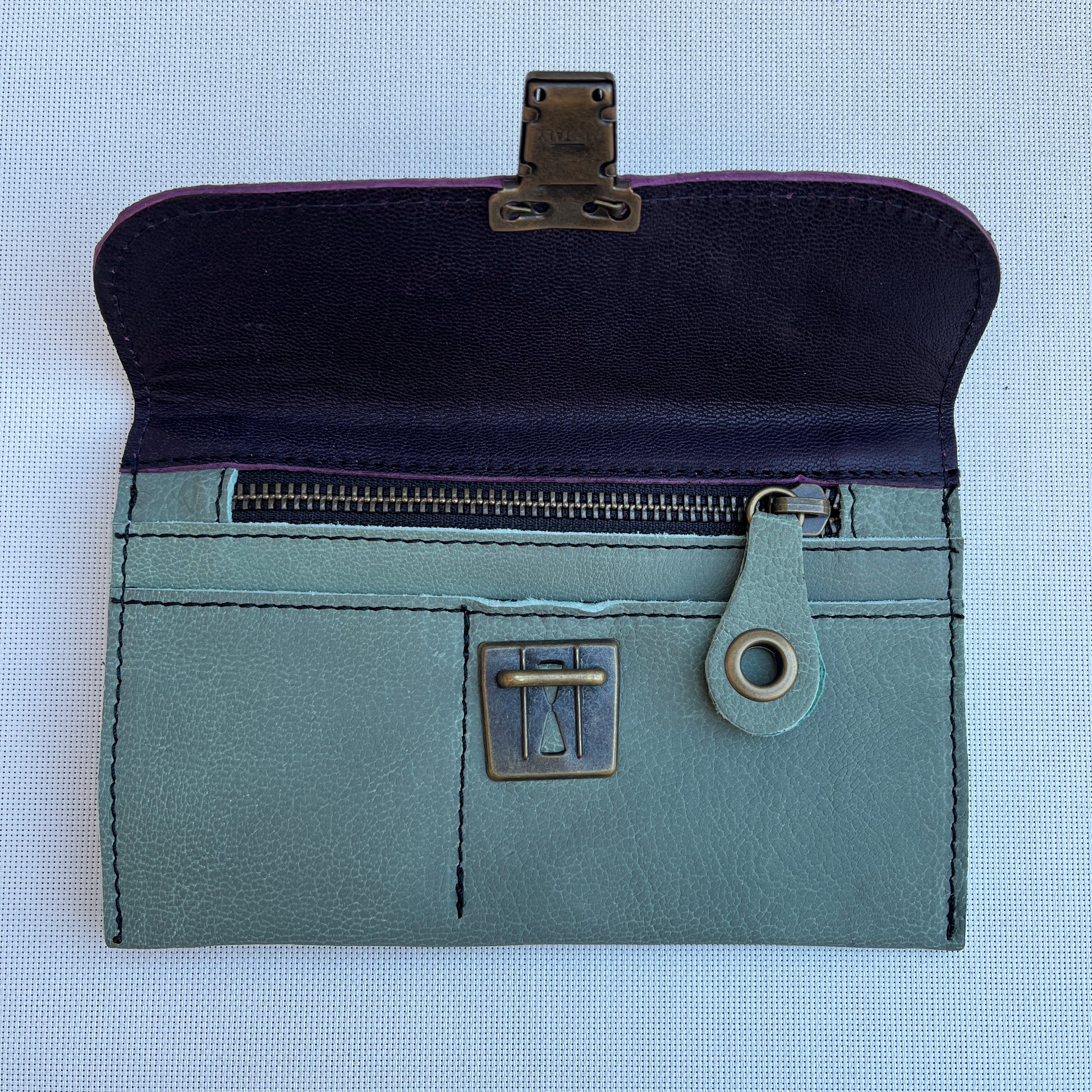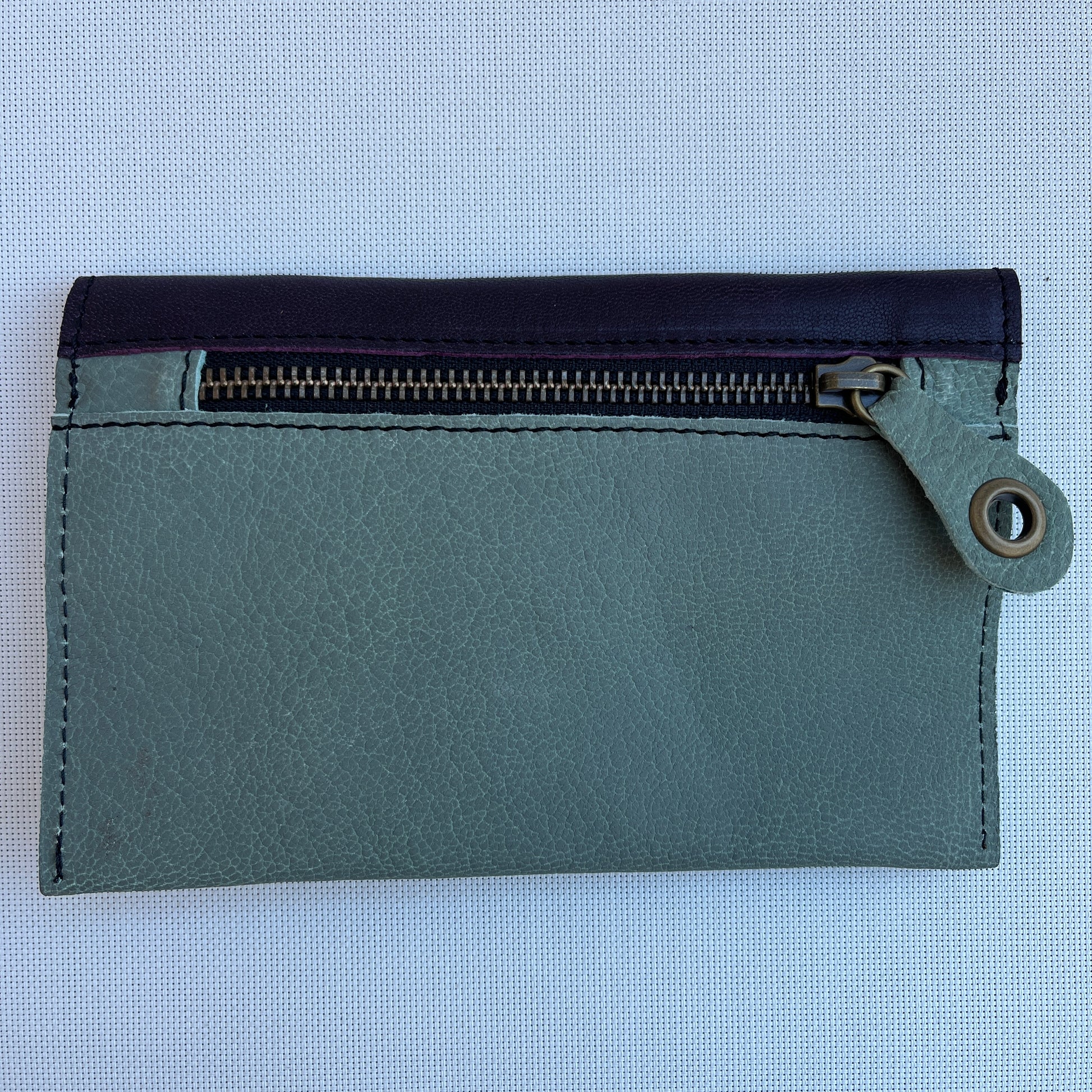 Monedero Plano en Piel natural BioCuir® CAOMKA en color Turquesa y Lila Oscuro